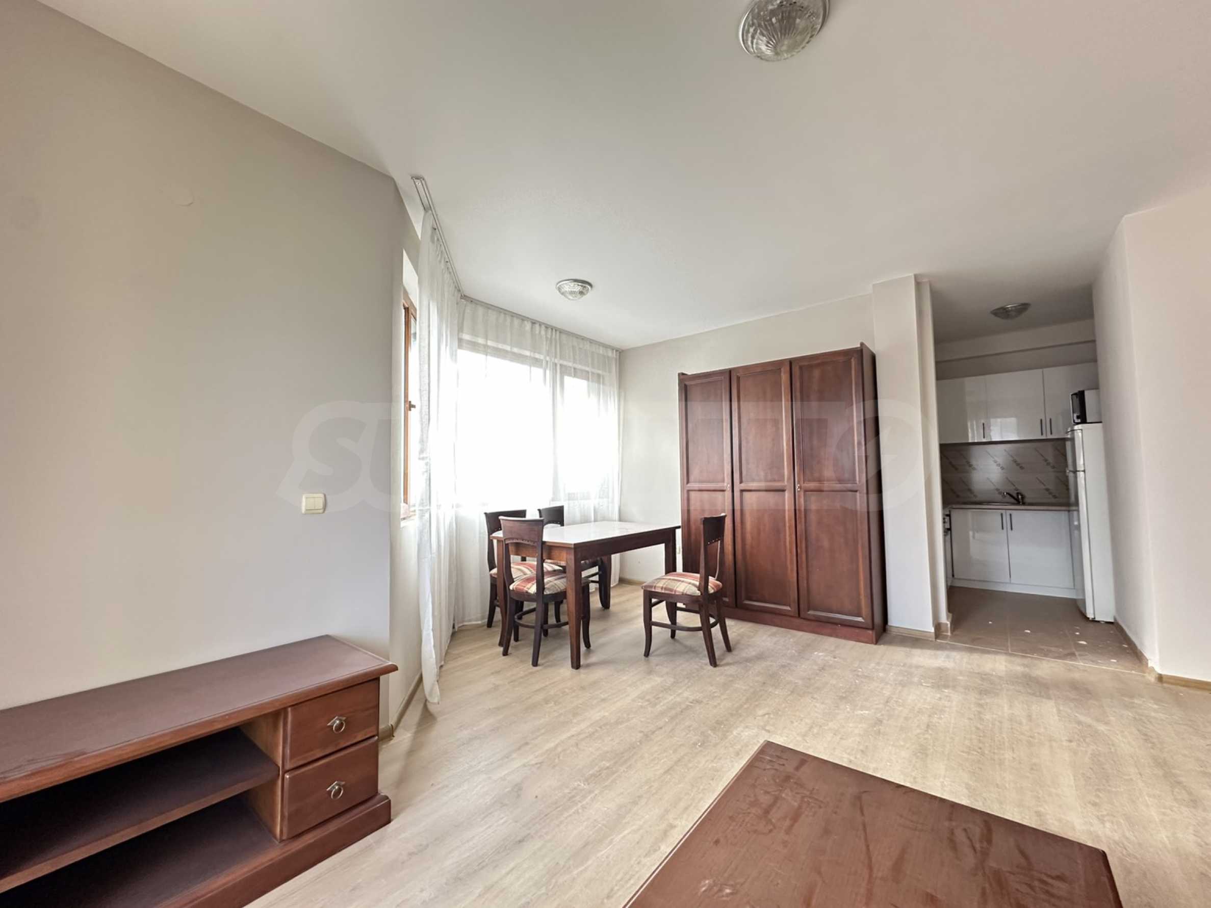 Представляем вашему вниманию однокомнатную квартиру, расположенную недалеко от начальной станции гондольного подъемника (300 м) в популярном горном курорте Банско.
