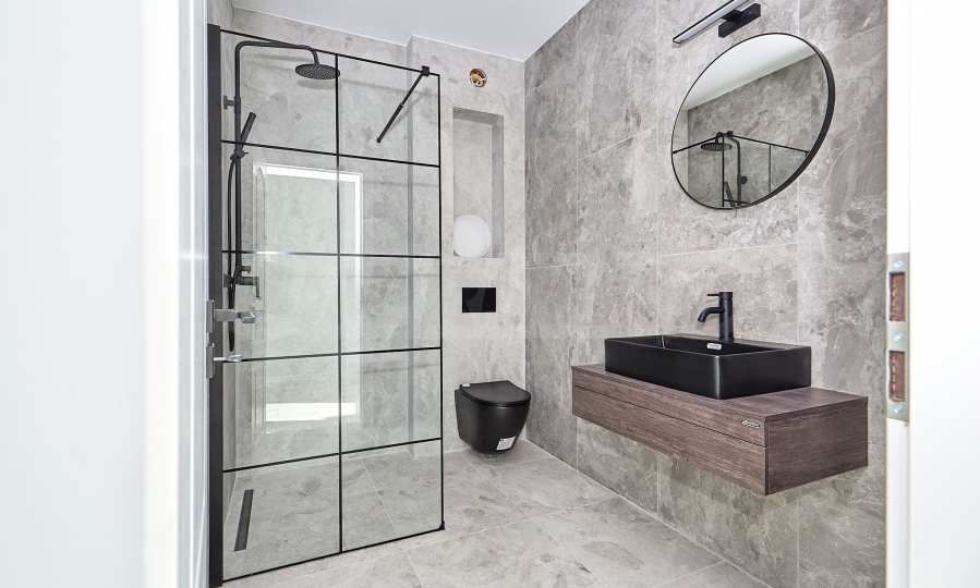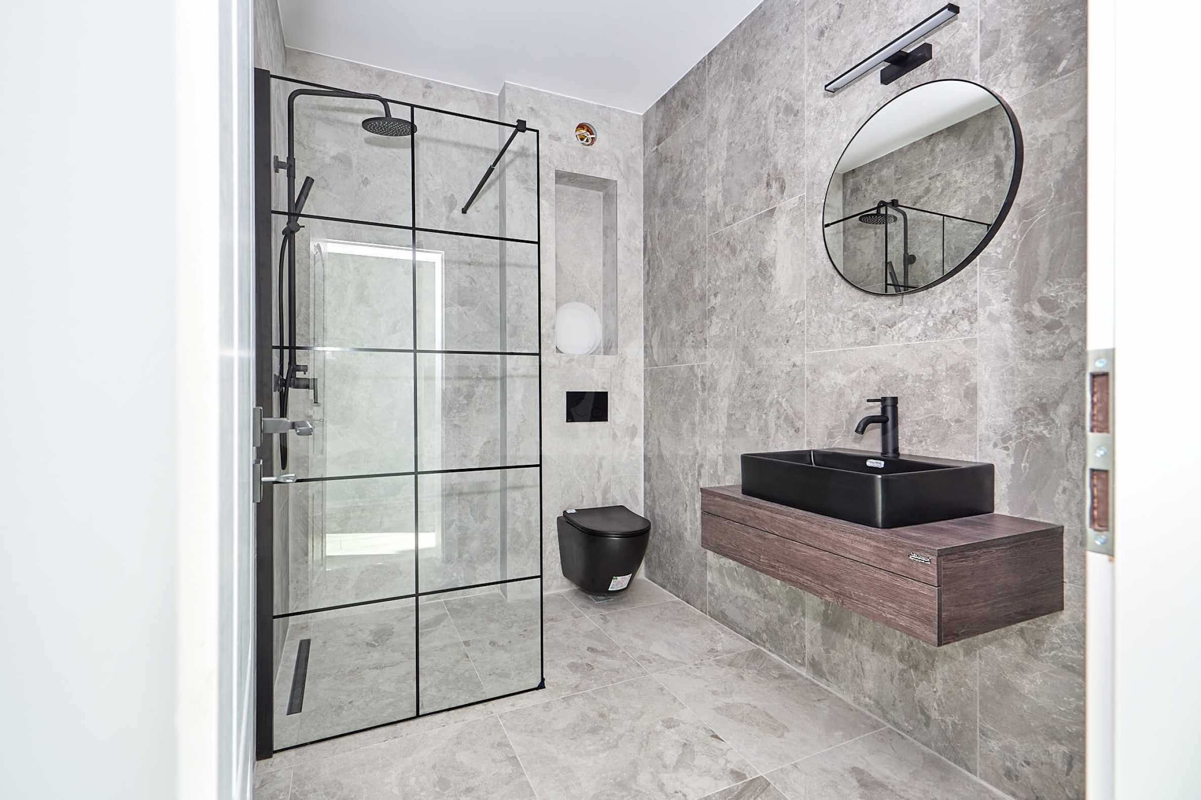 • Две большие спальни площадью 22 кв. м, каждая со своей ванной комнатой с туалетом (примыкающей к спальне) и нишей для гардероба;