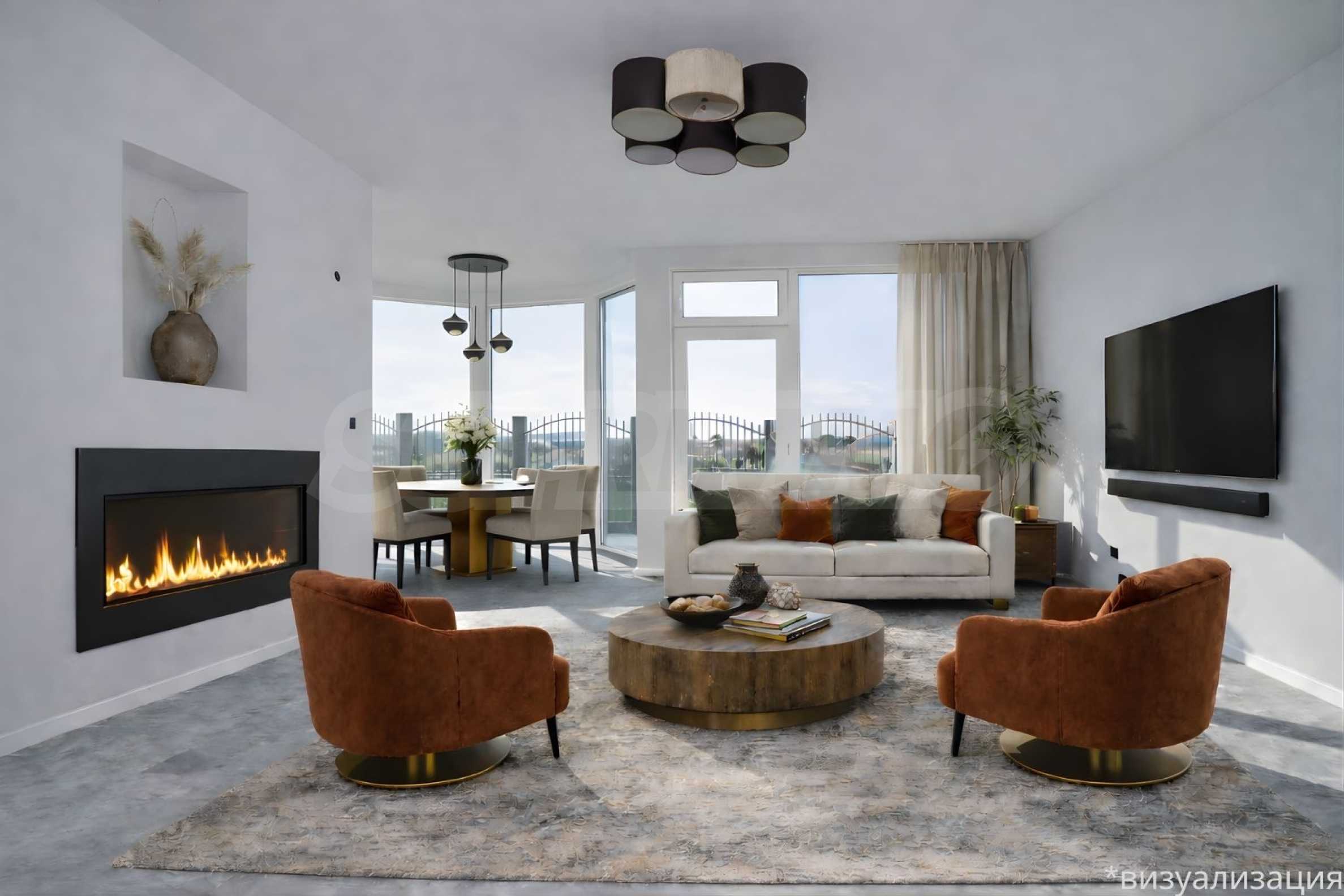 • Просторная гостиная площадью 42 кв. м с камином и выходом во двор;