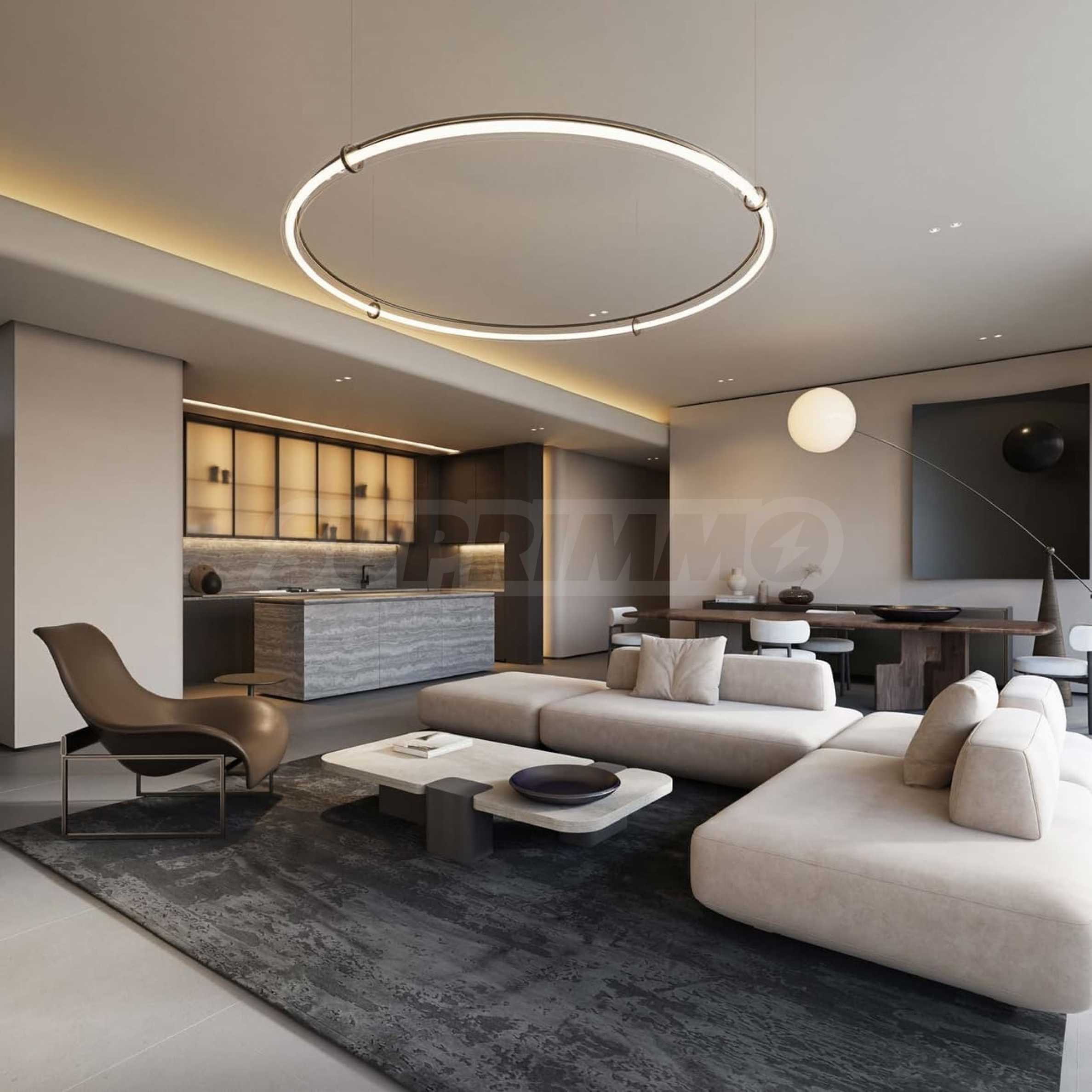 Резиденции встречают вас светлыми открытыми жилыми зонами, тщательно интегрированными с современными кухнями и обеденными зонами, создавая единое общее пространство, идеально подходящее для семейных встреч и незабываемых моментов. Спальни расположены в отдельном крыле для большей приватности, при этом главная спальня имеет прямой выход на террасу – решение, сочетающее элегантность с оптимальным естественным освещением. Каждая спальня имеет собственную ванную комнату и встроенный шкаф или отдельную гардеробную. Гостевые туалеты стратегически расположены рядом с гостиной, не нарушая спокойствия спален, а прачечная удобно расположена неподалеку для максимальной функциональности.