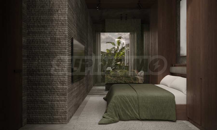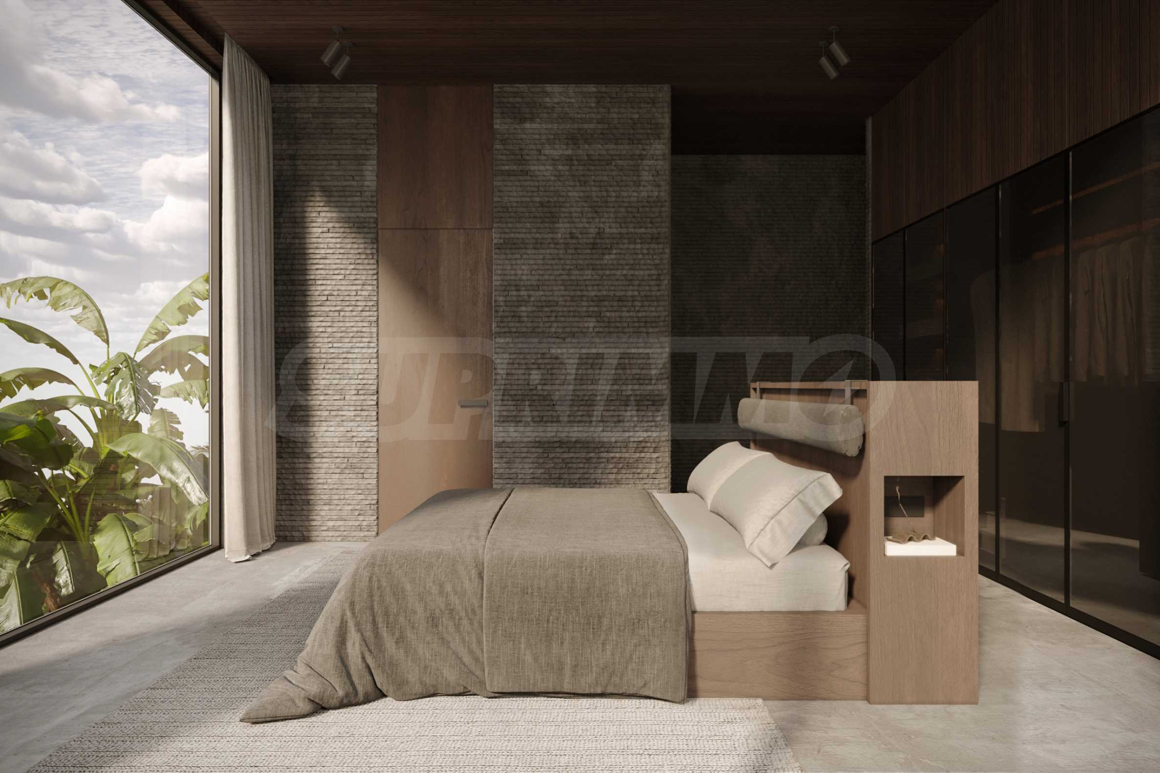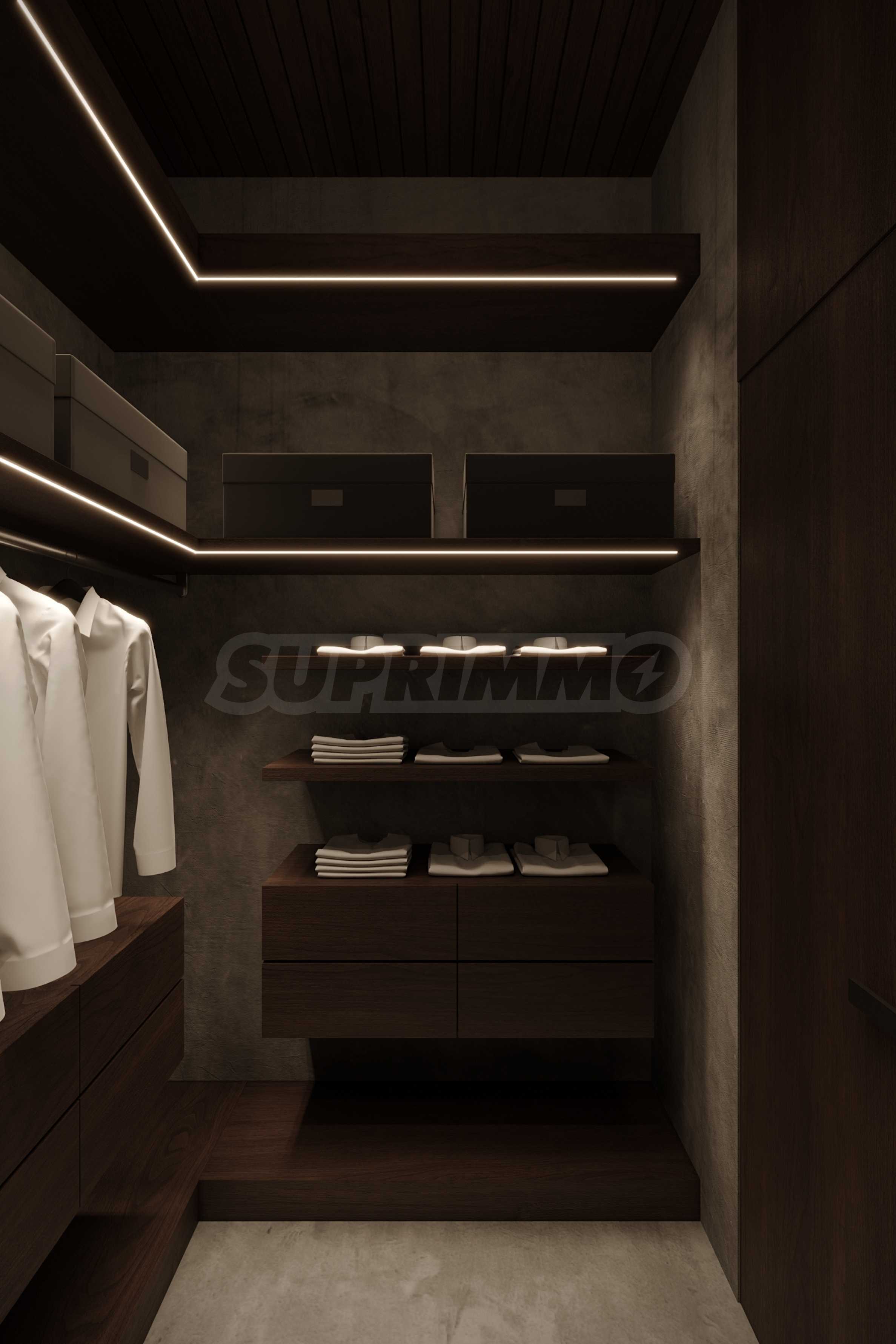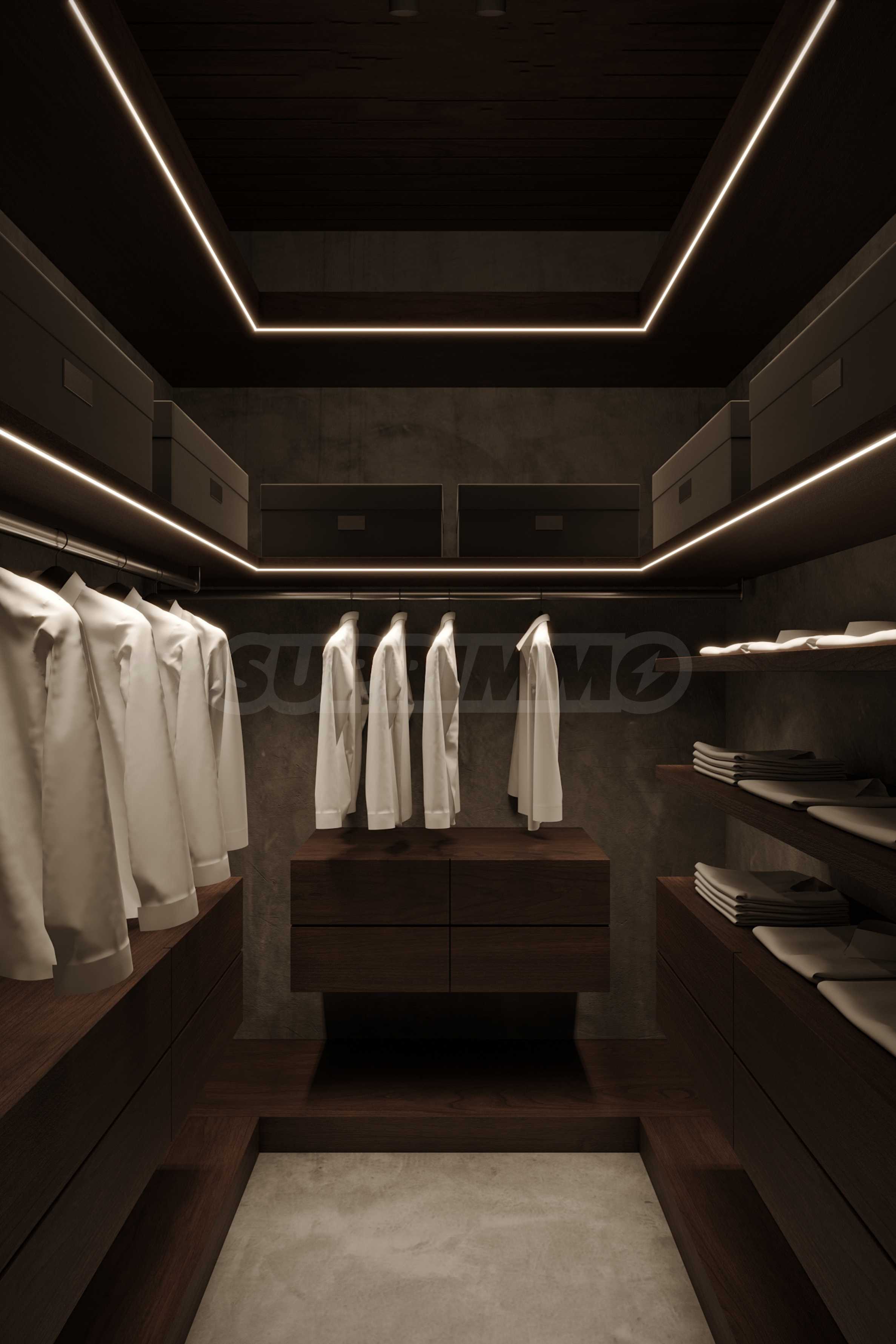 Интерьер дополнен меблировкую и шкафами, изготовленными на заказ, предметами интерьера ручной работы и кухней из массива мрамора с высококачественной бытовой техникой. Кухни и ванные комнаты оборудованы смесителями из цельной латуни, а функциональность повышается за счет универсальных розеток, микротрековых светильников и аналоговых выключателей для точного управления светом и атмосферой. Современная система фильтрации воды обеспечивает дополнительный комфорт.