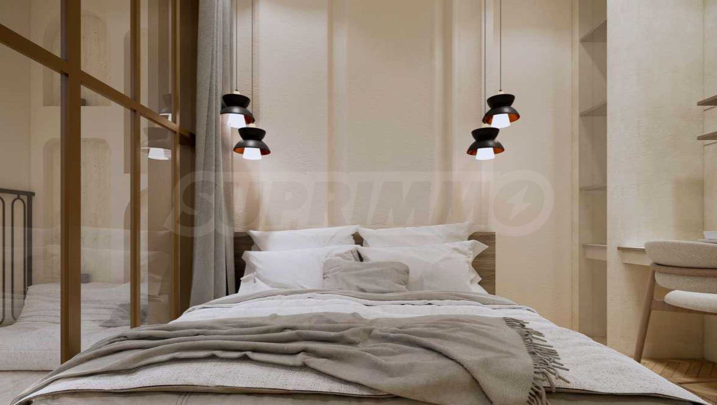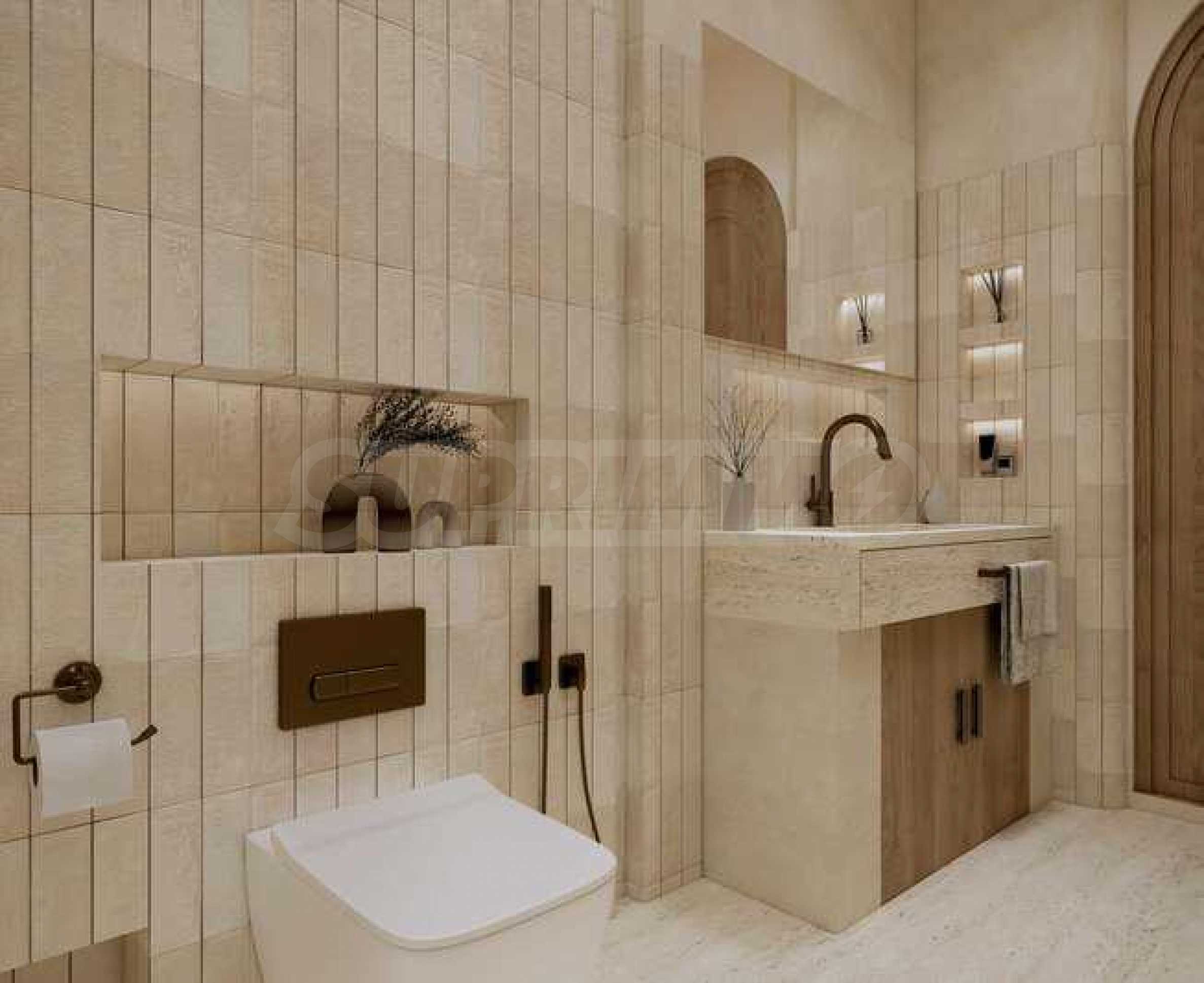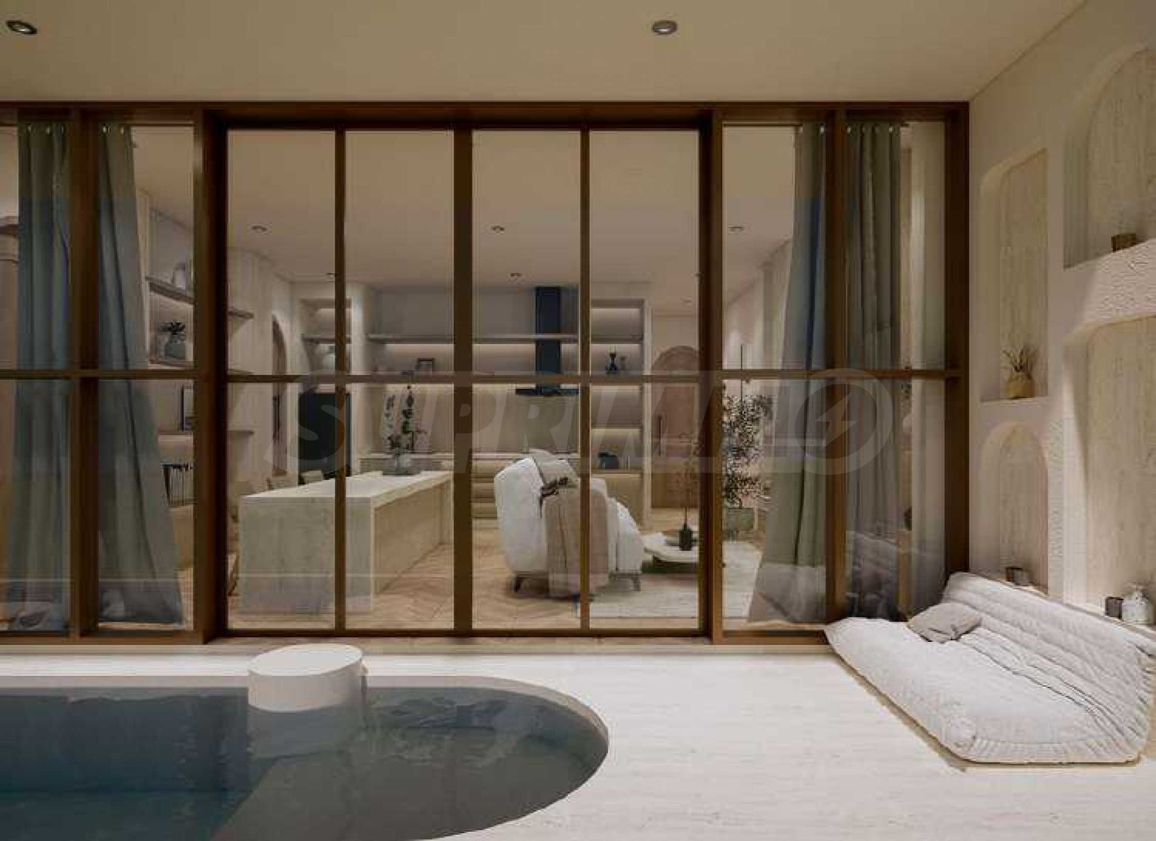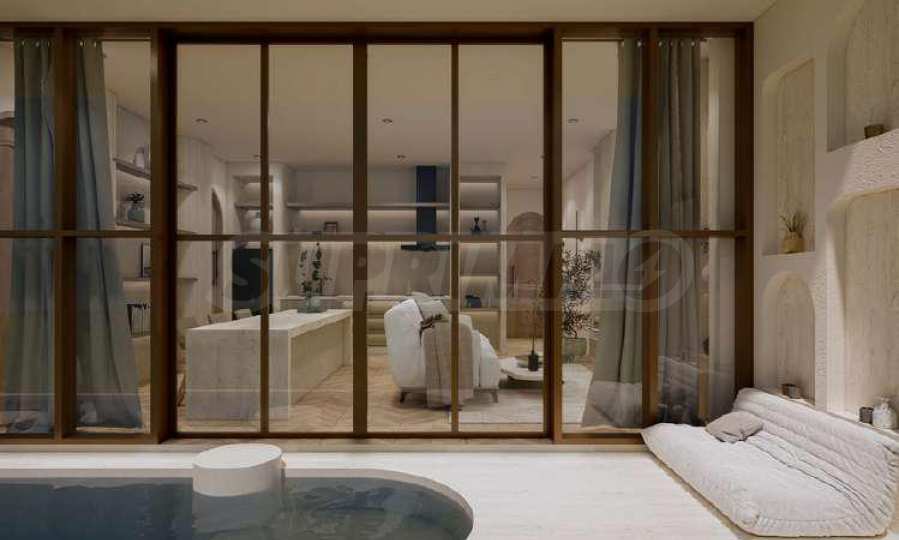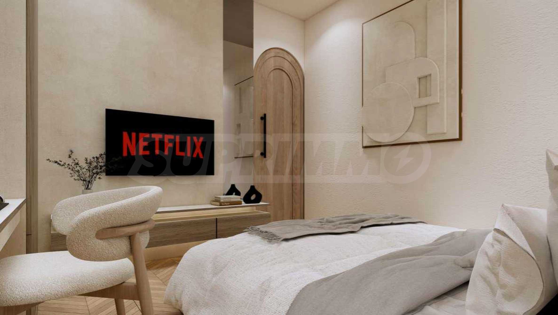 Квартира предлагается полностью меблированной и оборудованной, с использованием натуральных материалов для напольного покрытия, высококачественной бытовой техники и стильной мебели, создающих ощущение гармонии и элегантности. Окна от пола до потолка и высокие потолки способствуют ощущению света, простора и свободы.