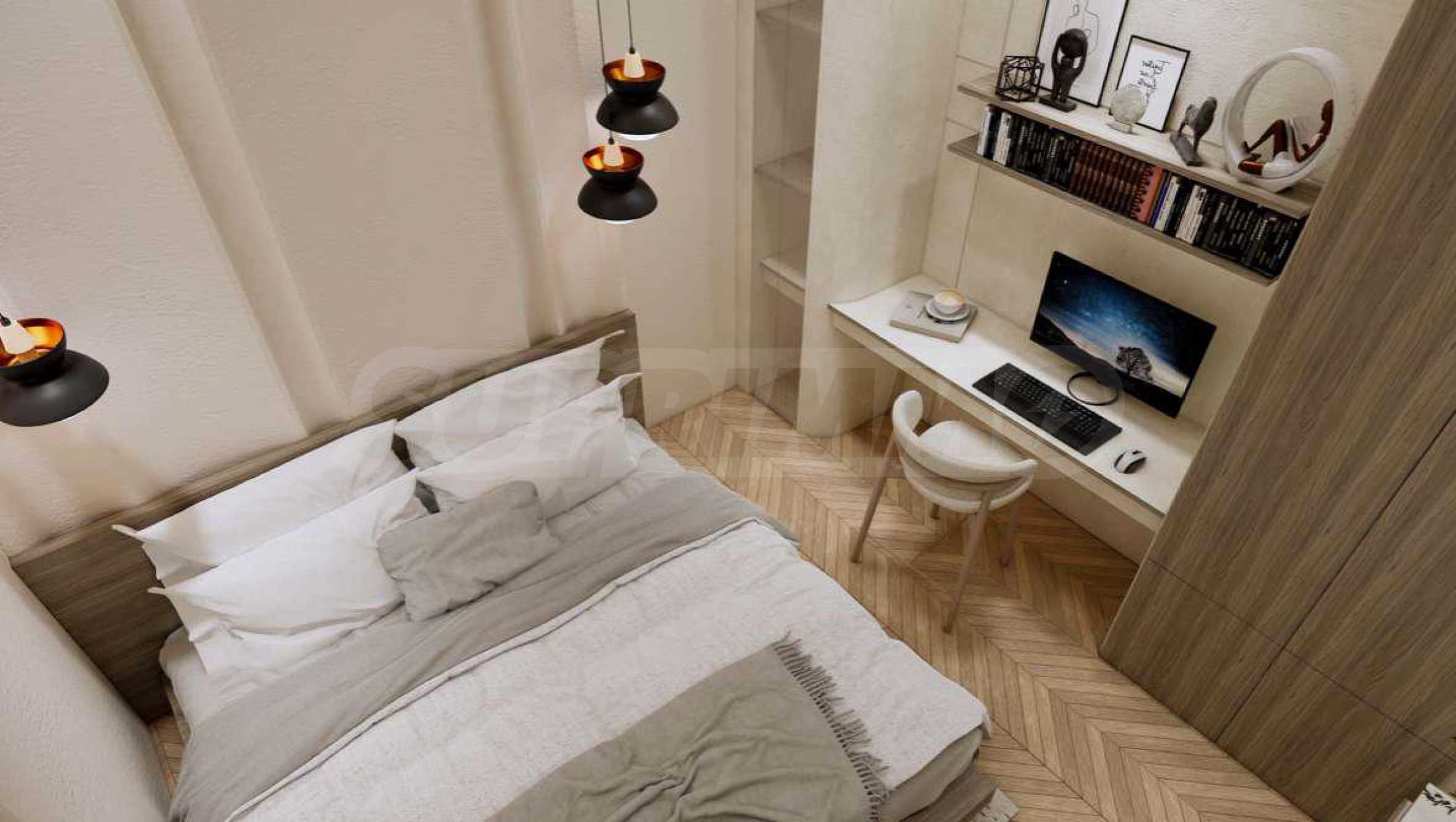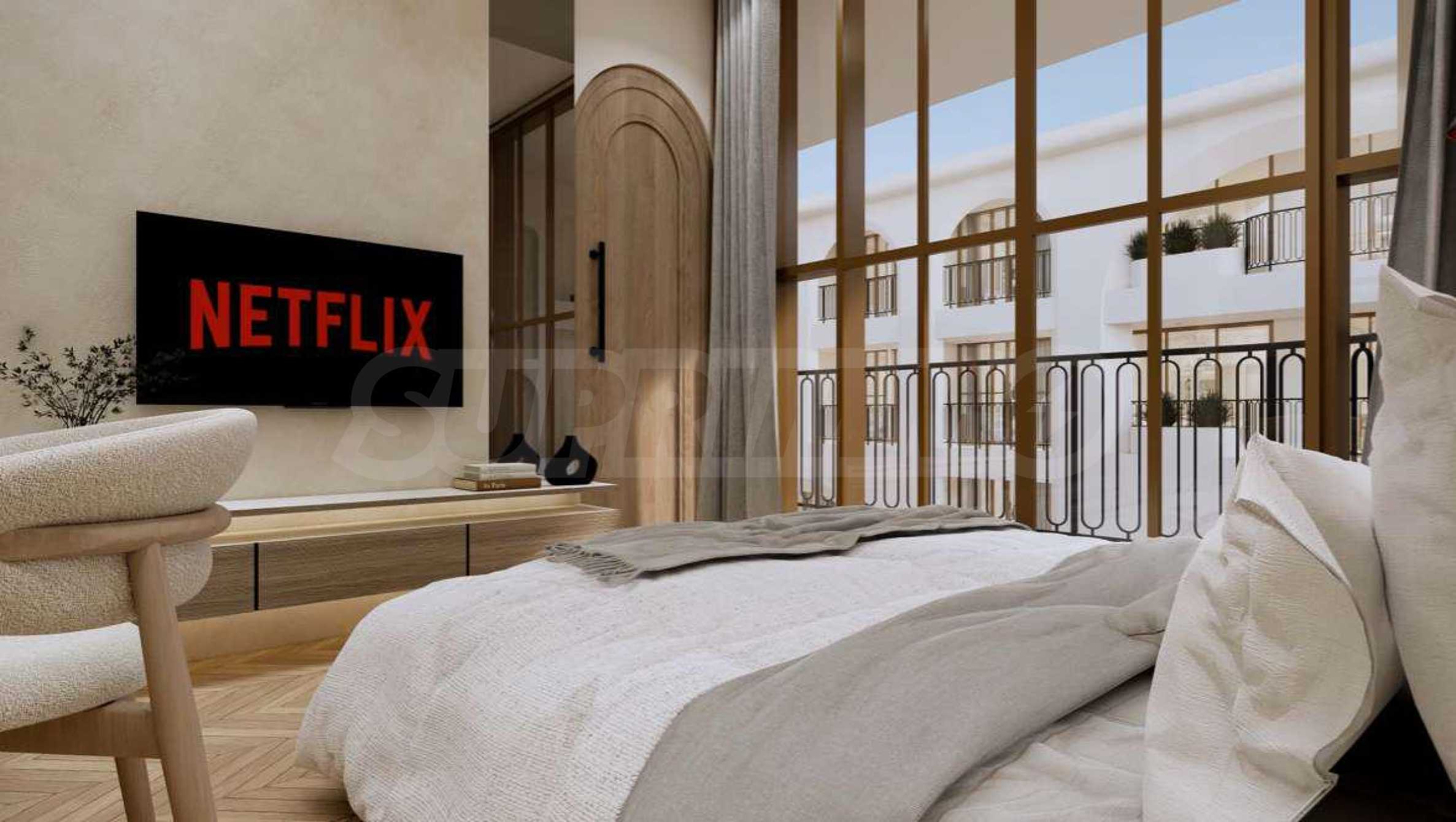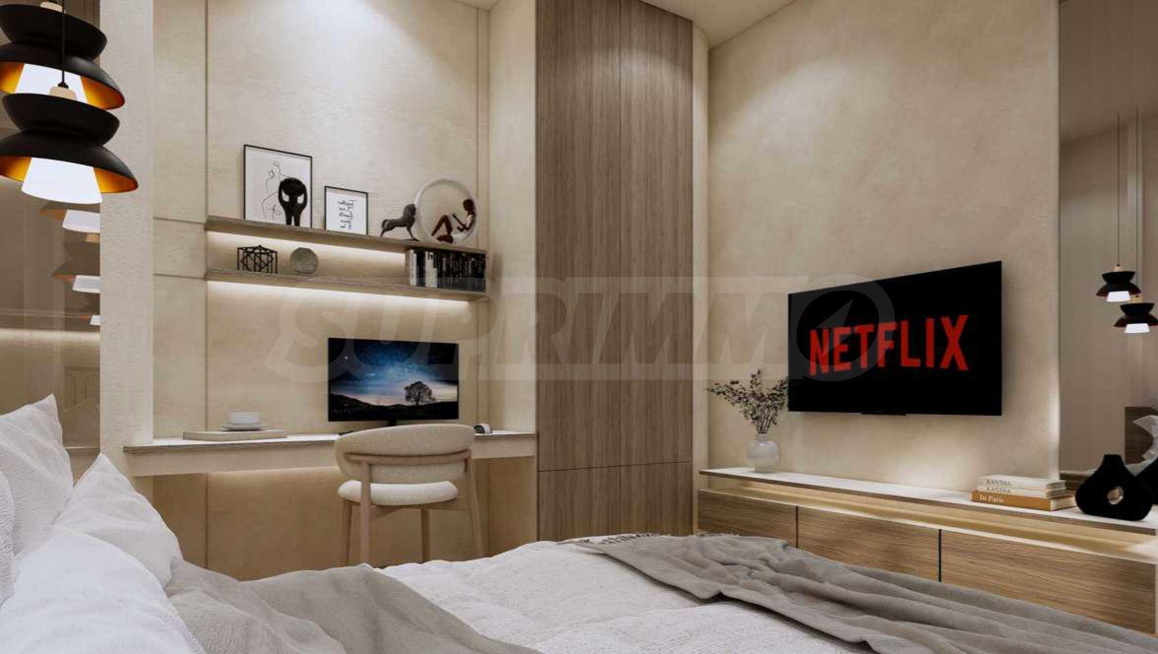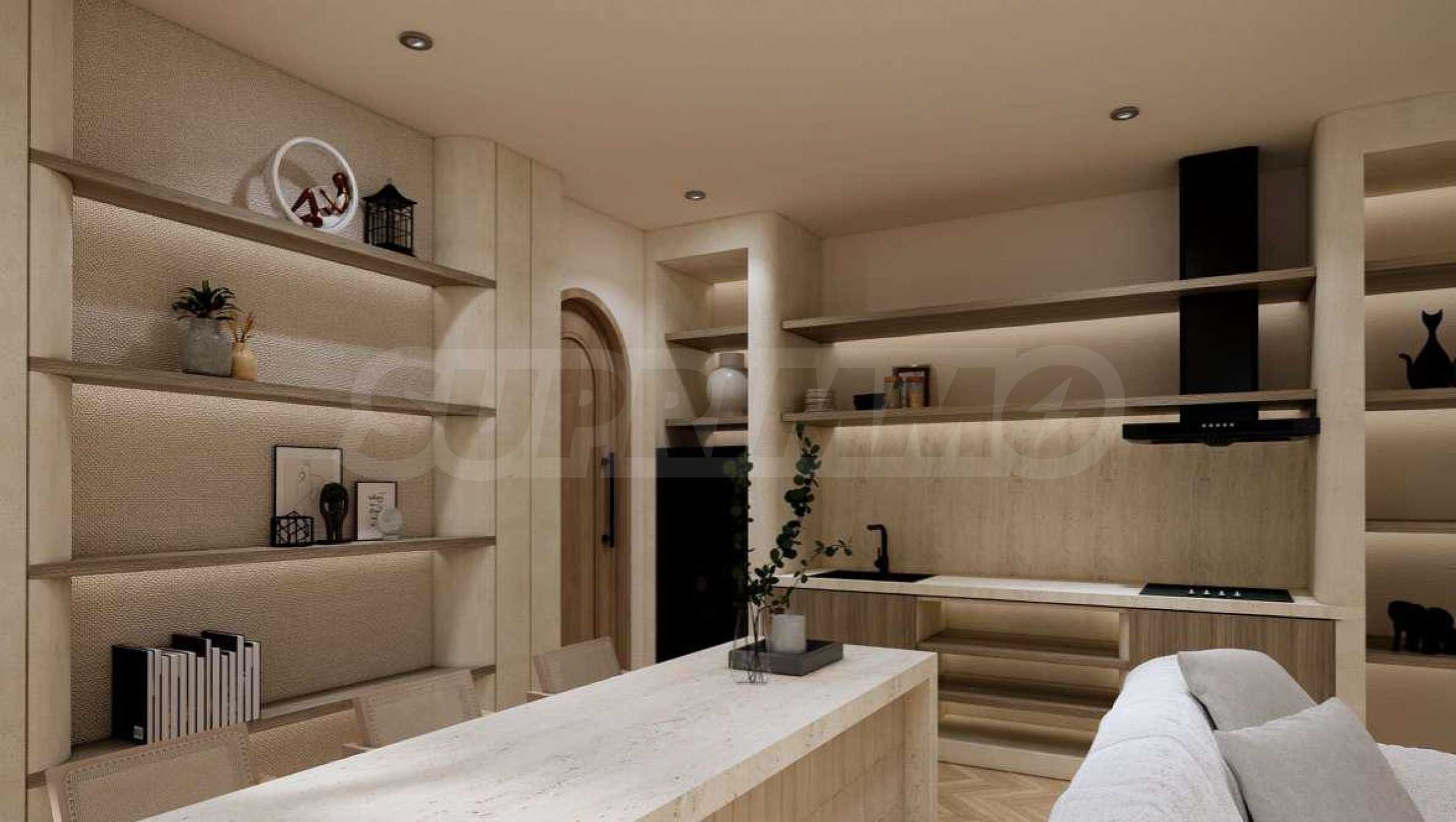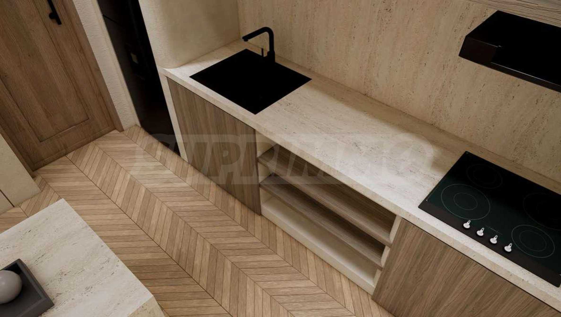 Квартира предлагается полностью меблированной и оборудованной, с использованием натуральных материалов для напольного покрытия, высококачественной бытовой техники и стильной мебели, создающих ощущение гармонии и элегантности. Окна от пола до потолка и высокие потолки способствуют ощущению света, простора и свободы.