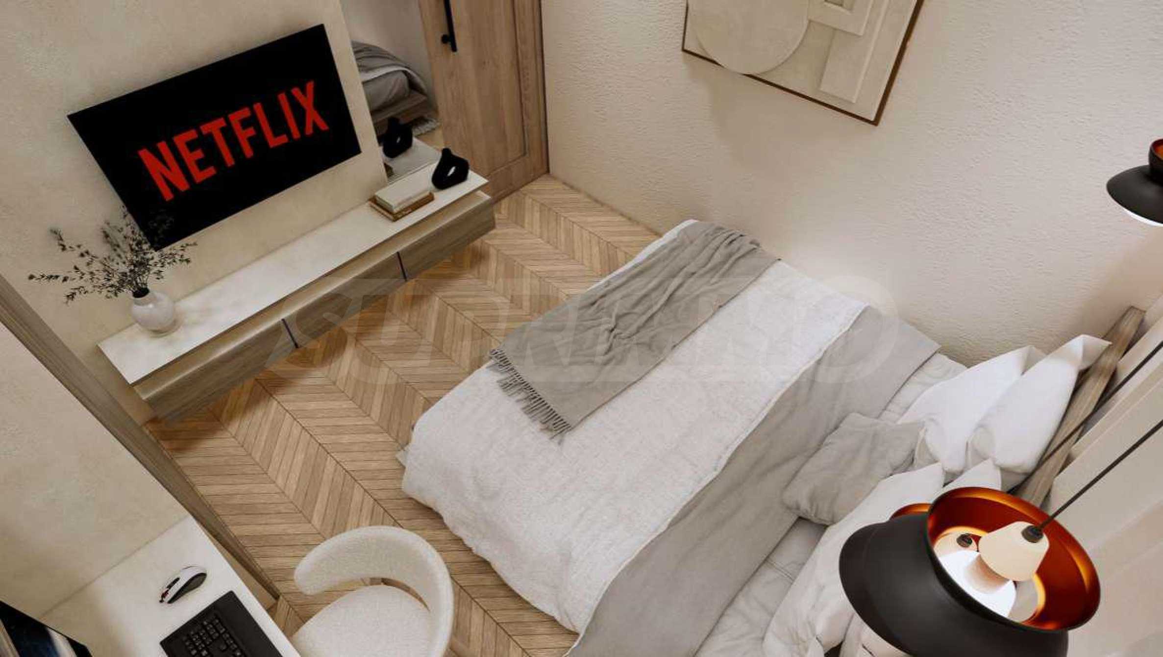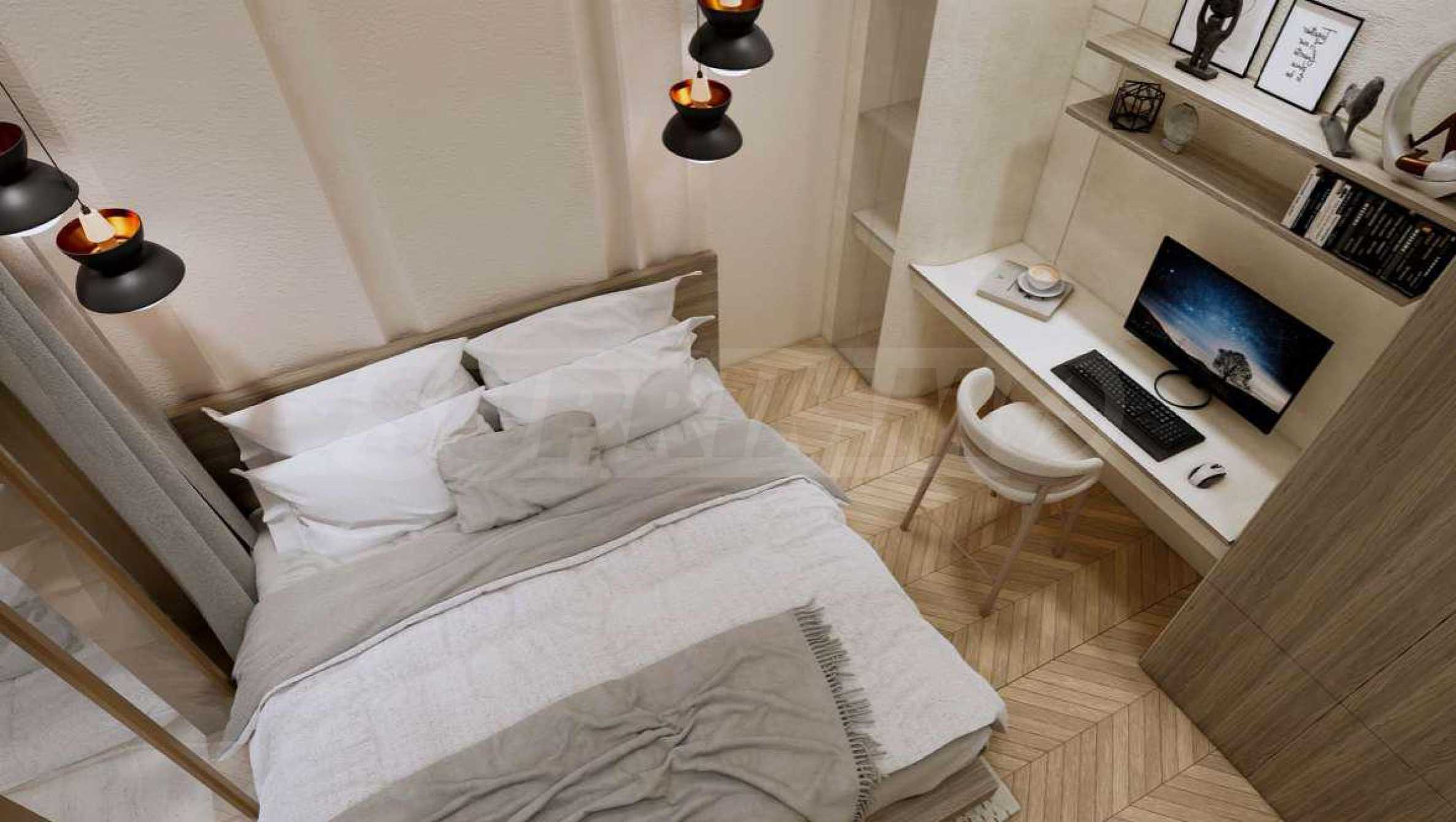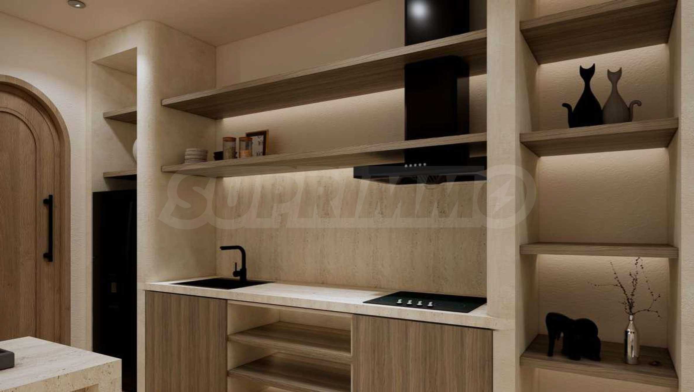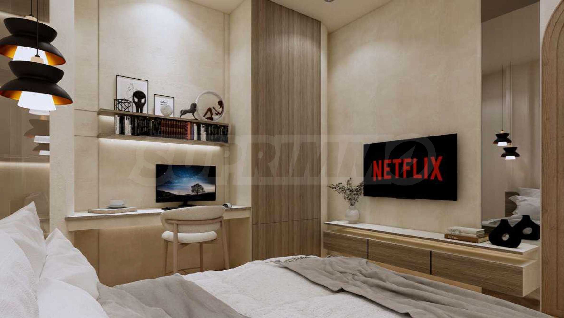 Квартира предлагается полностью меблированной и оборудованной, с использованием натуральных материалов для напольного покрытия, высококачественной бытовой техники и стильной мебели, создающих ощущение гармонии и элегантности. Окна от пола до потолка и высокие потолки способствуют ощущению света, простора и свободы.
