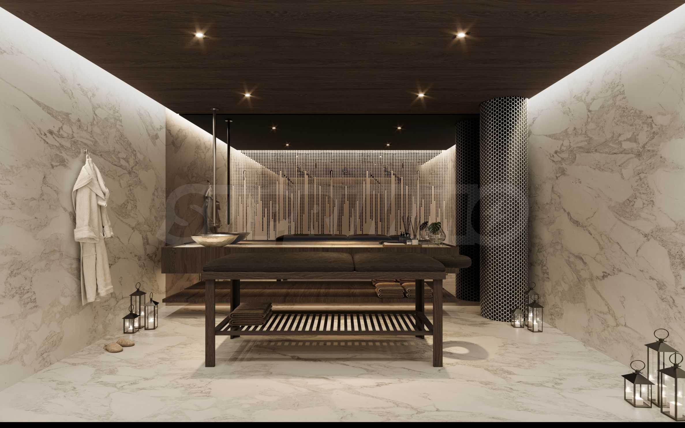 В здании расположены две впечатляющие зоны с бассейнами – панорамный бассейн на крыше и второй, проходящий через внутренний двор и вдохновленный популярной концепцией «ленивой реки». Также предусмотрены отдельные детские зоны, обеспечивающие спокойствие родителям и беззаботные водные развлечения для малышей. Вокруг бассейнов расположены уютные зоны для отдыха и принятия солнечных ванн, а расположенный неподалеку бар дополняет атмосферу богатым выбором освежающих напитков, создавая ощущение настоящего курортного комфорта.