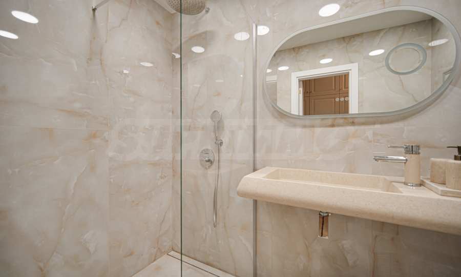 Степень завершенности: стены и потолки из латекса и обоев, дубовый паркет; установлены выключатели, розетки, радиаторы, проложена проводка для системы безопасности, проложена низковольтная проводка с FTP-розетками, оптоволоконный кабель в каждую квартиру, имеется серверная комната в общей зоне, подключенная к интернет-провайдеру, установлена система дверного звонка и домофона, установлены кондиционеры, установлена и функционирует система видеонаблюдения и безопасности для всего здания, в том числе – вход и периметр здания, вход и периметр гаражных площадок, установлены водомеры и почтовые ящики для всех объектов в здании, установлена и функционирует система вентиляции в гаражах, установлена и функционирует система полива для озеленения территории.