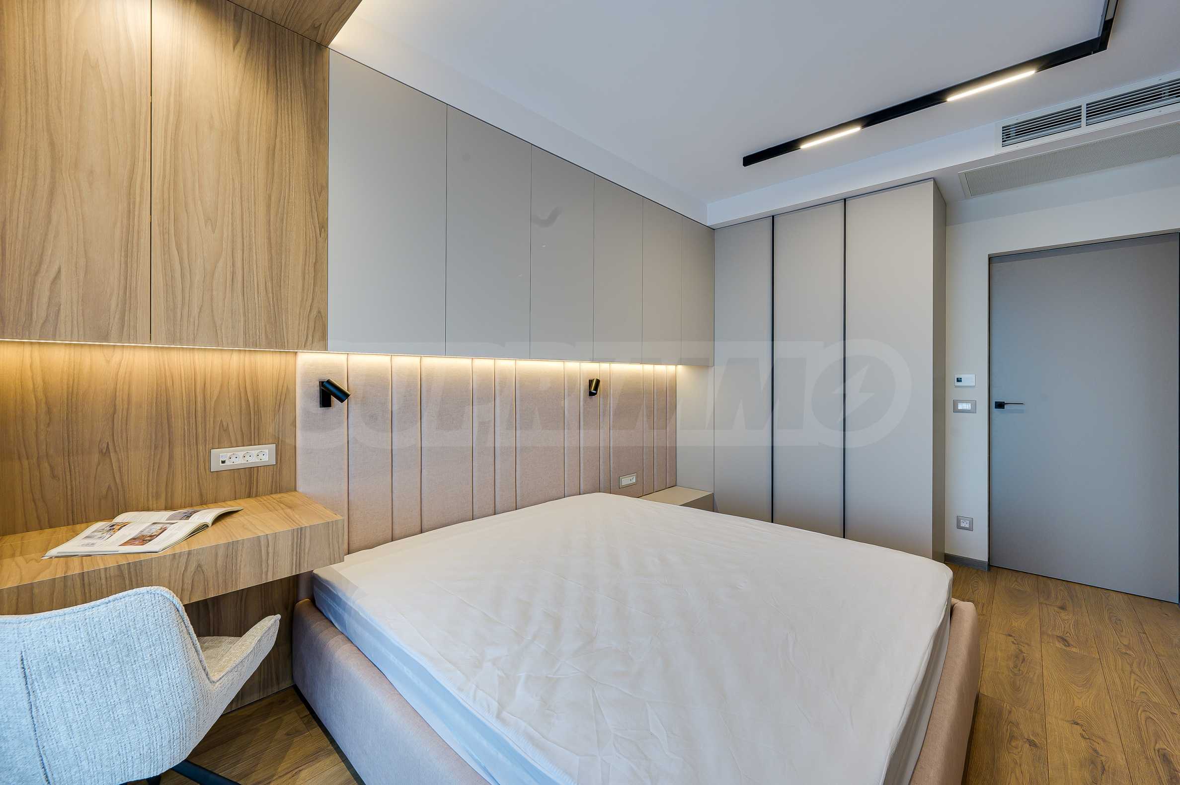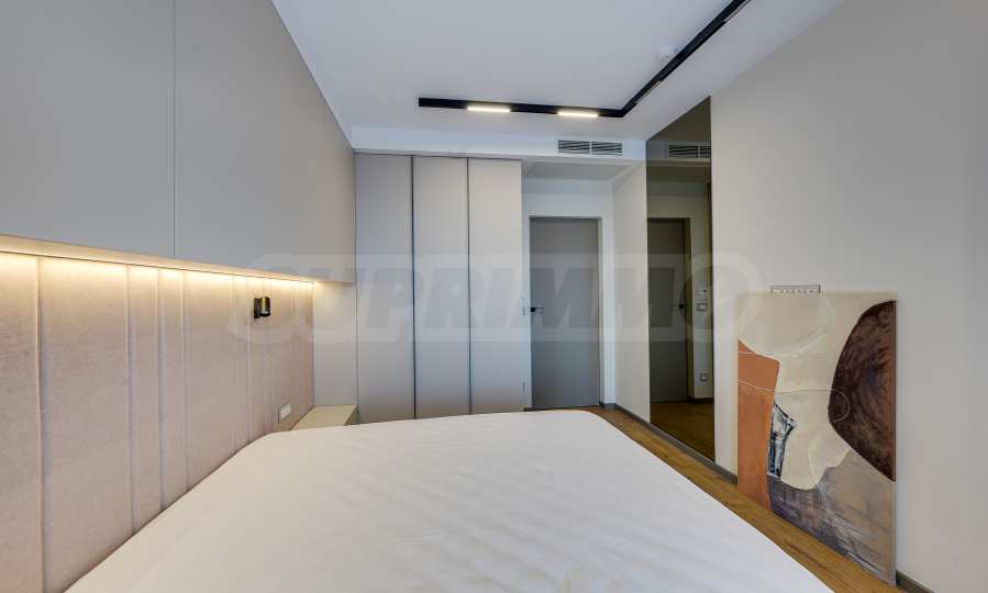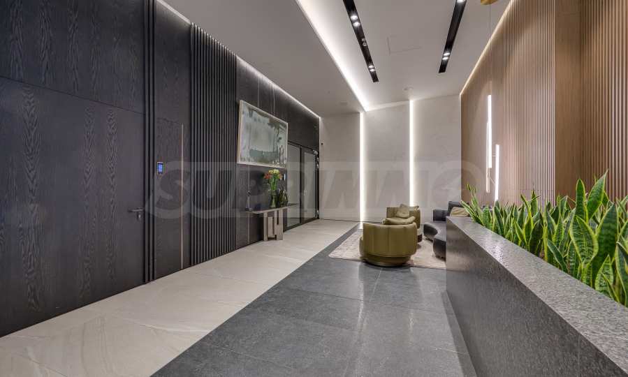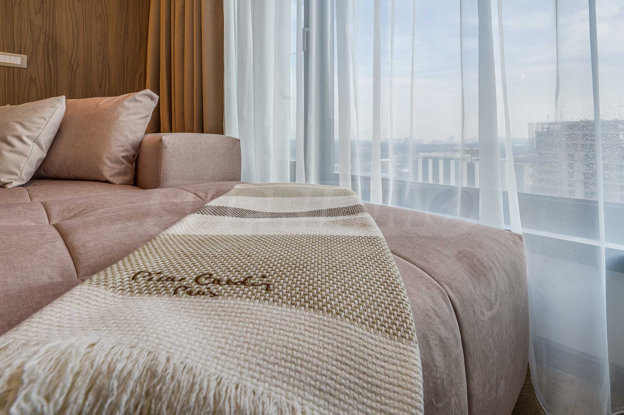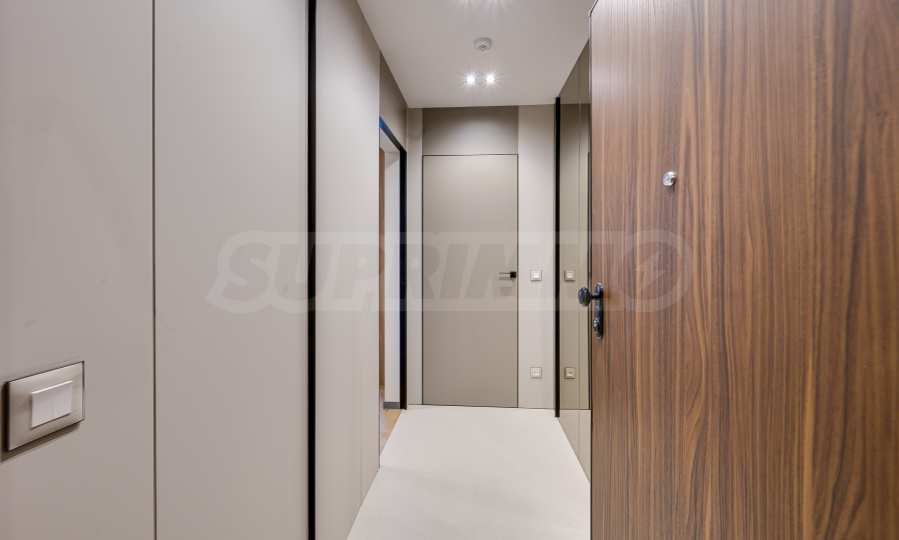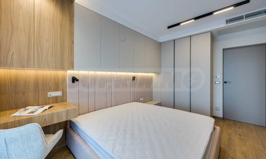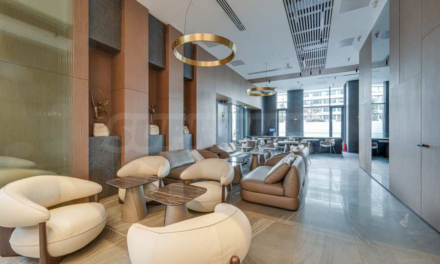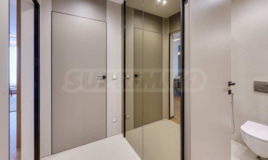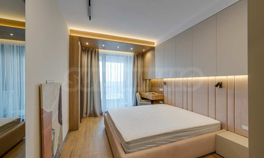 Мебель и оснащение выполнены на высочайшем уровне, по индивидуальному дизайн-проекту с вниманием к каждой детали. Из апартаментов открывается потрясающий панорамный вид на всю Софию — впечатляющий днем и поистине великолепный вечером, когда населенный пункт оживает огнями. Пространство сочетает в себе тепло, свет и роскошь в чрезвычайно гармоничной обстановке.