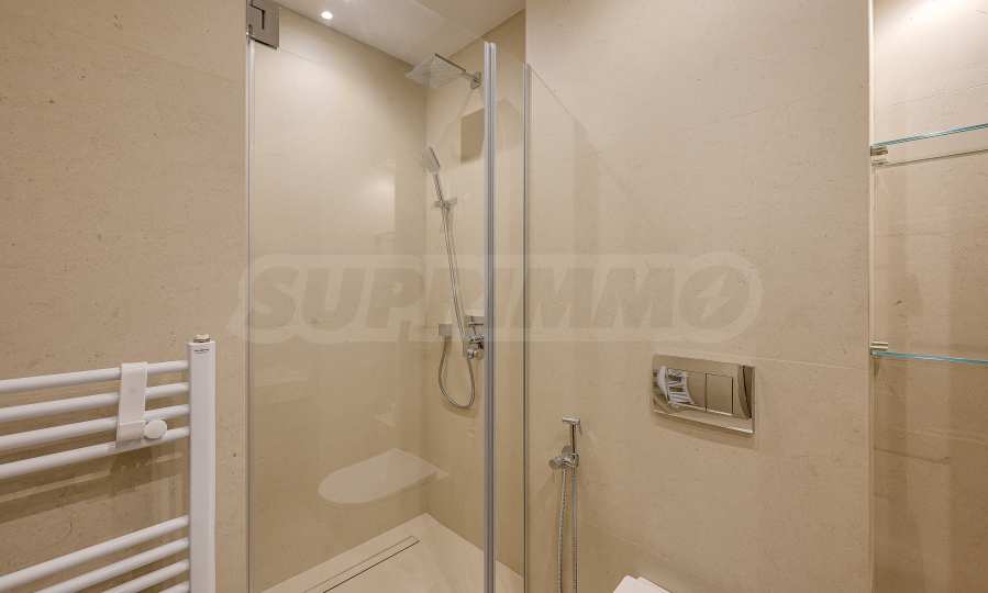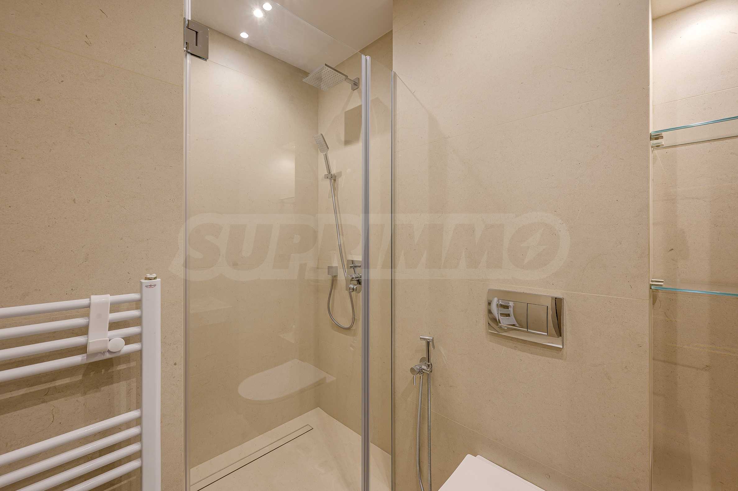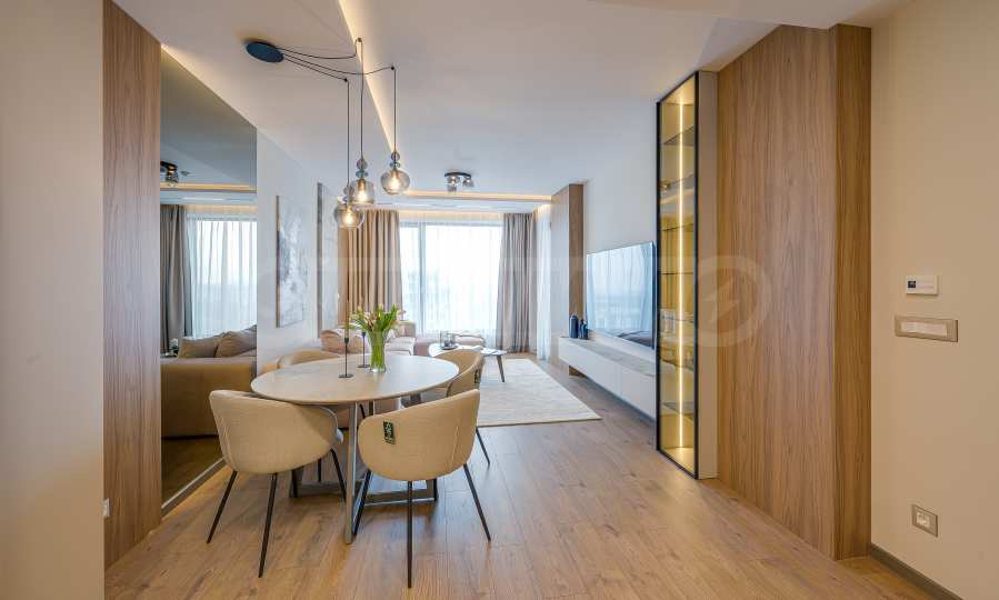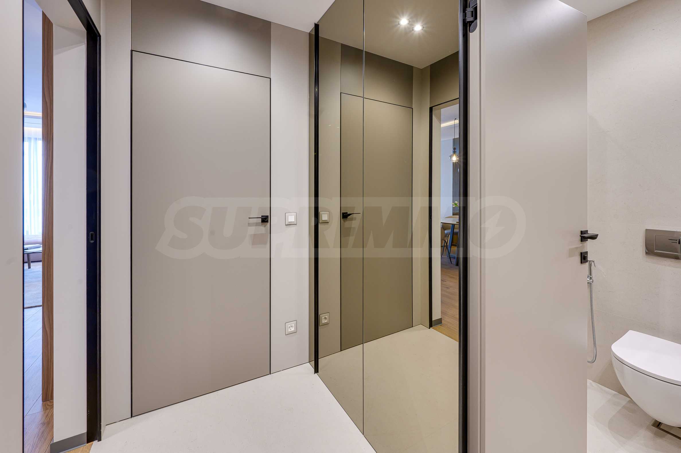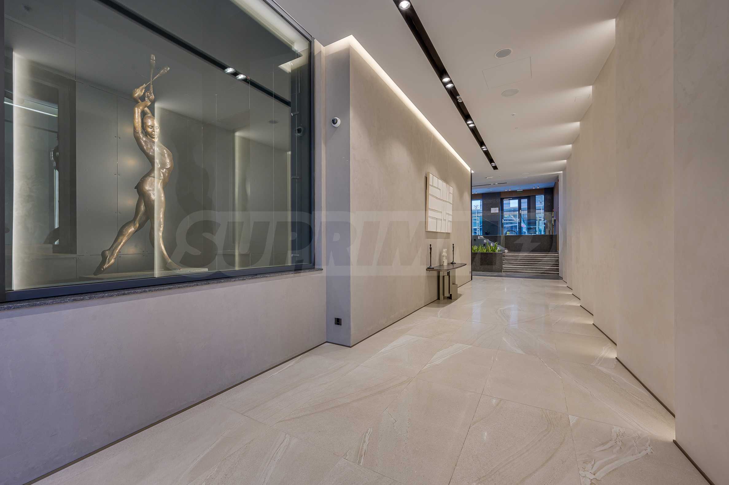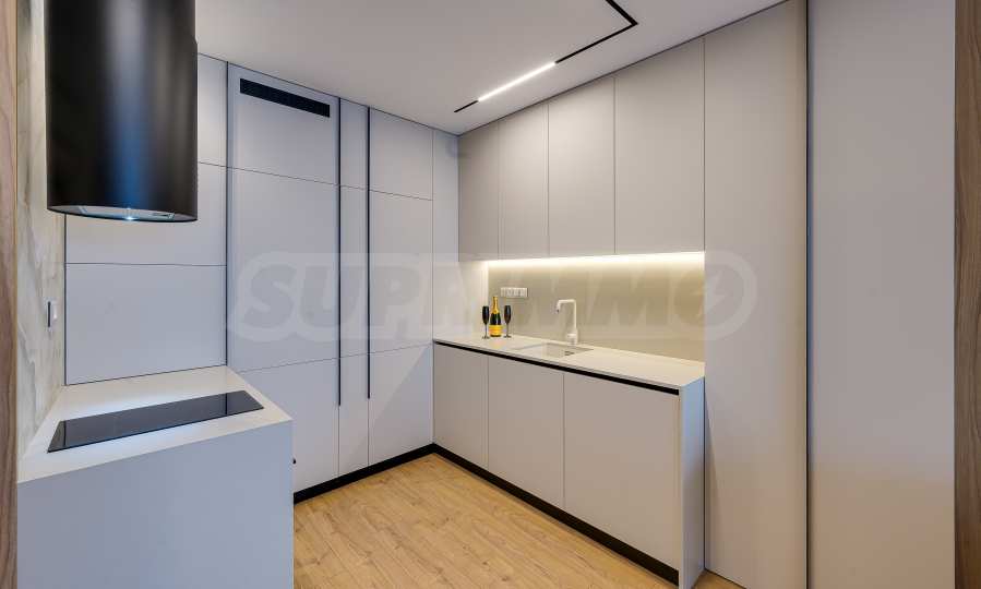 Мебель и оснащение выполнены на высочайшем уровне, по индивидуальному дизайн-проекту с вниманием к каждой детали. Из апартаментов открывается потрясающий панорамный вид на всю Софию — впечатляющий днем и поистине великолепный вечером, когда населенный пункт оживает огнями. Пространство сочетает в себе тепло, свет и роскошь в чрезвычайно гармоничной обстановке.