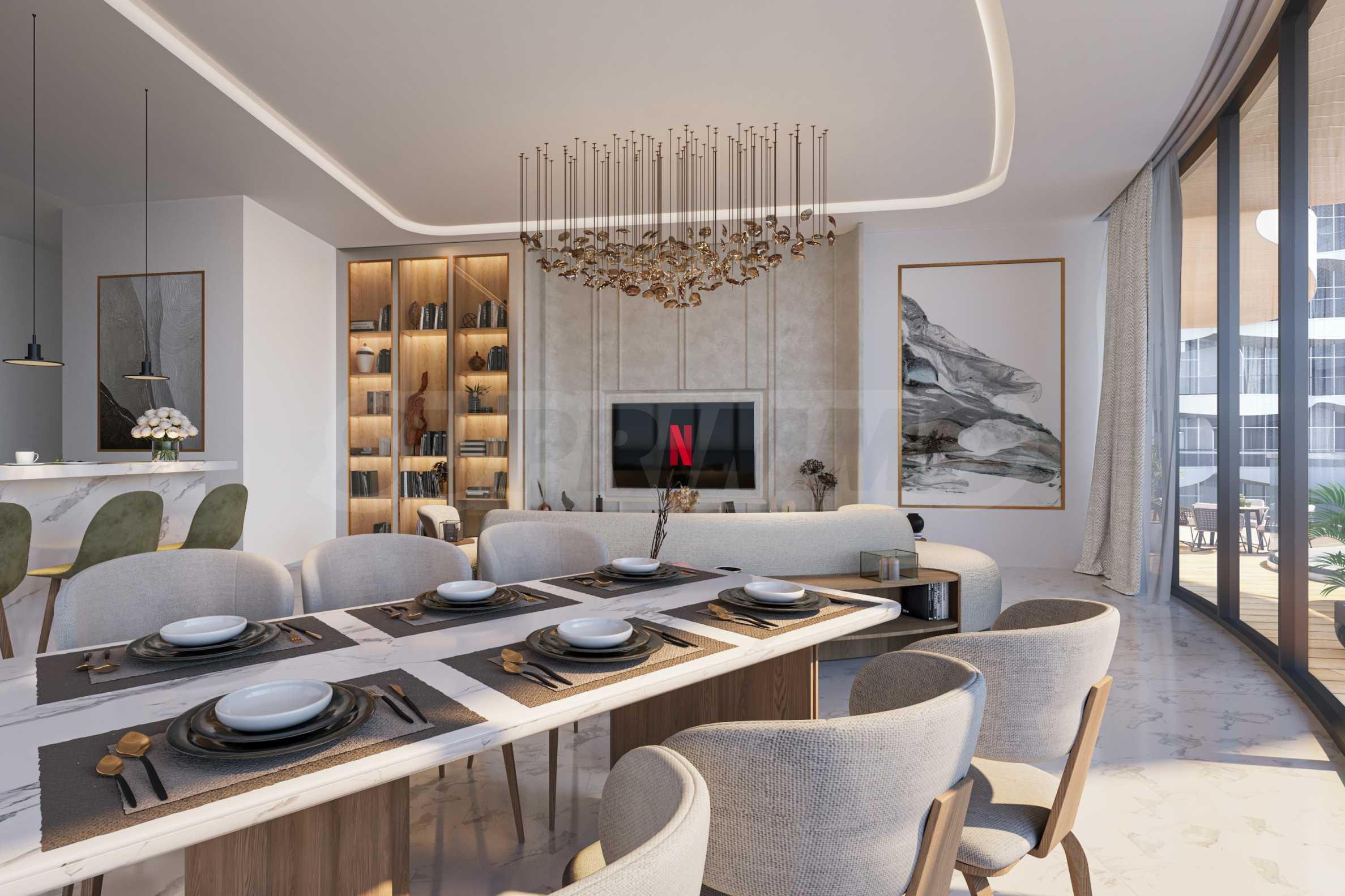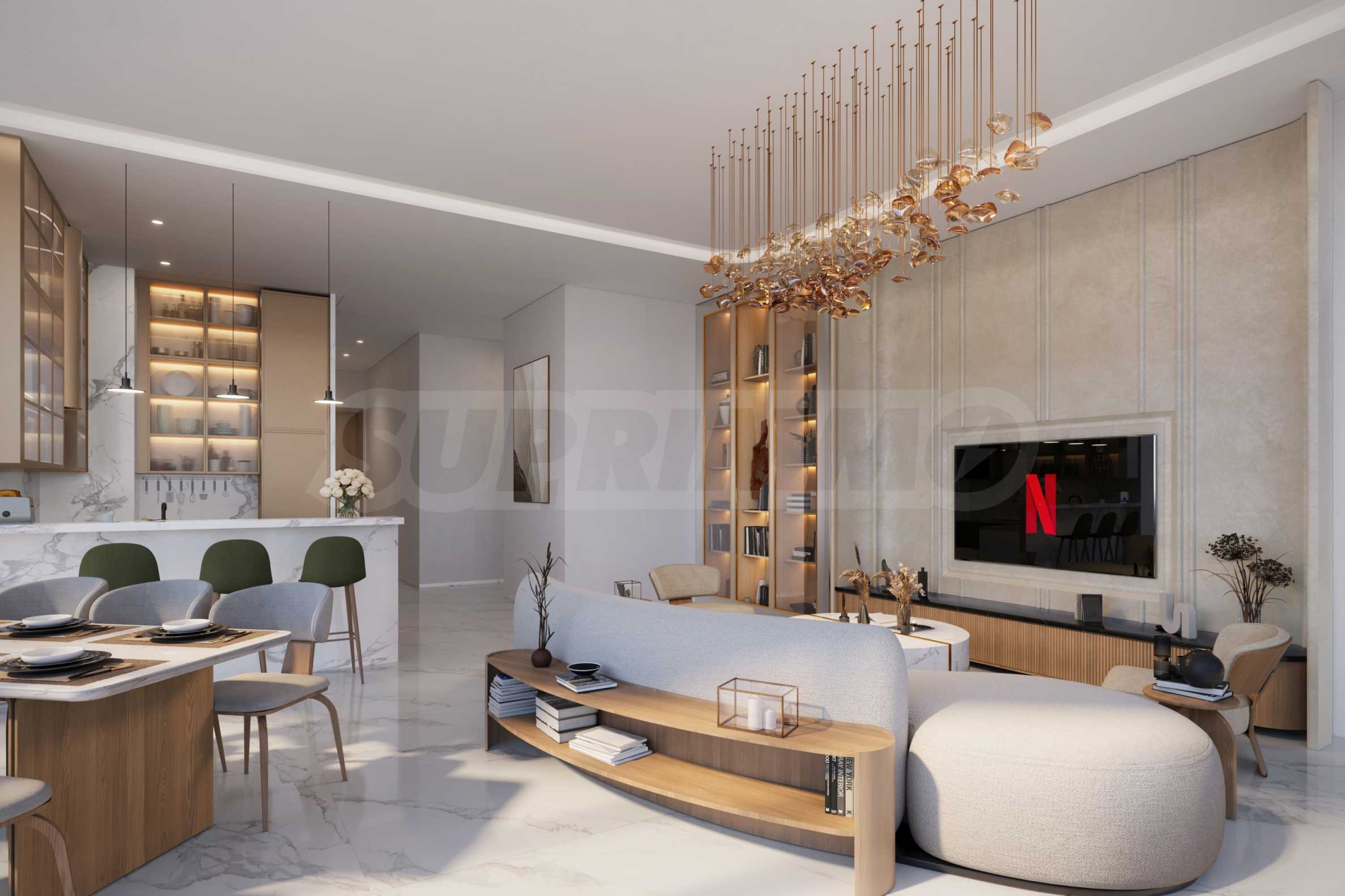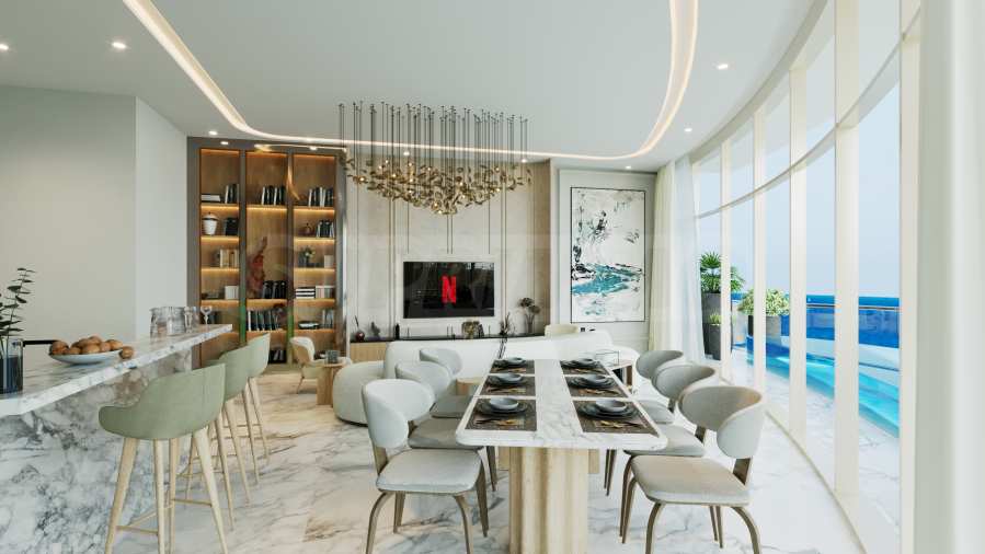 В здании предлагаются квартиры-студии, а также апартаменты с одной, двумя и тремя спальнями, спроектированные с вниманием к каждой детали для создания безопасной, комфортной и гармоничной жилой среды. Планировка построена вокруг просторных гостиных открытой планировки, которые естественным образом объединяют кухню и обеденную зону, образуя современное пространство для общения и совместного времяпрепровождения.