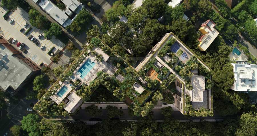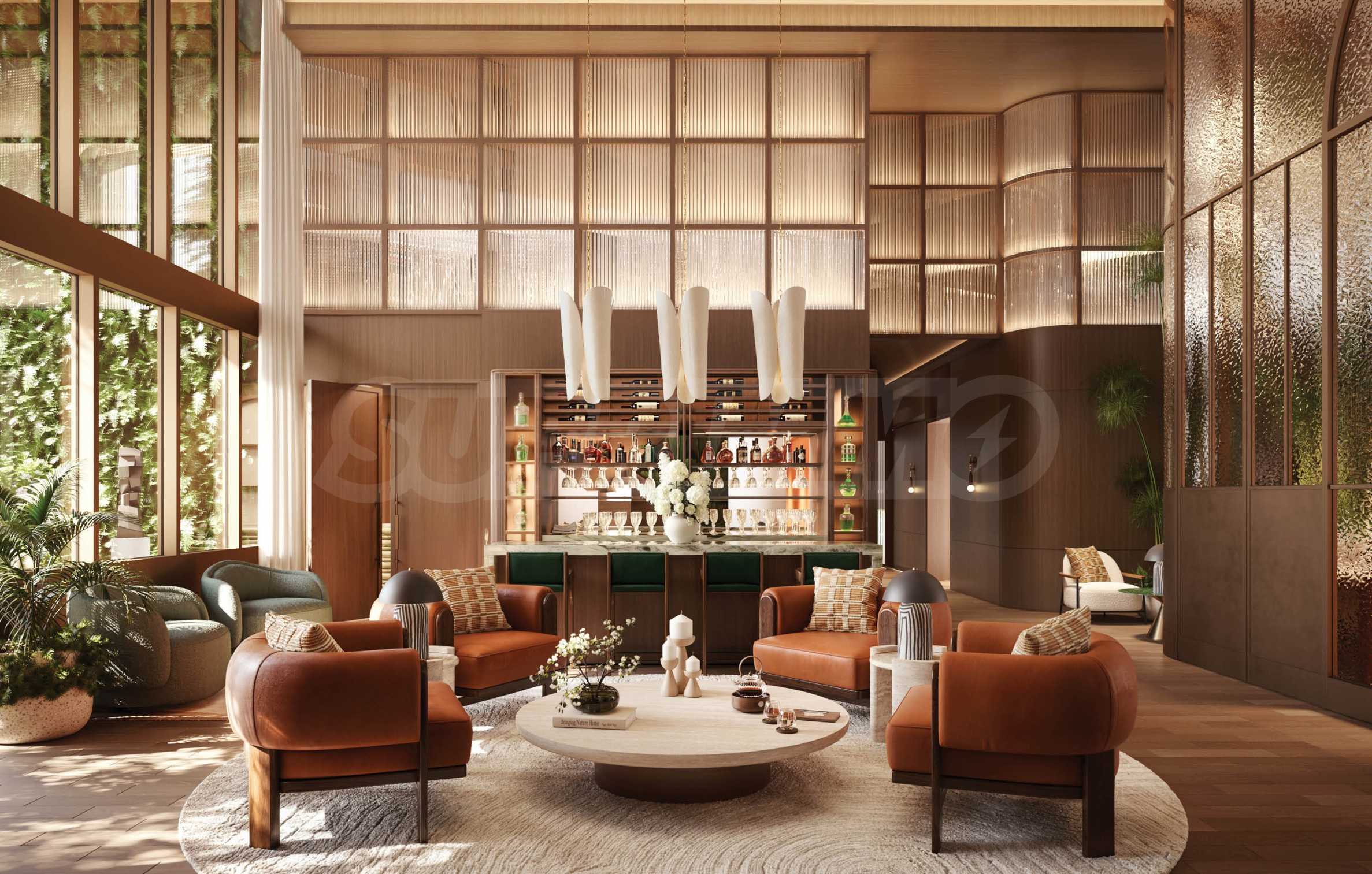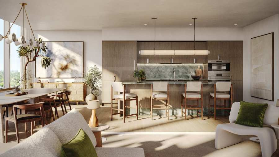 Жители смогут насладиться впечатляющей террасой на крыше площадью 3700 кв. м, спроектированной как оазис здоровья под открытым небом, а также современным оздоровительным клубом площадью 1200 кв. м. В лофтах на первом этаже впечатляют потолки высотой 6,7 метра в жилых зонах и двухэтажные стеклянные фасады, создающие ощущение простора и света. Фасад из кораллового камня отдает дань исторической архитектуре района и дополняет элегантный облик здания.