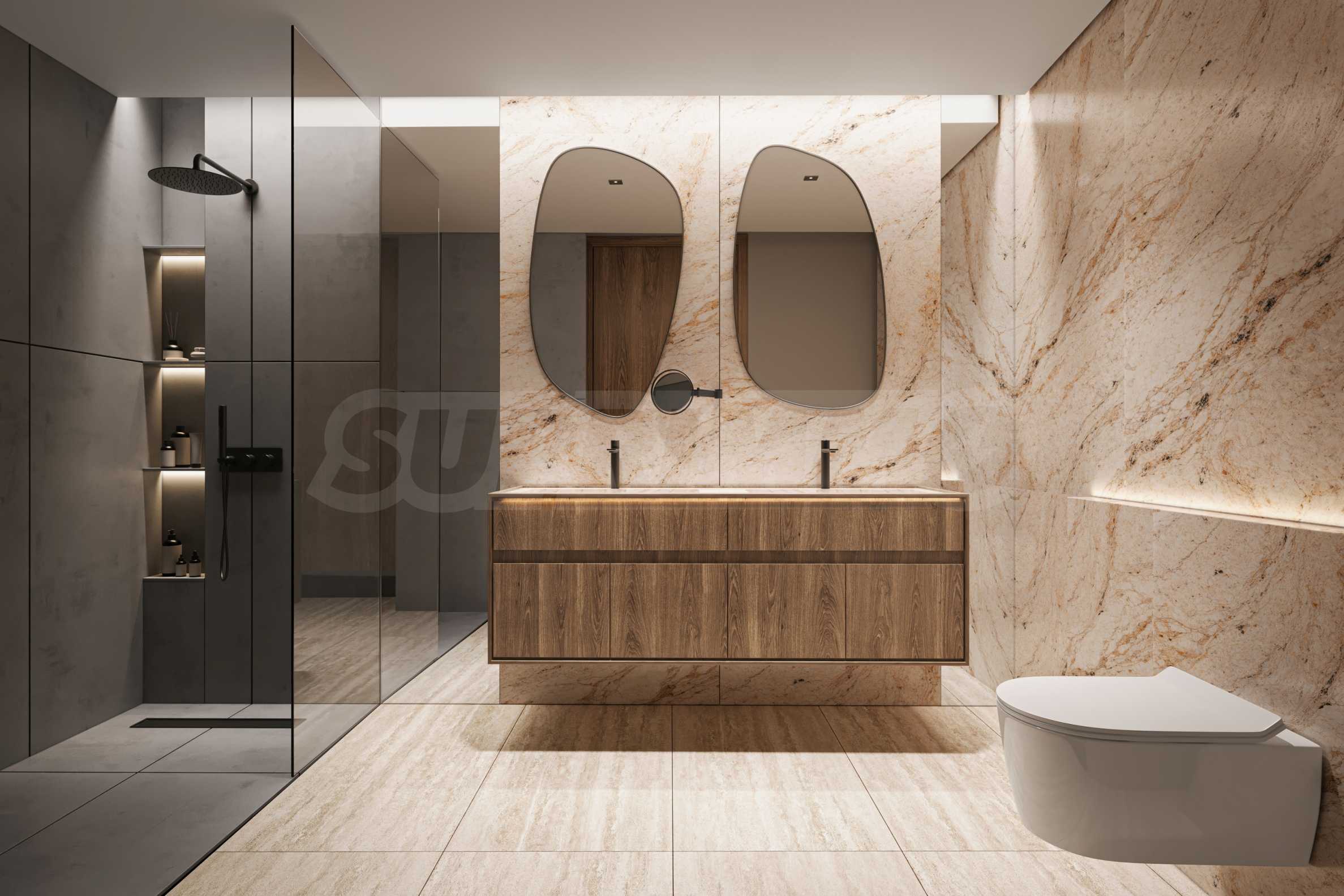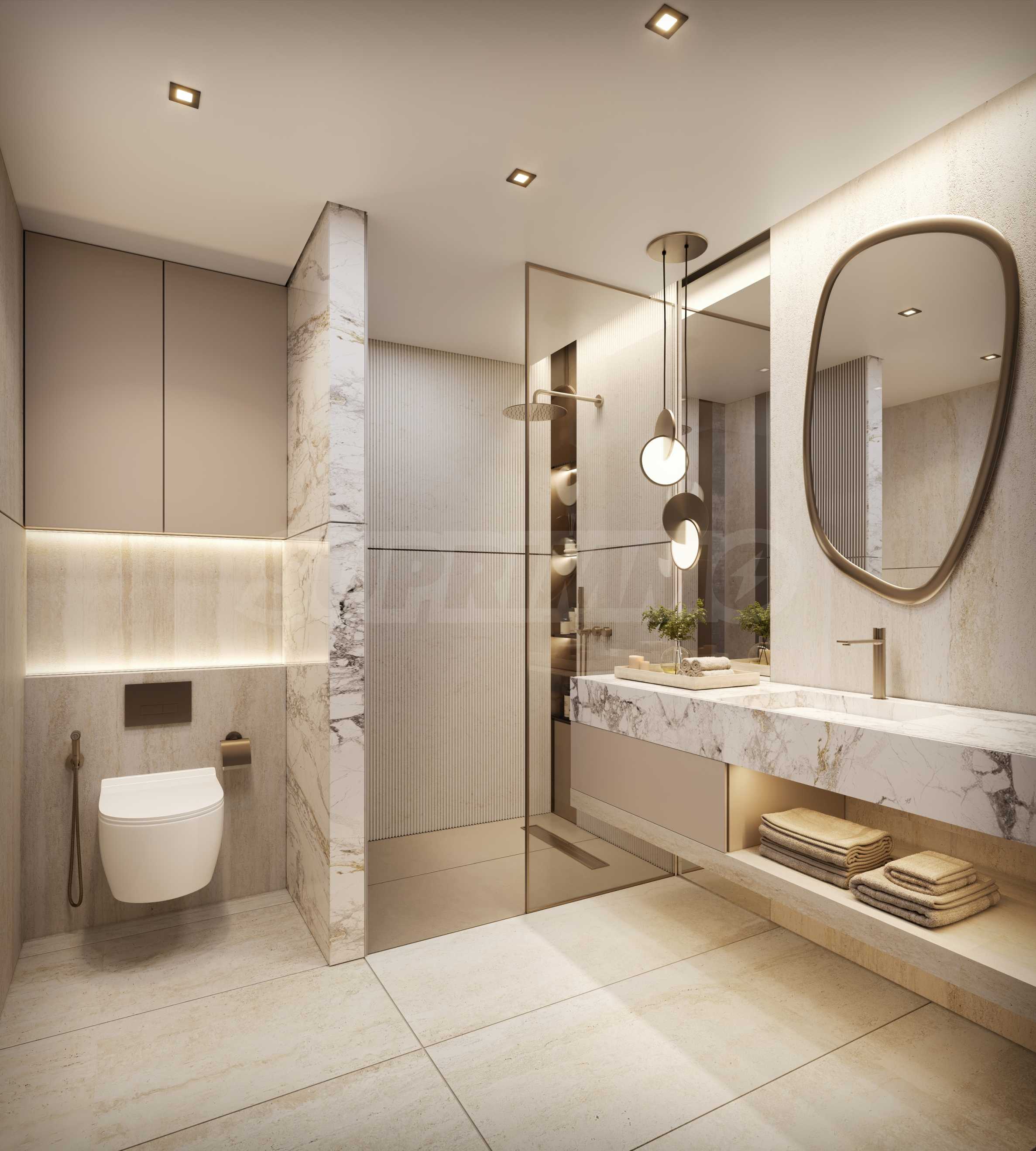 Квартира сдается «под ключ» — с высококачественным напольным покрытием, межкомнатными дверями, освещением, оборудованной кухней и современными ванными комнатами. Интерьер выполнен в современном и элегантном стиле, что позволяет легко адаптировать его к личному вкусу будущего владельца.