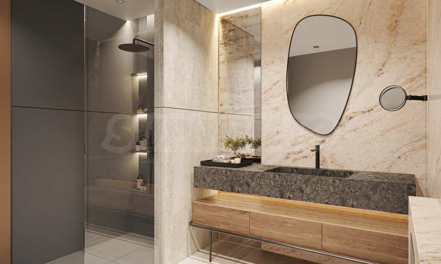 Квартира сдается «под ключ» — с высококачественным напольным покрытием, межкомнатными дверями, освещением, оборудованной кухней и современными ванными комнатами. Интерьер выполнен в современном и элегантном стиле, что позволяет легко адаптировать его к личному вкусу будущего владельца.