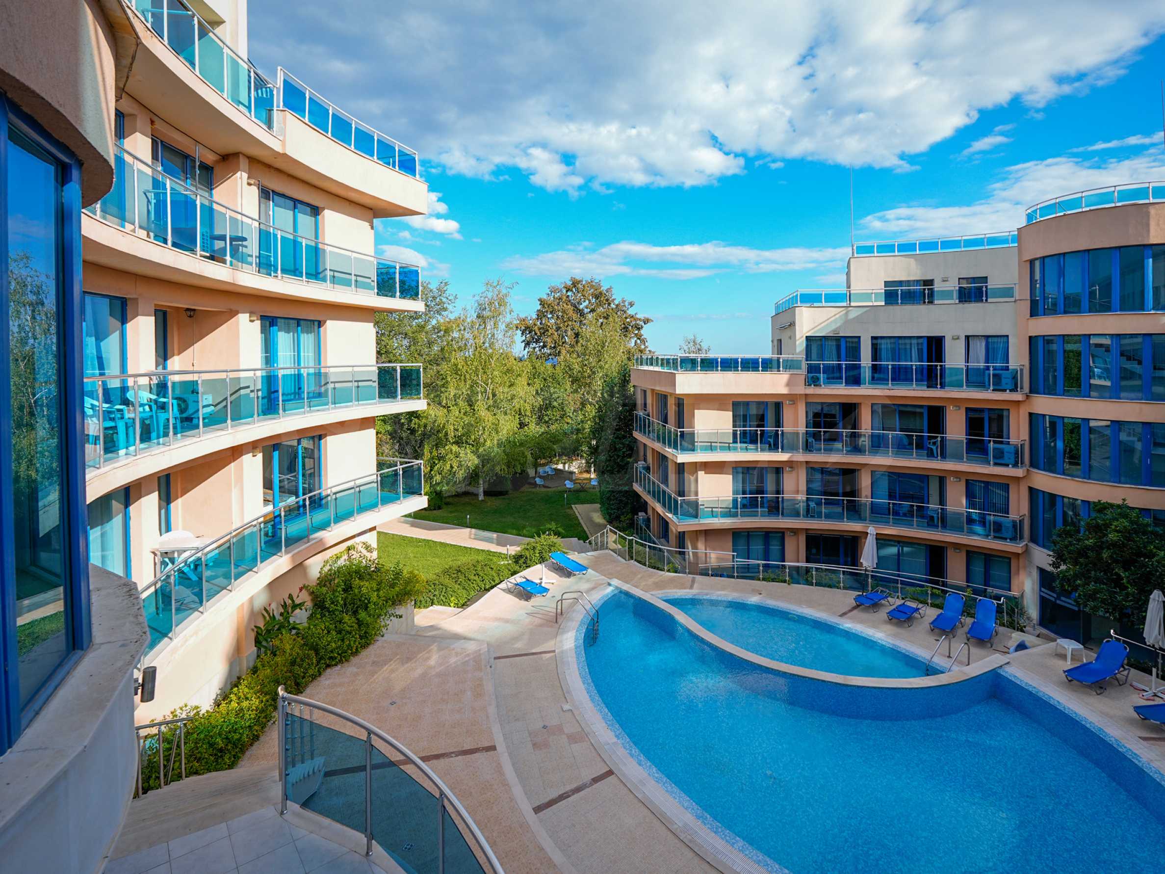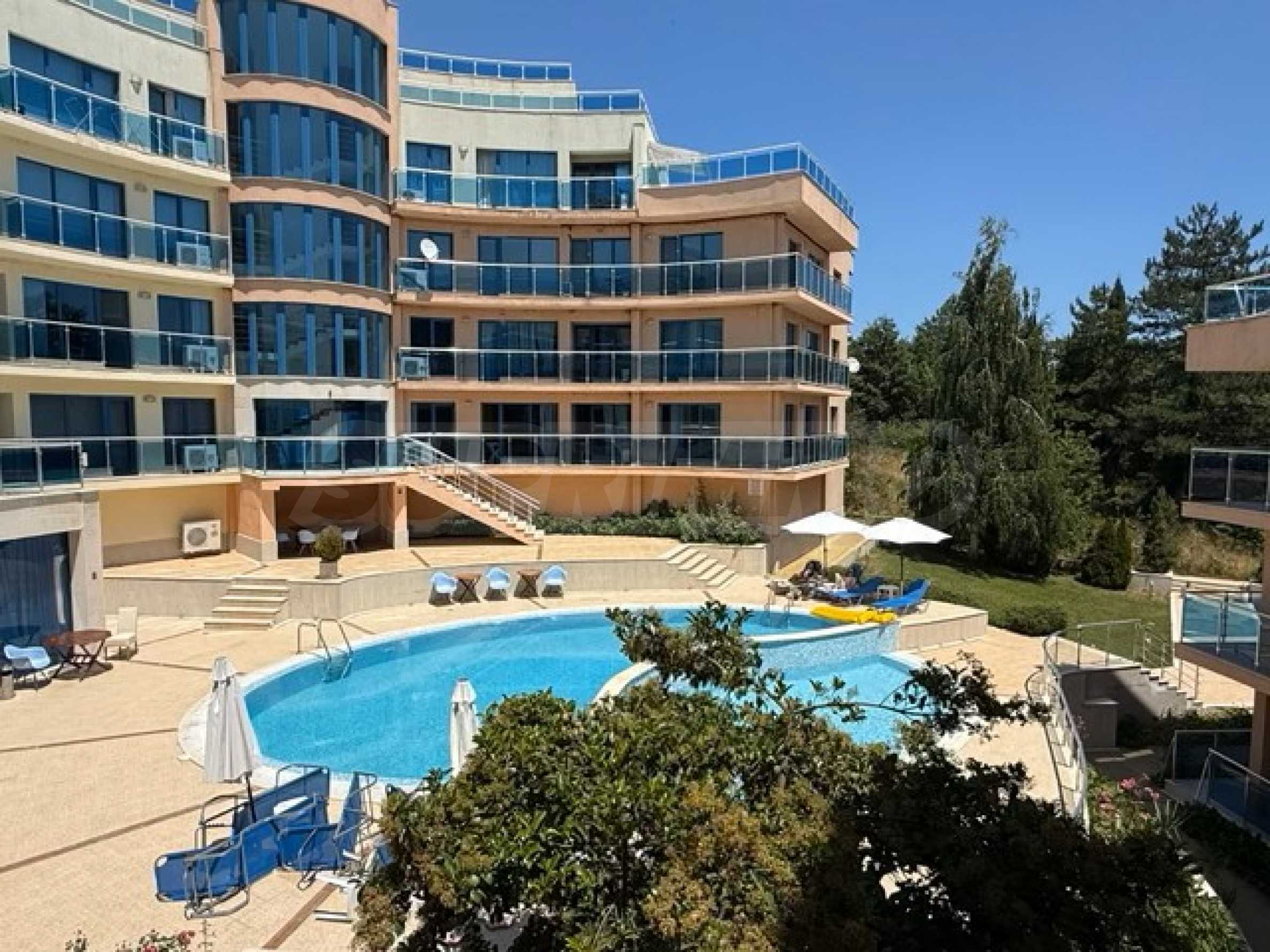 Комплекс состоит из 3 отдельных зданий, каждое с собственным входом и лифтом. Он работает круглый год и предлагает спокойную обстановку как для отдыха, так и для круглогодичного проживания.