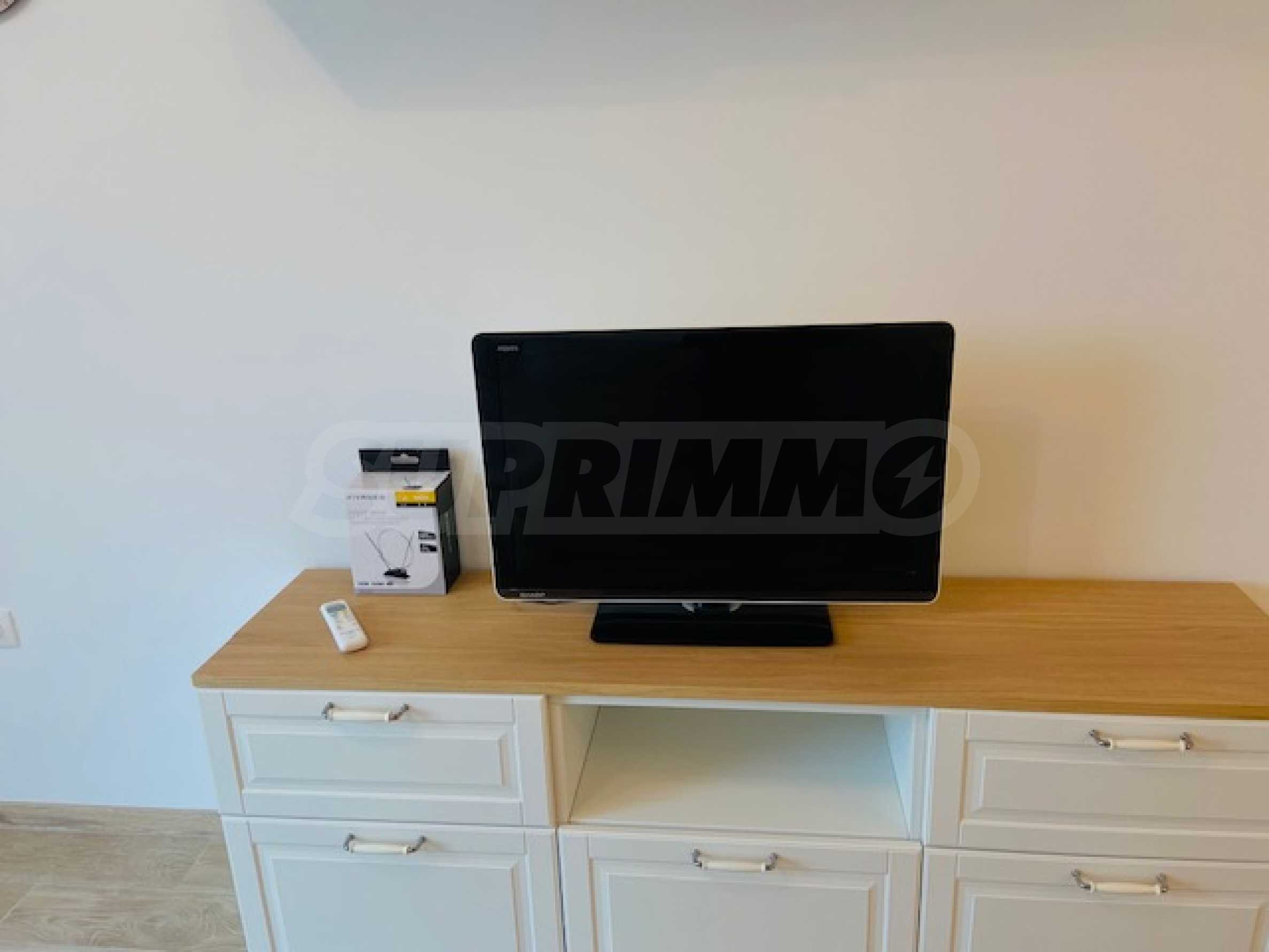 Квартира после капитального ремонта полностью меблирована и оборудована новой мебелью и бытовой техникой: холодильником, морозильной камерой, посудомоечной машиной, духовкой, стиральной машиной и телевизором. Отопление и кондиционирование воздуха обеспечиваются кондиционерами. Домашние животные не допускаются.