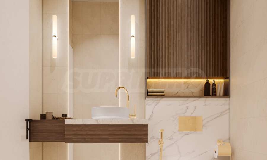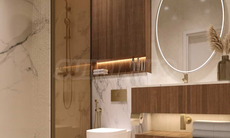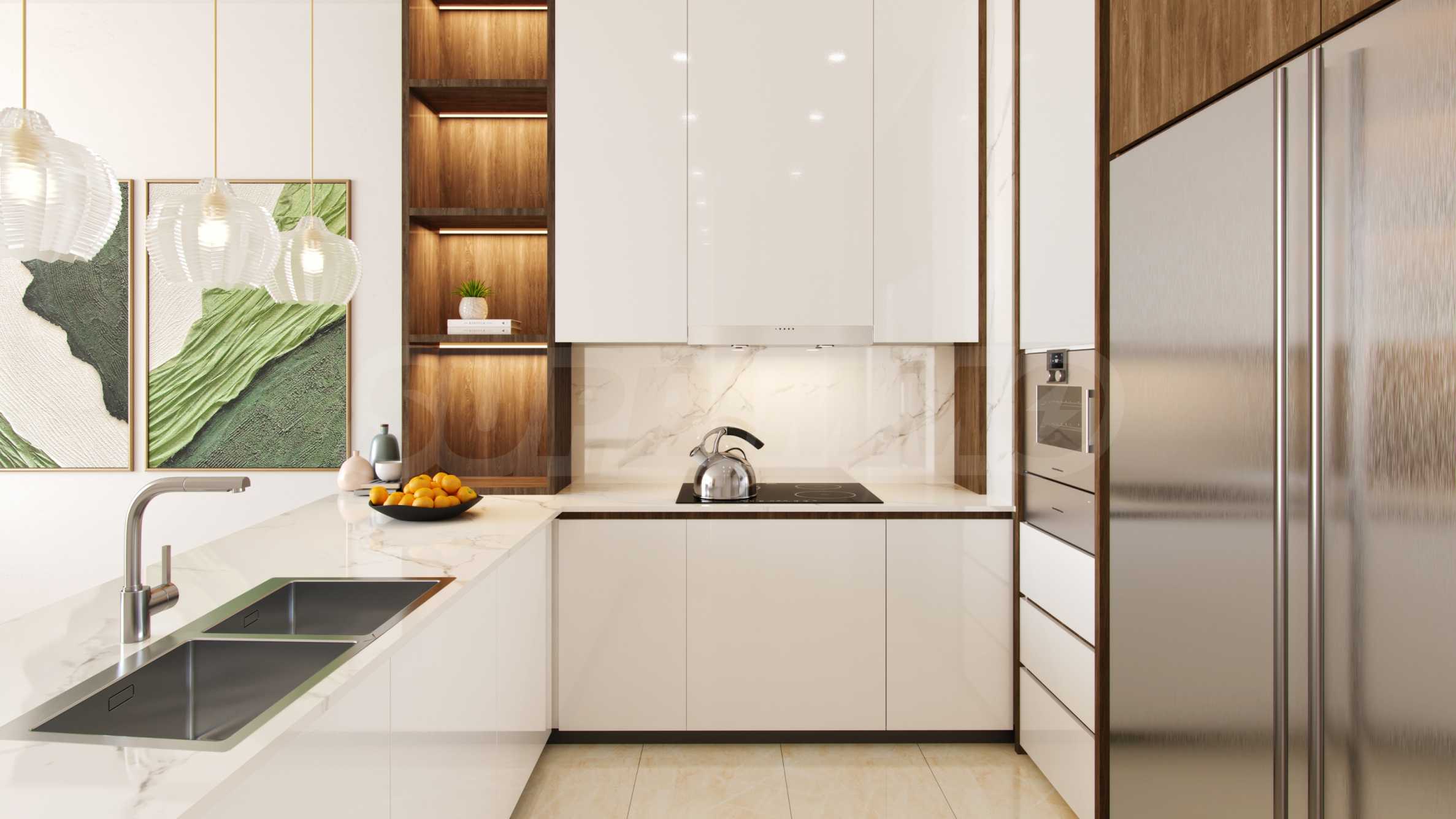 Квартира предлагается полностью меблированной и оборудованной. Концепция интерьера построена на светлой цветовой палитре, элегантных линиях и чистой эстетике, что создает гармоничную и спокойную атмосферу. Эта основа позволяет легко добавить свой индивидуальный стиль с помощью тщательно подобранных декоративных элементов и аксессуаров, превращая квартиру в уютный и персонализированный дом.