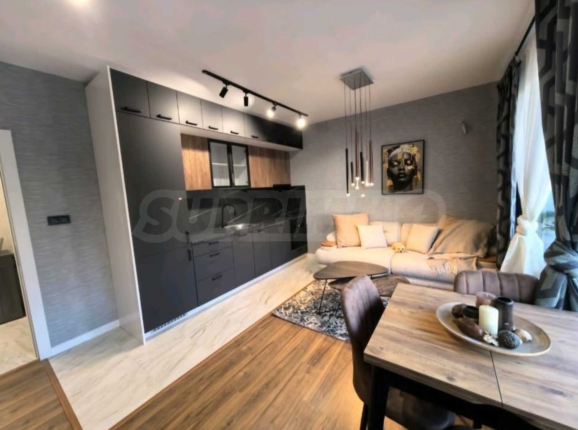 • Светлая гостиная с современной кухней;