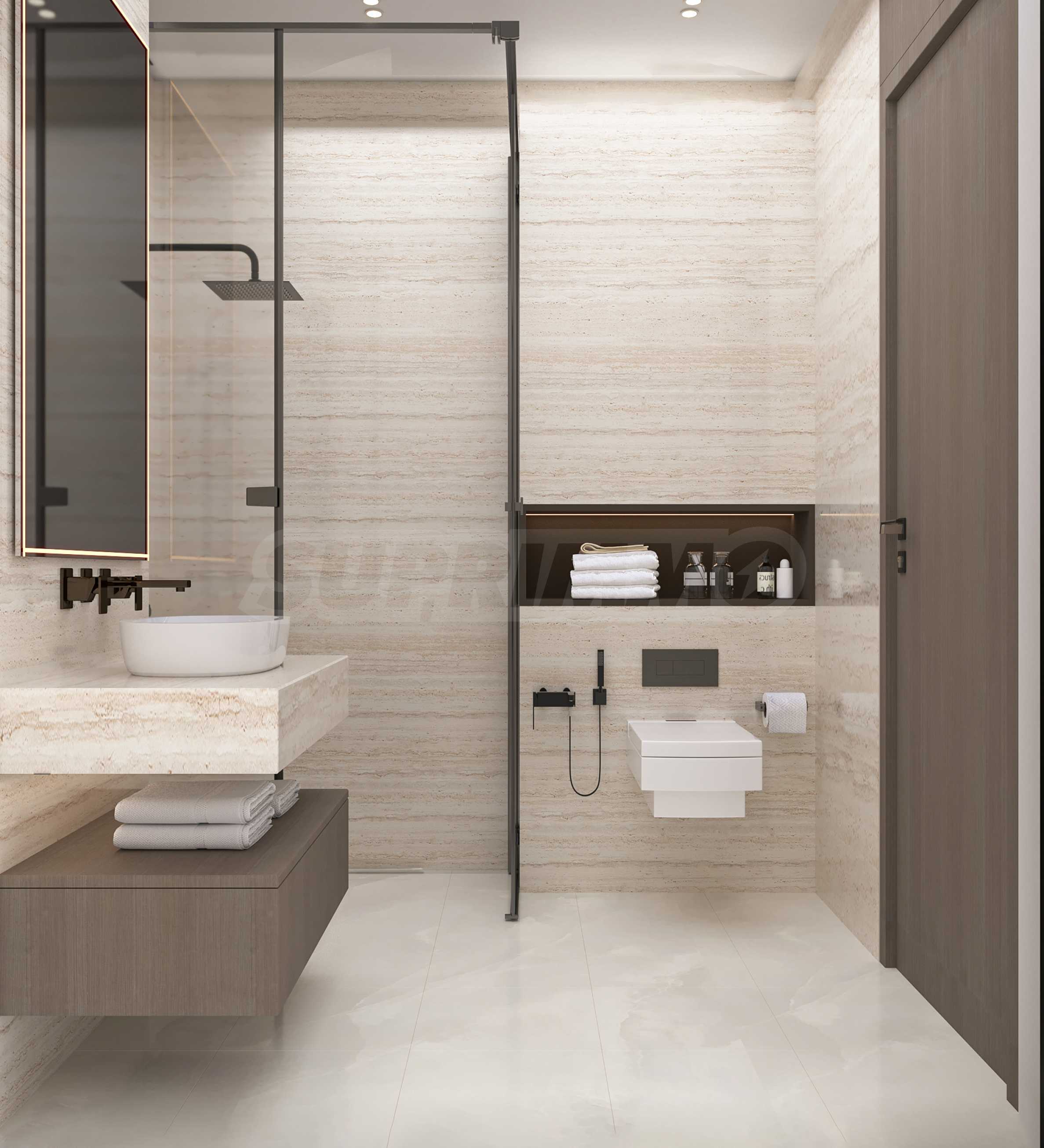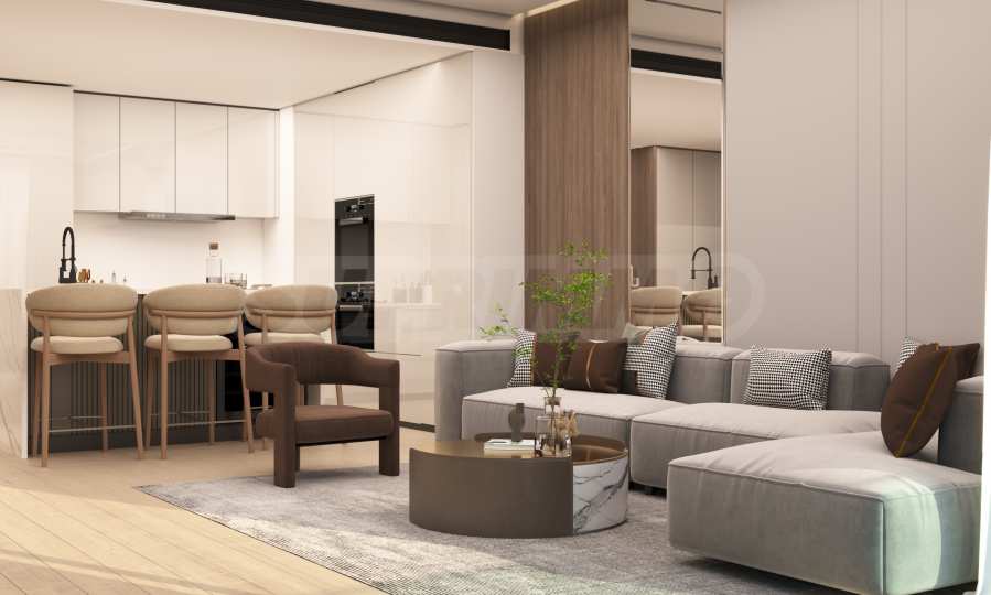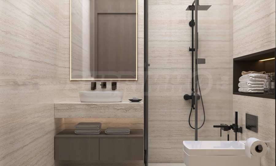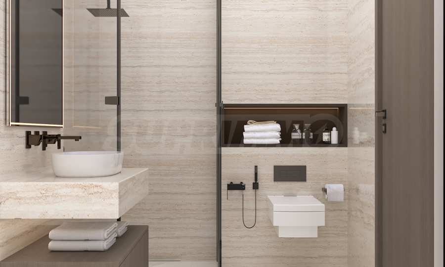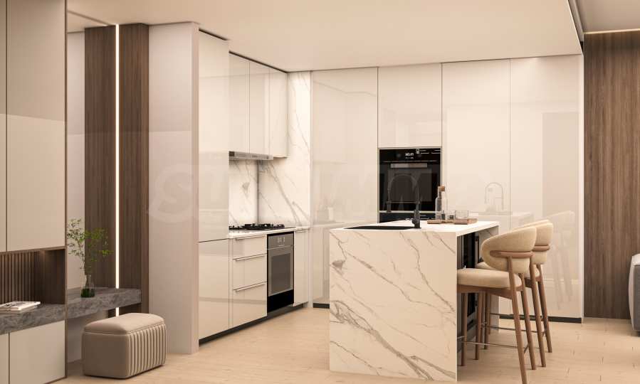 Квартиры продаются «под ключ», что включает в себя установку входных и межкомнатных дверей, напольного покрытия, освещения, встроенных кухонь и ванных комнат. В отделке использованы такие материалы, как белый мрамор, матовая латунь с тонкой обработкой поверхности, дуб теплого бежевого оттенка и декоративные обои, которые станут отличной основой для меблировки в соответствии с вашим вкусом и предпочтениями.