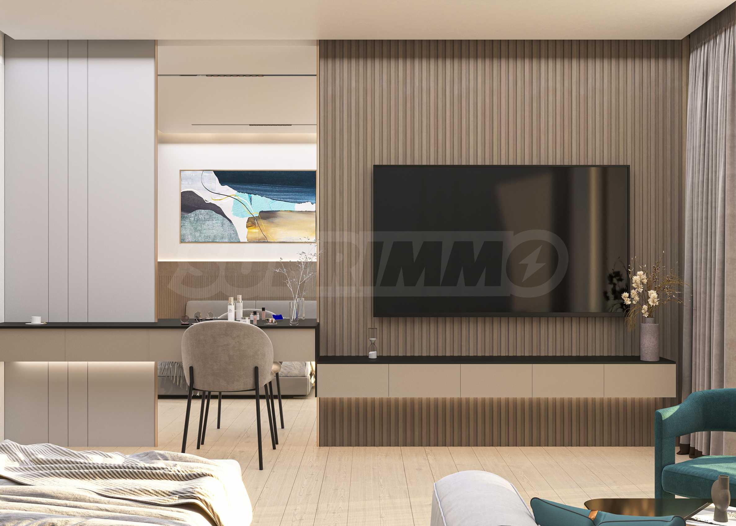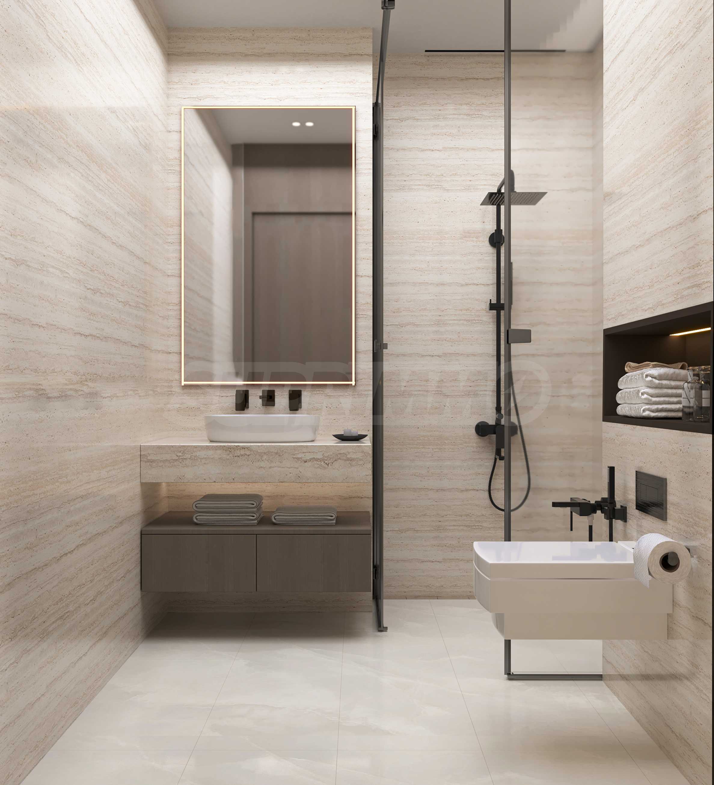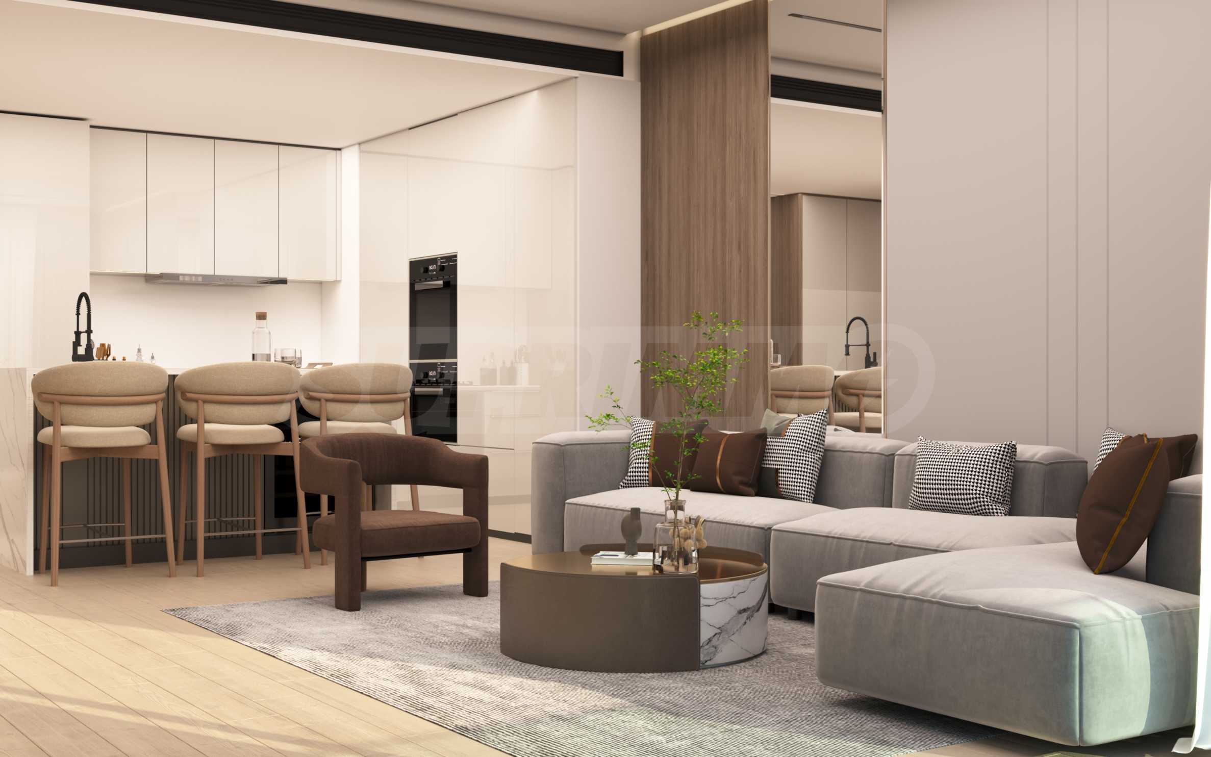 Квартиры продаются «под ключ», что включает в себя установку входных и межкомнатных дверей, напольного покрытия, освещения, встроенных кухонь и ванных комнат. В отделке использованы такие материалы, как белый мрамор, матовая латунь с тонкой обработкой поверхности, дуб теплого бежевого оттенка и декоративные обои, которые станут отличной основой для меблировки в соответствии с вашим вкусом и предпочтениями.