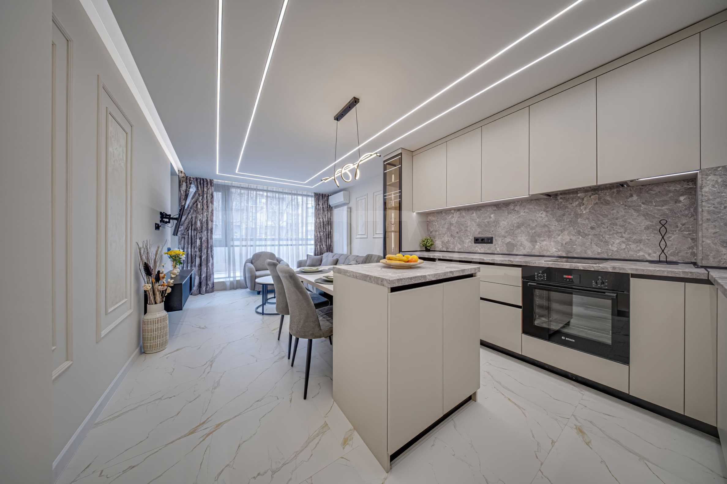 • Кухня – встроенная бытовая техника, включая посудомоечную машину, марок Bosch и Whirlpool;