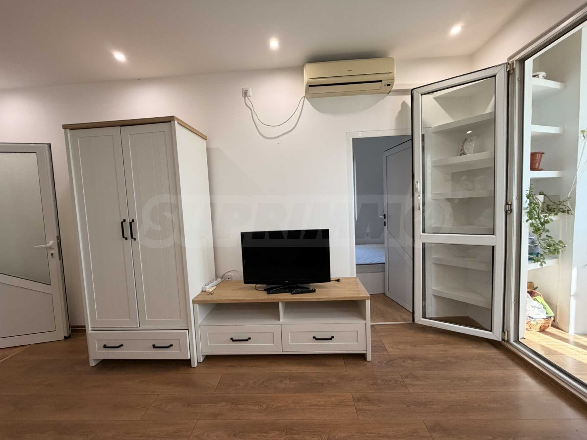 Предлагаем в аренду однокомнатную квартиру, расположенную в отремонтированном многоквартирном доме в районе Изгрев, Бургас.