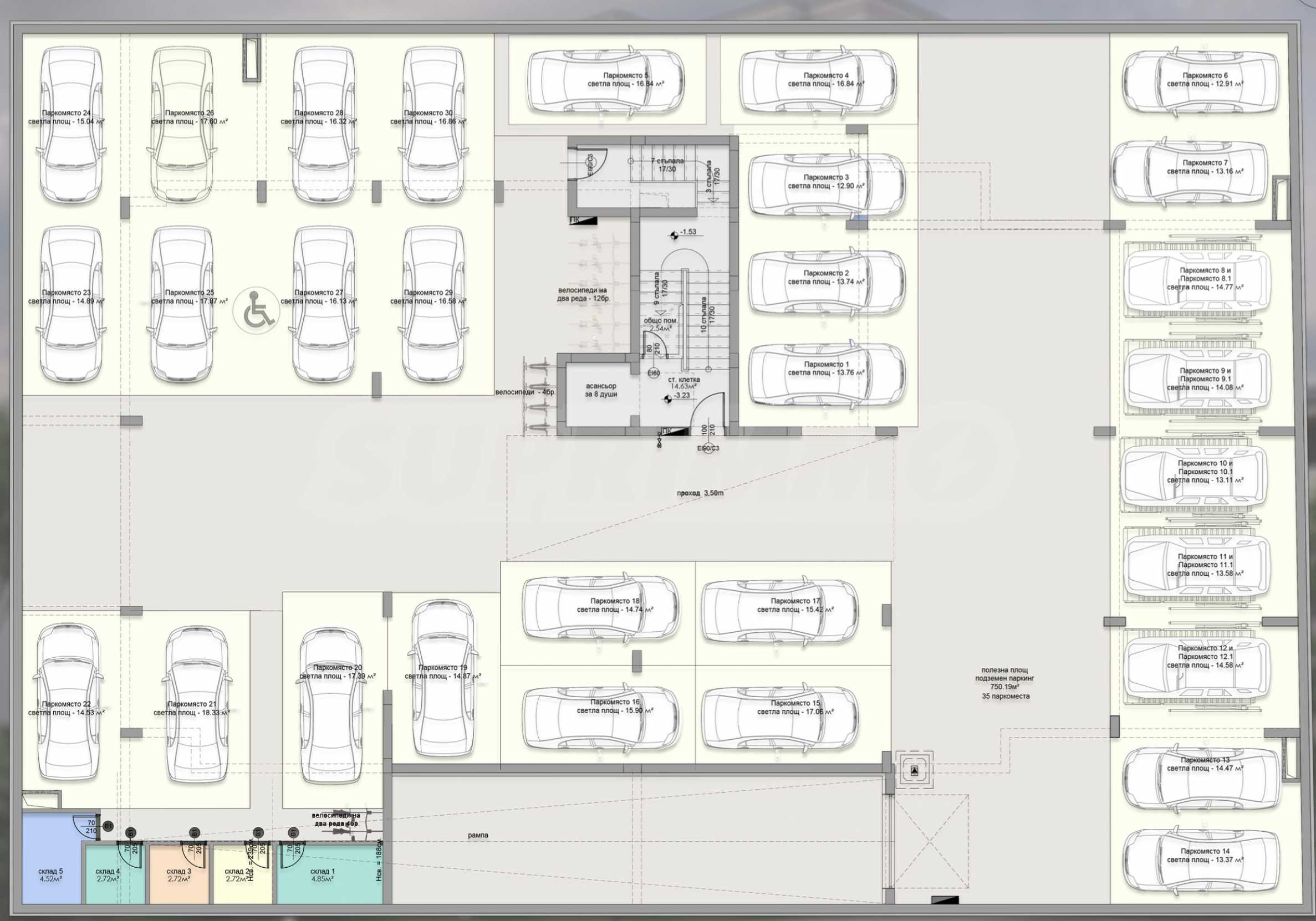 Владельцы недвижимости имеют возможность приобрести парковочные места по цене от 30 000 евро / 58 675 левов.