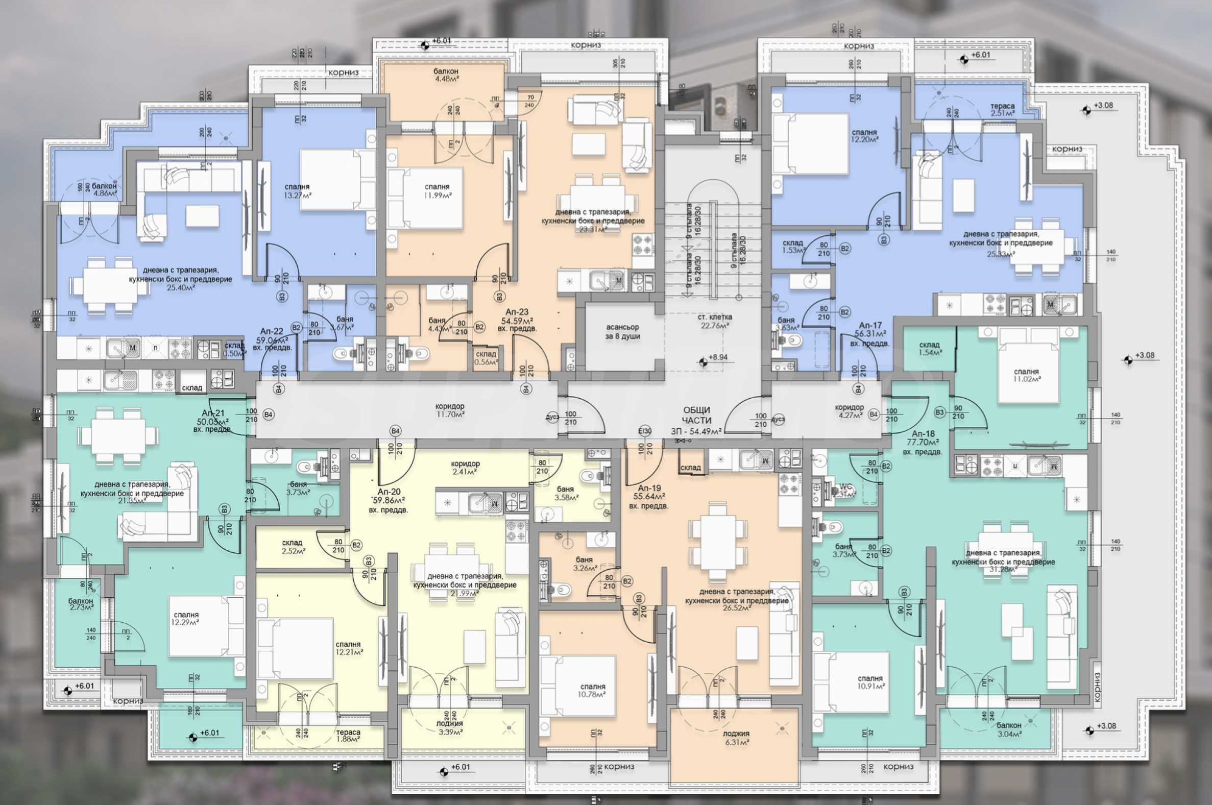 Предлагаются двух- и трехкомнатные квартиры, соответствующие болгарским строительным стандартам.