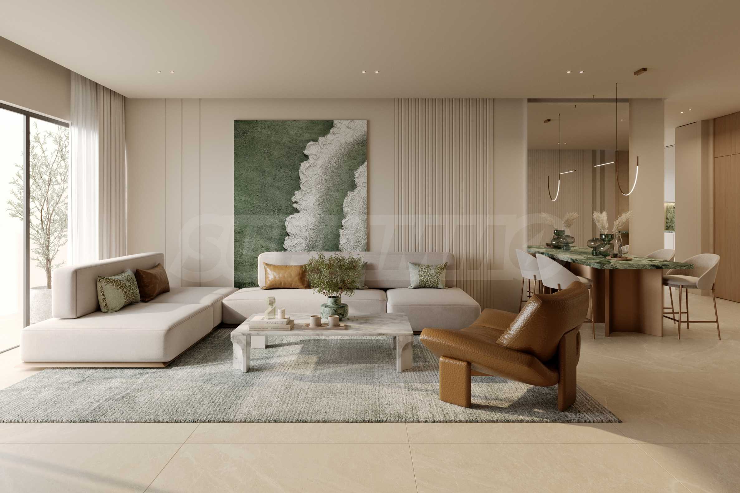 Интерьер выполнен в современном и изысканном стиле, с тщательно подобранными отделочными материалами и внедренными интеллектуальными технологиями, которые облегчают повседневную жизнь и создают ощущение комфорта и эффективности. Каждая деталь — от качественных экологически чистых материалов до индивидуальных дизайнерских акцентов — соответствует концепции современной роскоши и целостной жилой среды. Безопасность также находится на высоком уровне благодаря круглосуточной охране и современным системам видеонаблюдения.