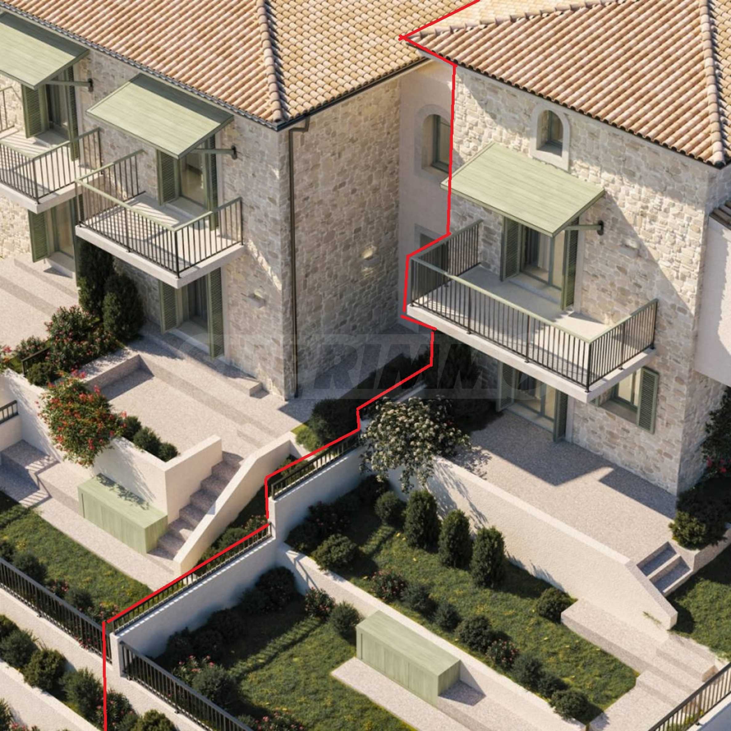 В ваш земельный участок входит ухоженный сад площадью 45,50 кв. м – идеально подходящий для оливкового дерева и шезлонгов, а также просторная парковка площадью 113,41 кв. м для ваших автомобилей и лодки.