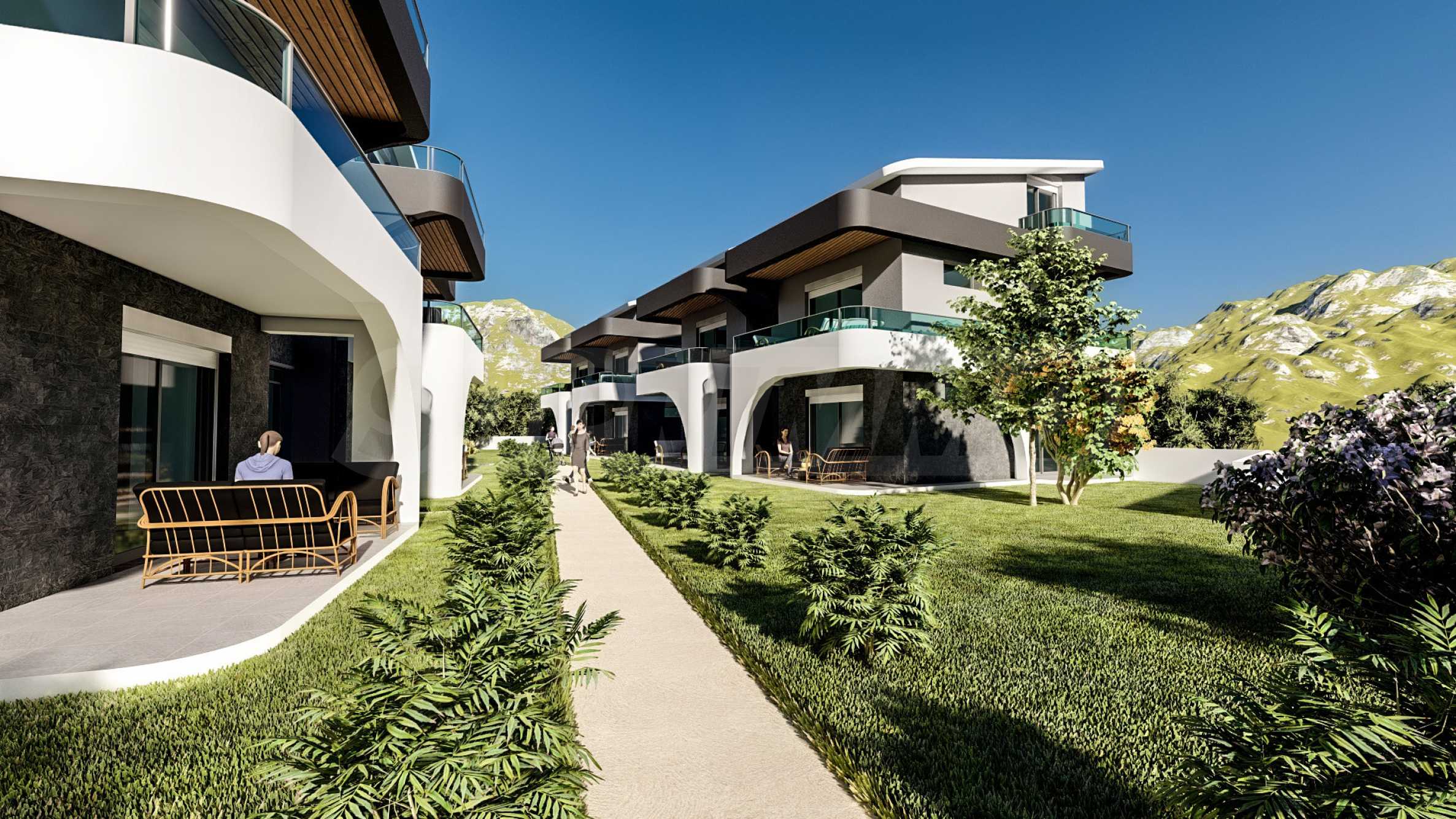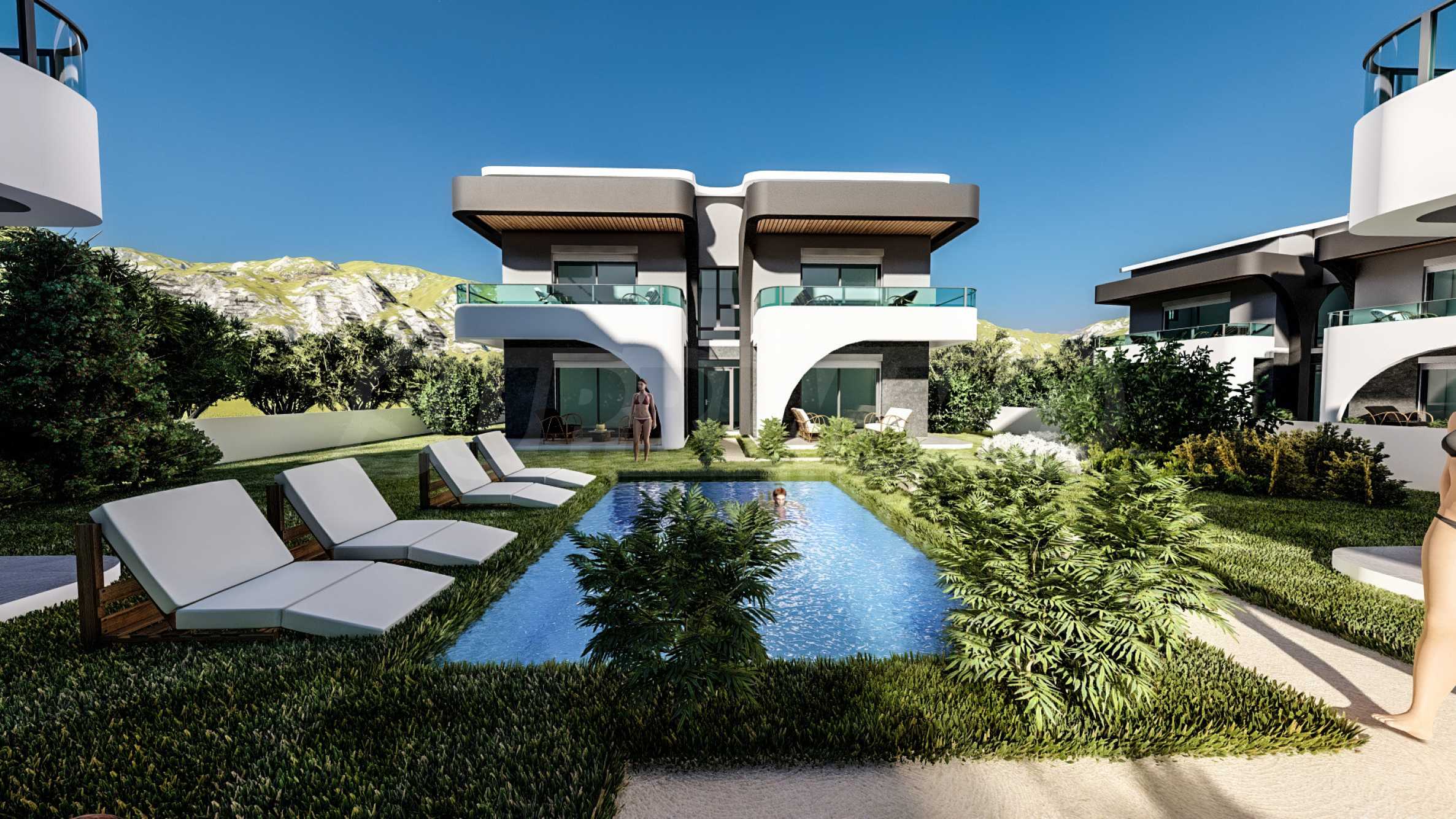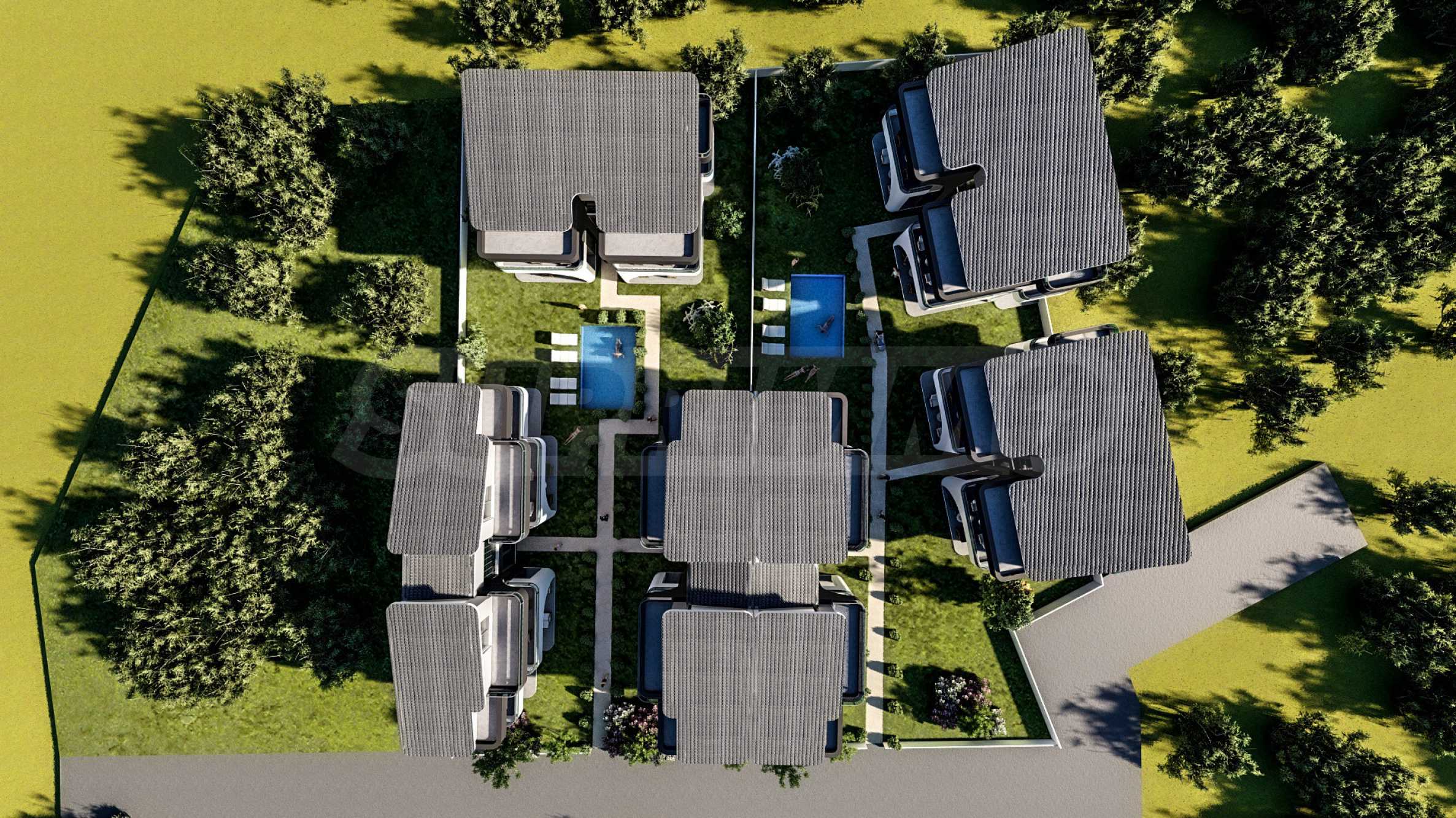 В дополнение к жилой зоне, комплекс предлагает благоустроенный двор и общий открытый бассейн с зонами отдыха — идеальное место для отдыха в теплые дни, не выходя из дома.