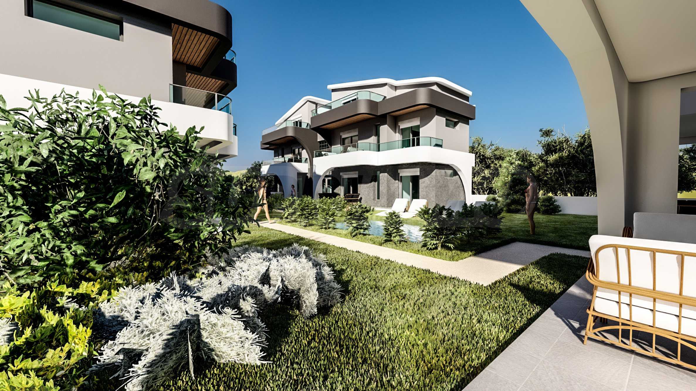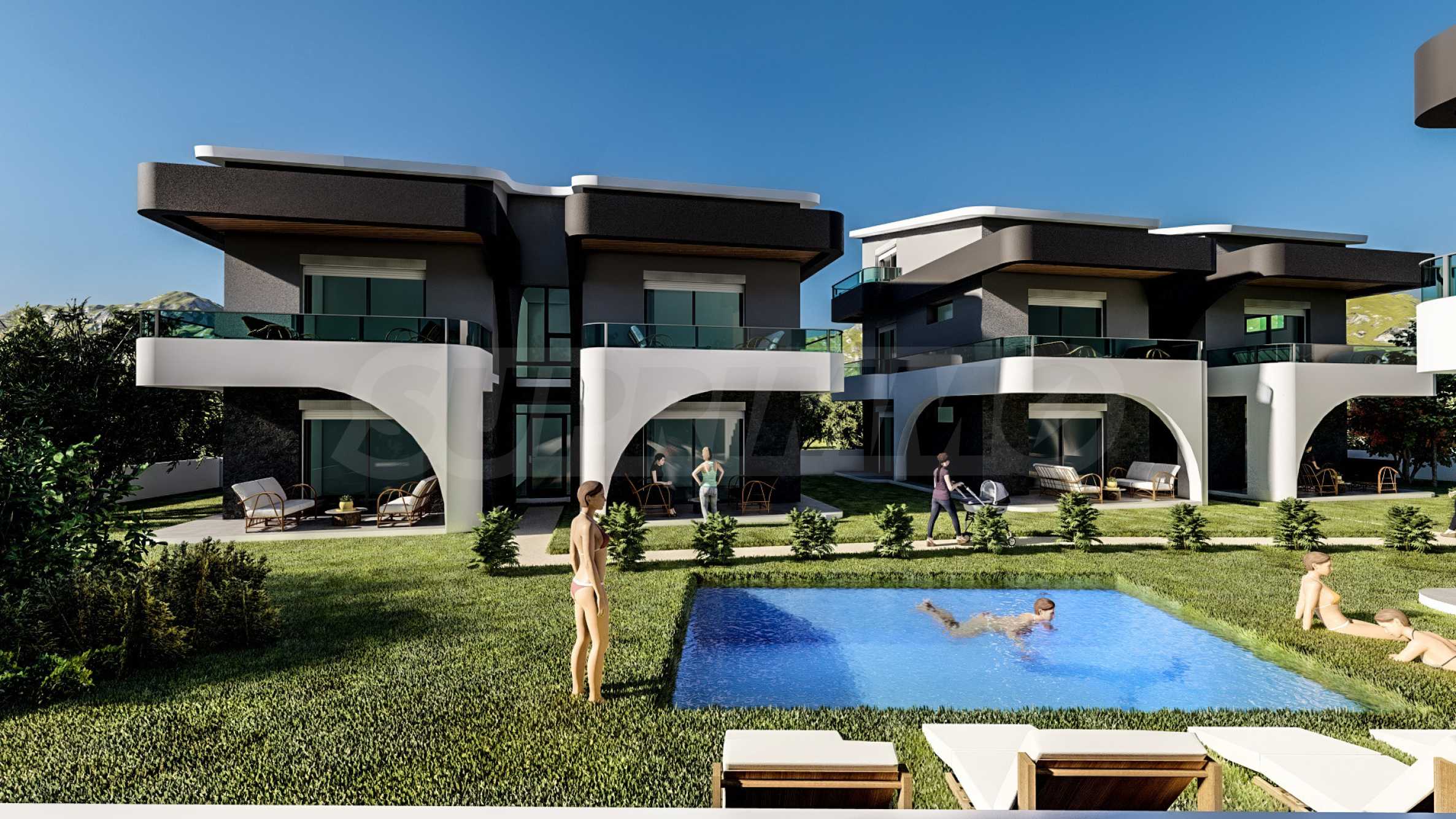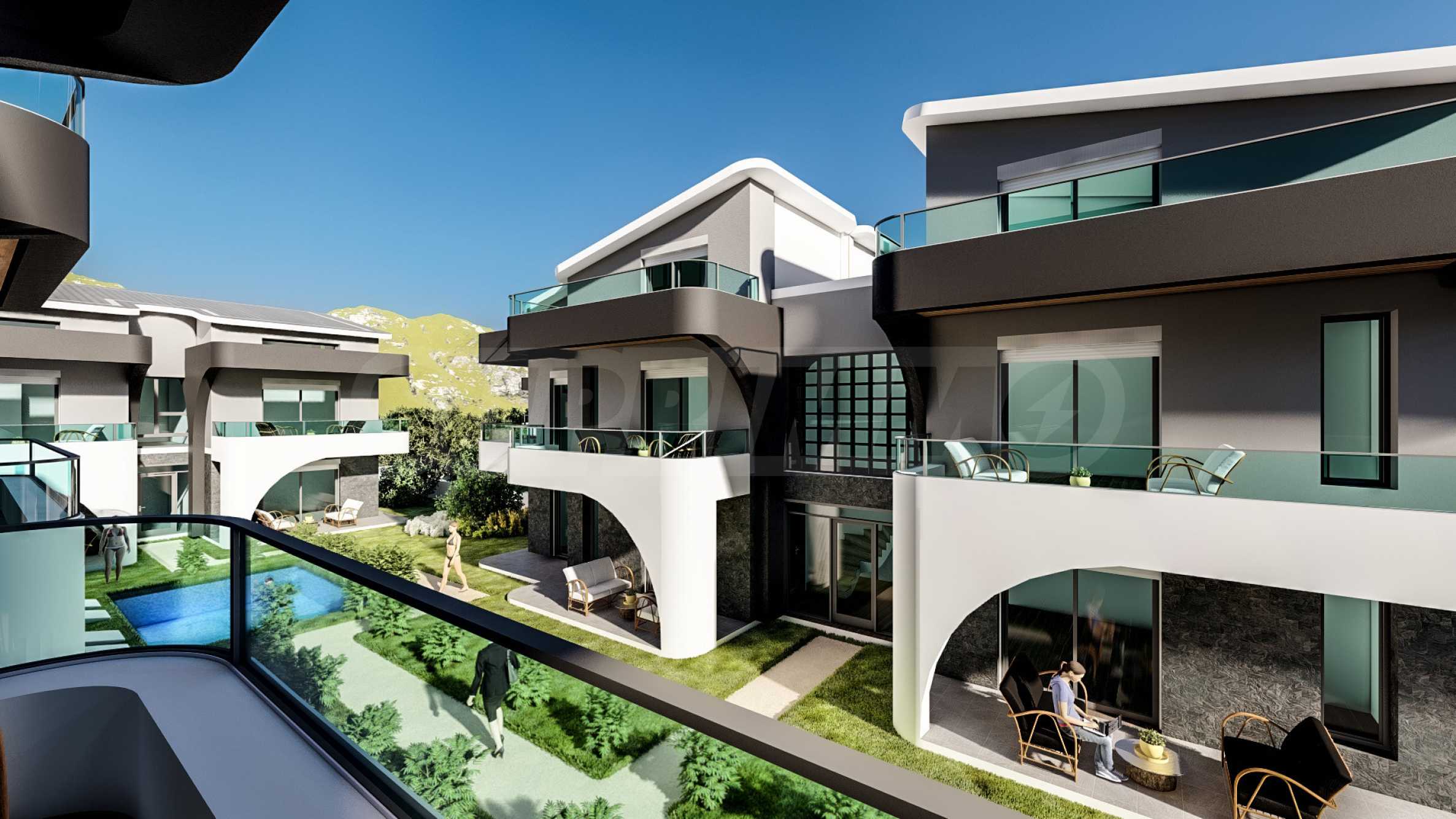 В дополнение к жилой зоне, комплекс предлагает благоустроенный двор и общий открытый бассейн с зонами отдыха — идеальное место для отдыха в теплые дни, не выходя из дома.
