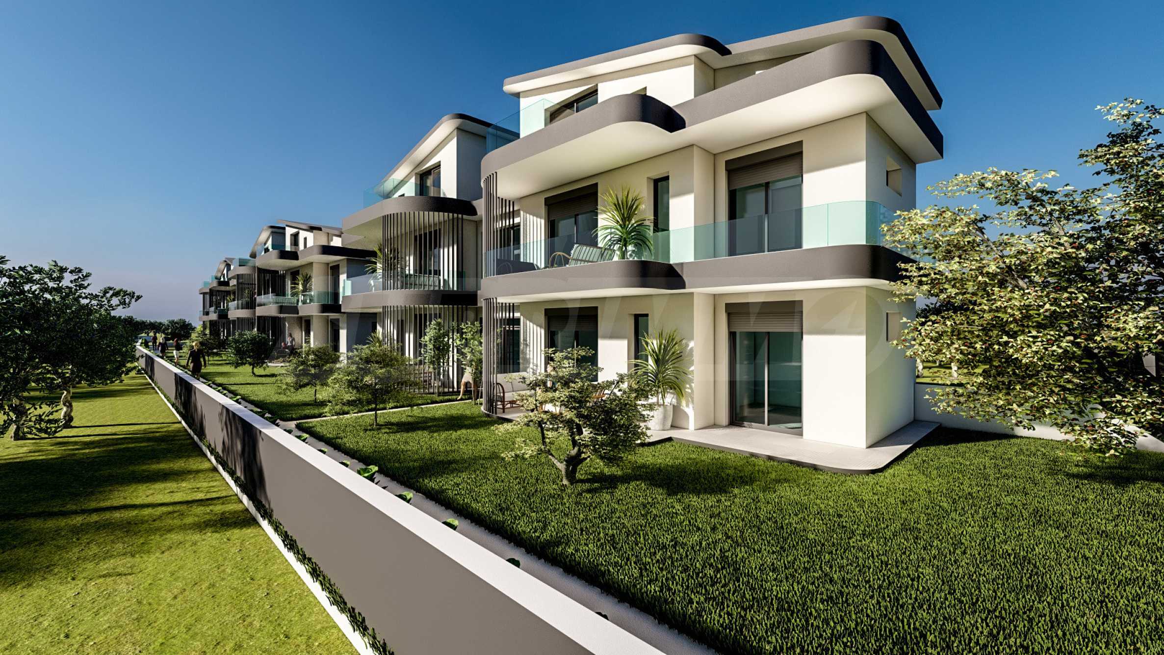 Проект включает в себя три небольших здания, в каждом из которых по четыре квартиры, спроектированные для обеспечения максимального комфорта и ощущения приватности. На первом этаже расположены функциональные двухкомнатные квартиры с просторными верандами, а на втором и третьем этажах – современные двухкомнатные мезонеты с солнечными балконами. Все квартиры предлагаются полностью готовыми к заселению «под ключ» – с дверями, напольным покрытием, освещением, оборудованными кухнями и ванными комнатами, что позволяет быстро заселиться или сдать их в аренду. Пространство между зданиями оформлено как благоустроенная территория, создающая гармоничную и спокойную атмосферу и естественным образом дополняющая ощущение жизни на лоне природы.
