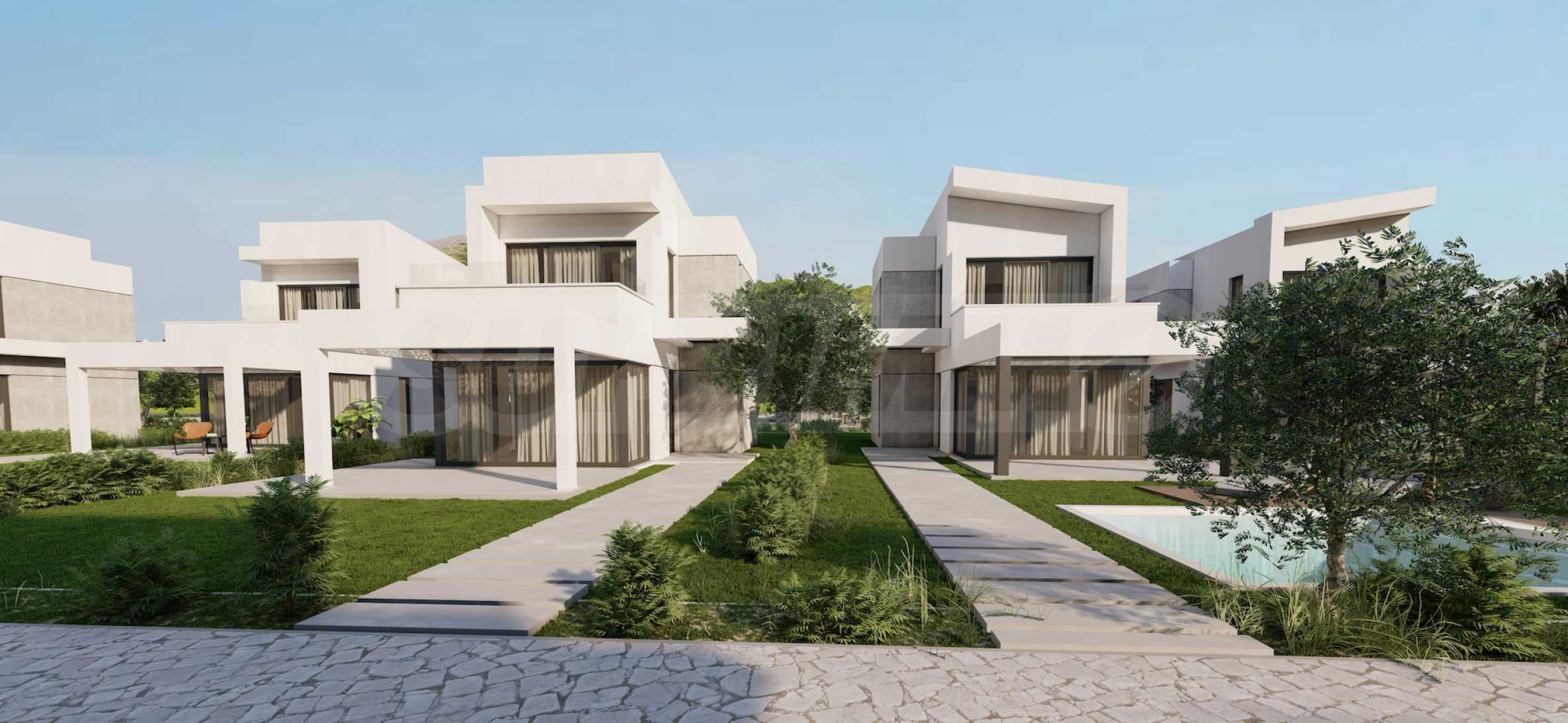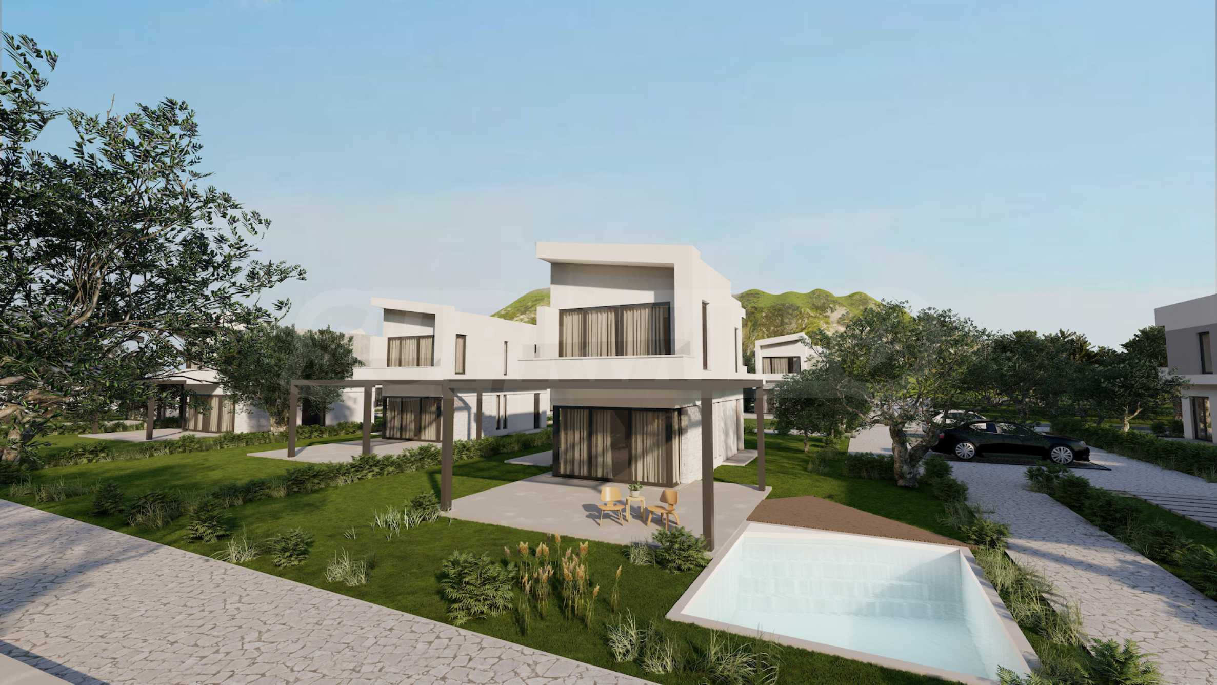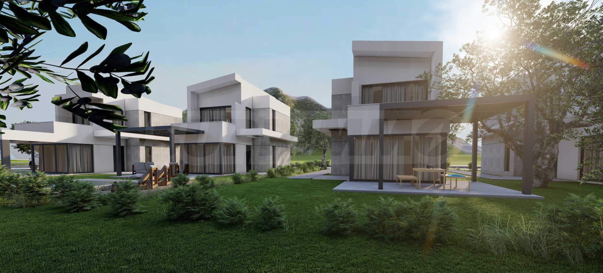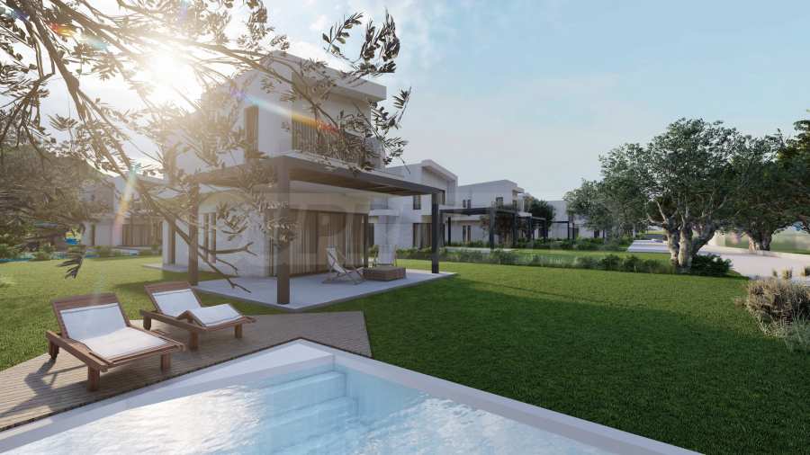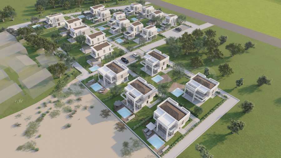 Комплекс состоит из 20 отдельных вилл на 2 уровнях, площадью от 85,93 м2 до 121,17 м2. Фасад тщательно продуман, с прямыми линиями и декоративными элементами, что придает всему комплексу современный и одновременно вневременной вид. Планировка включает просторные и светлые гостиные, две или три спальни и три ванные комнаты, гарантируя необходимый покой и уединение для всех жильцов. Все дома продаются «под ключ», с входными и внутренними дверями, напольным покрытием, освещением, встроенными кухнями и ванными комнатами. Кроме того, инвесторам предлагается возможность добавления частного открытого бассейна.