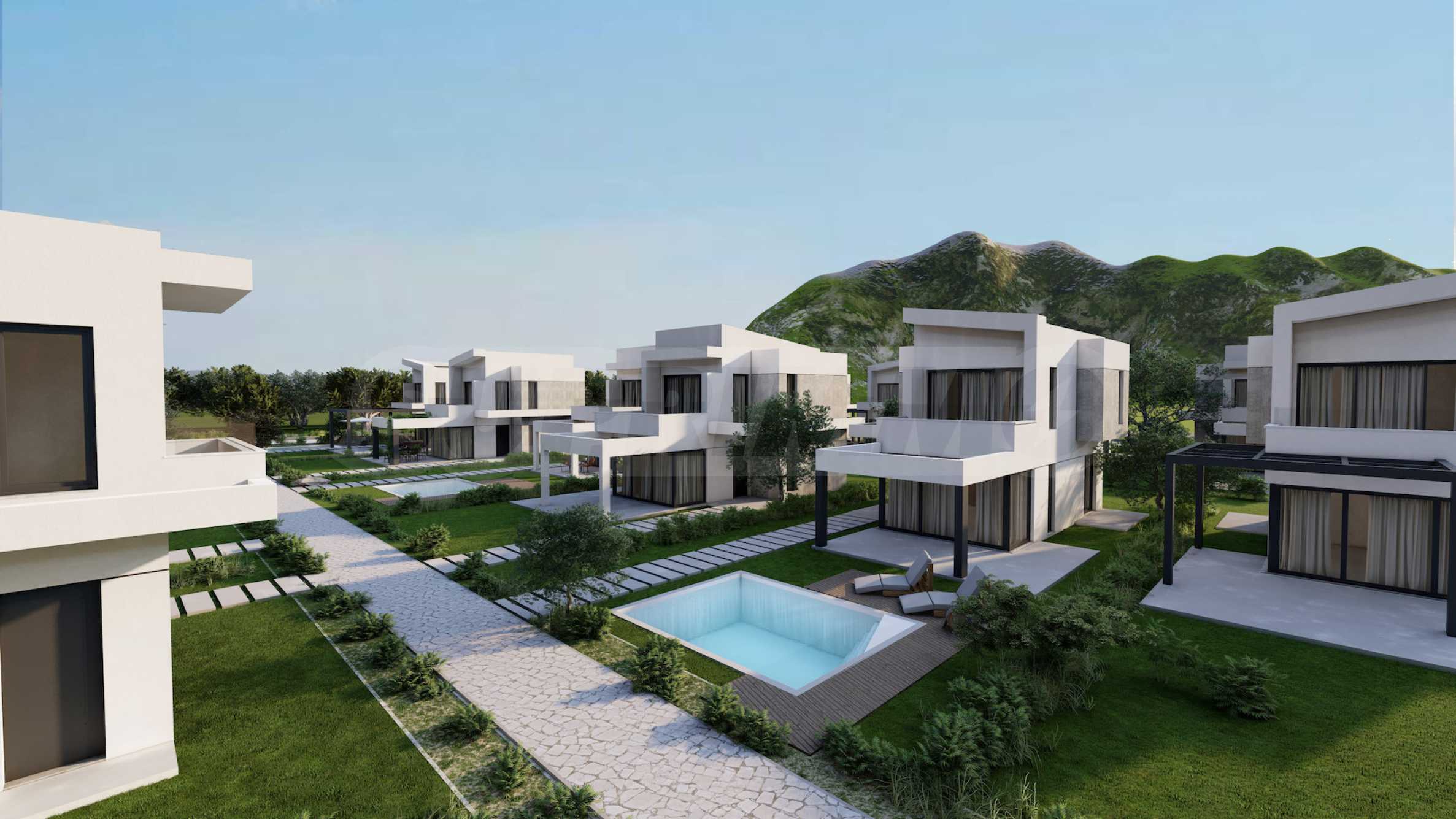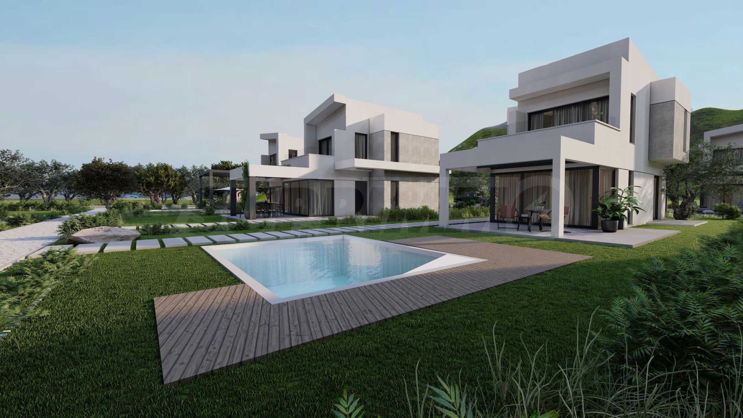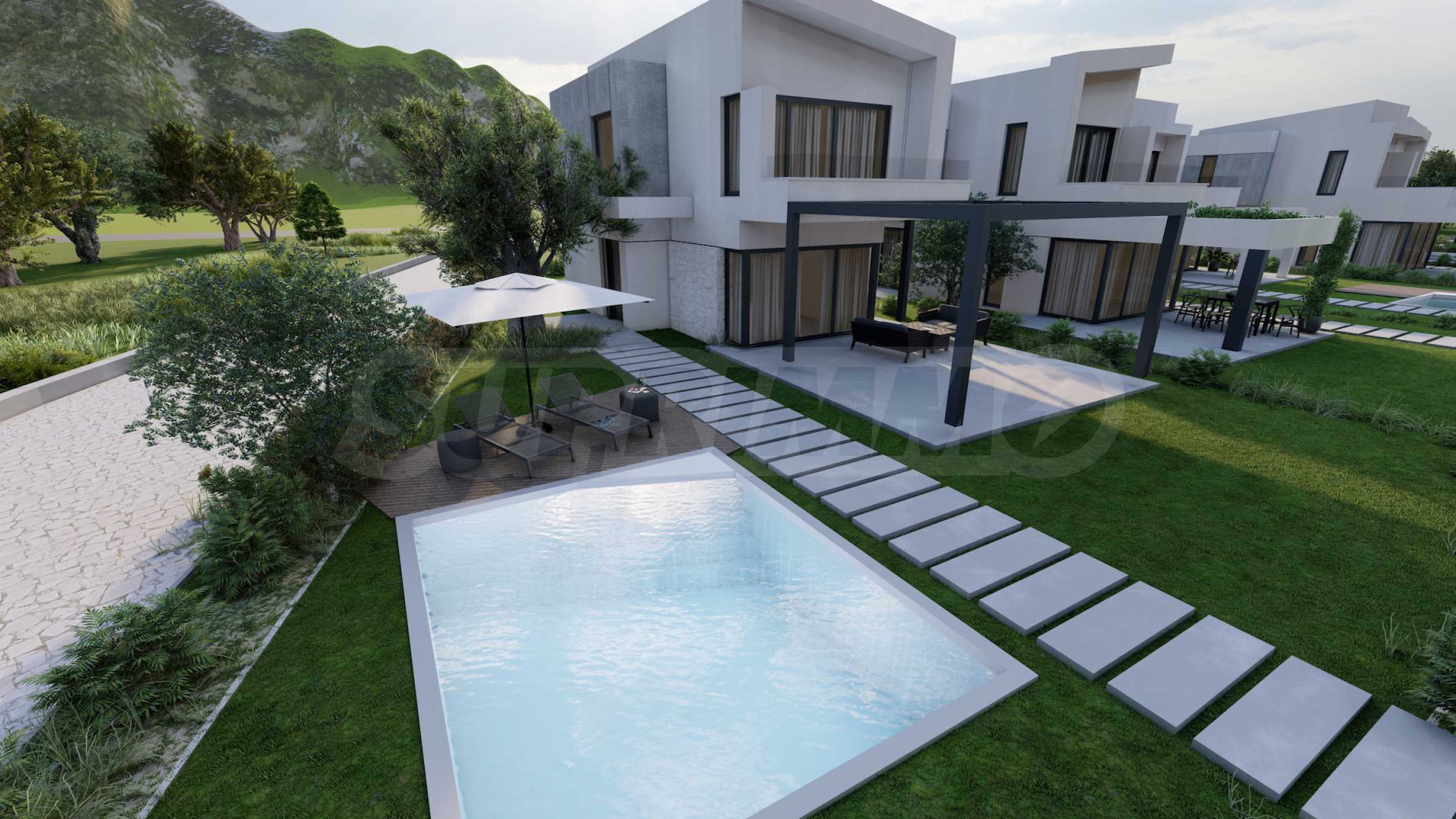 Комплекс состоит из 20 отдельных вилл на 2 уровнях, площадью от 85,93 м2 до 121,17 м2. Фасад тщательно продуман, с прямыми линиями и декоративными элементами, что придает всему комплексу современный и одновременно вневременной вид. Планировка включает просторные и светлые гостиные, две или три спальни и три ванные комнаты, гарантируя необходимый покой и уединение для всех жильцов. Все дома продаются «под ключ», с входными и внутренними дверями, напольным покрытием, освещением, встроенными кухнями и ванными комнатами. Кроме того, инвесторам предлагается возможность добавления частного открытого бассейна.