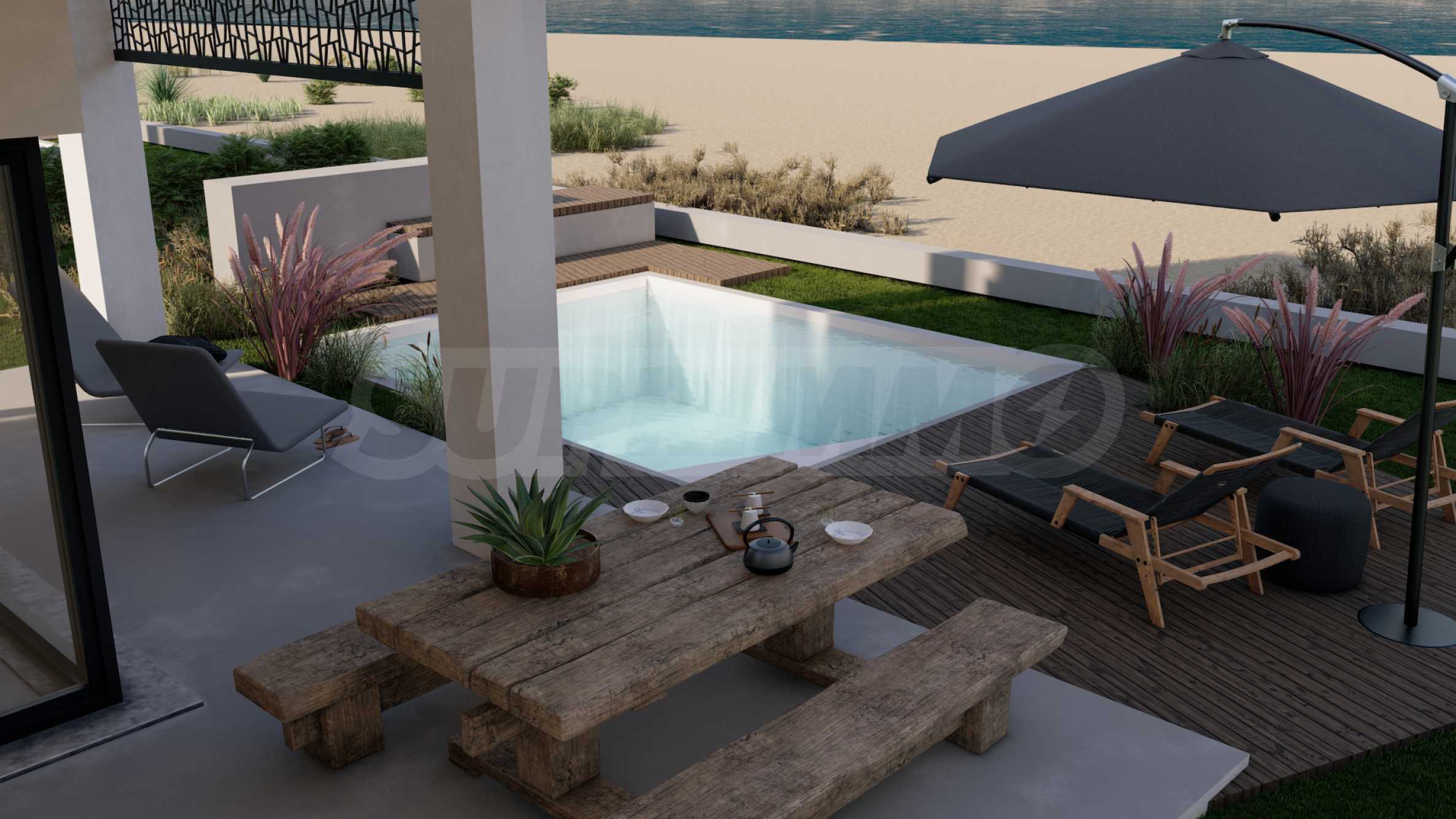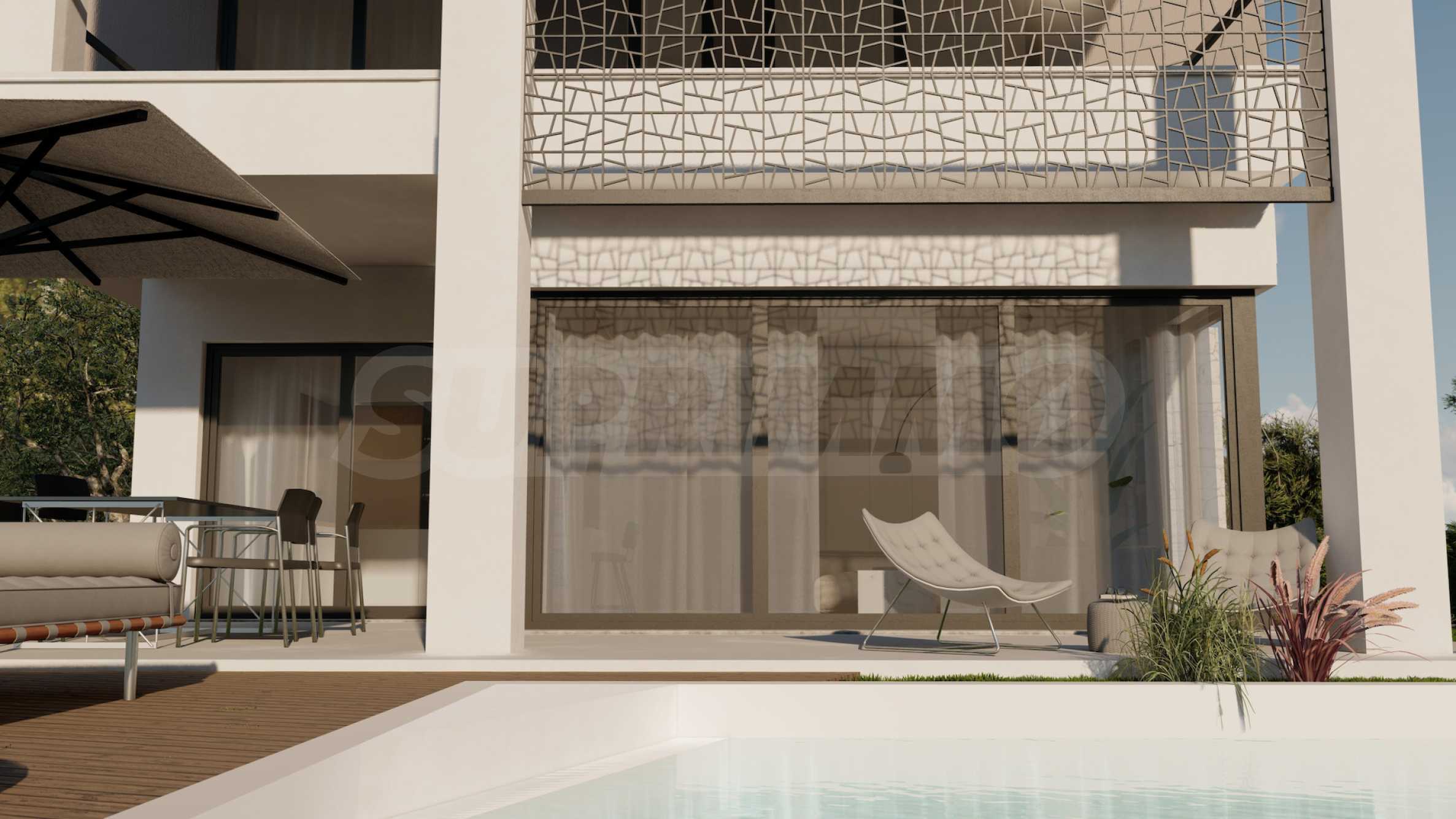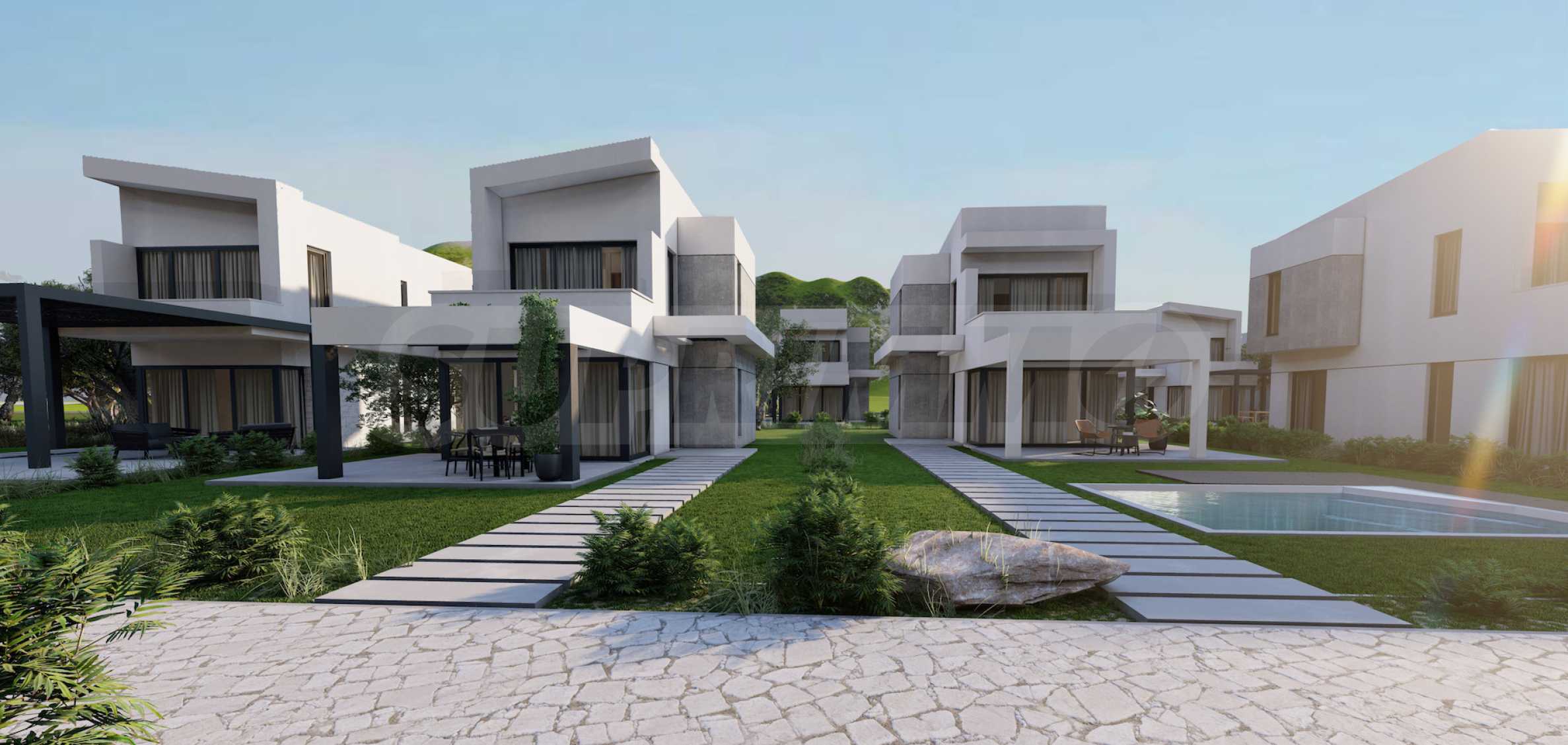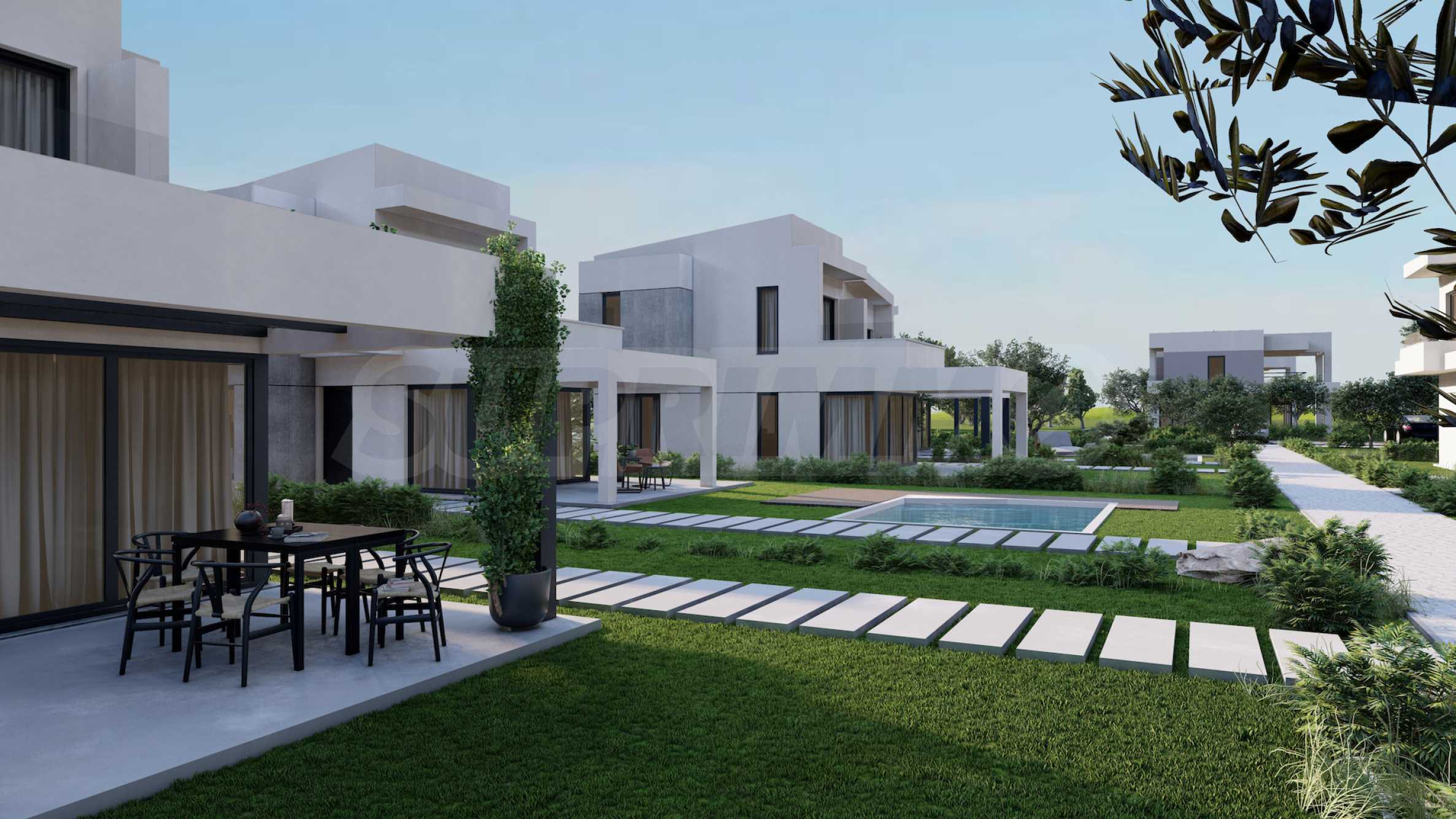 Комплекс состоит из 20 отдельных вилл на 2 уровнях, площадью от 85,93 м2 до 121,17 м2. Фасад тщательно продуман, с прямыми линиями и декоративными элементами, что придает всему комплексу современный и одновременно вневременной вид. Планировка включает просторные и светлые гостиные, две или три спальни и три ванные комнаты, гарантируя необходимый покой и уединение для всех жильцов. Все дома продаются «под ключ», с входными и внутренними дверями, напольным покрытием, освещением, встроенными кухнями и ванными комнатами. Кроме того, инвесторам предлагается возможность добавления частного открытого бассейна.