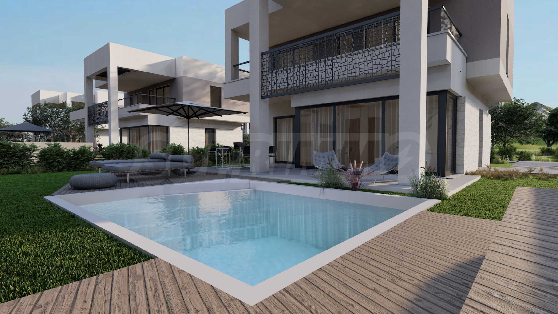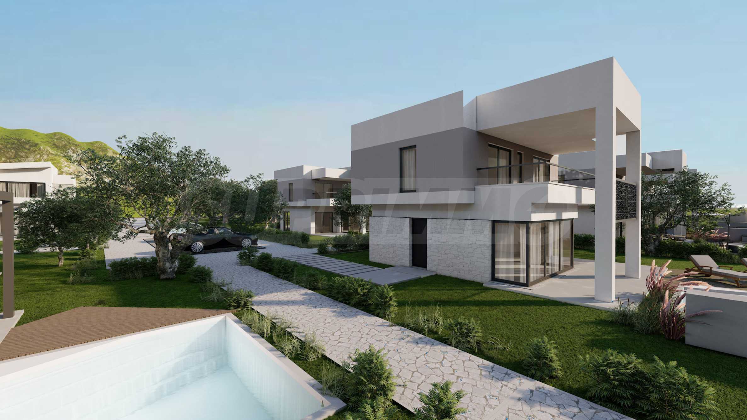 Комплекс включает 20 отдельных вилл, расположенных на двух уровнях, площадью от 85,93 кв. метров до 121,17 кв. метров. Архитектурная концепция выполнена в современном стиле, с чистыми линиями и тщательно подобранными декоративными элементами, которые придают проекту элегантность и вневременной характер.