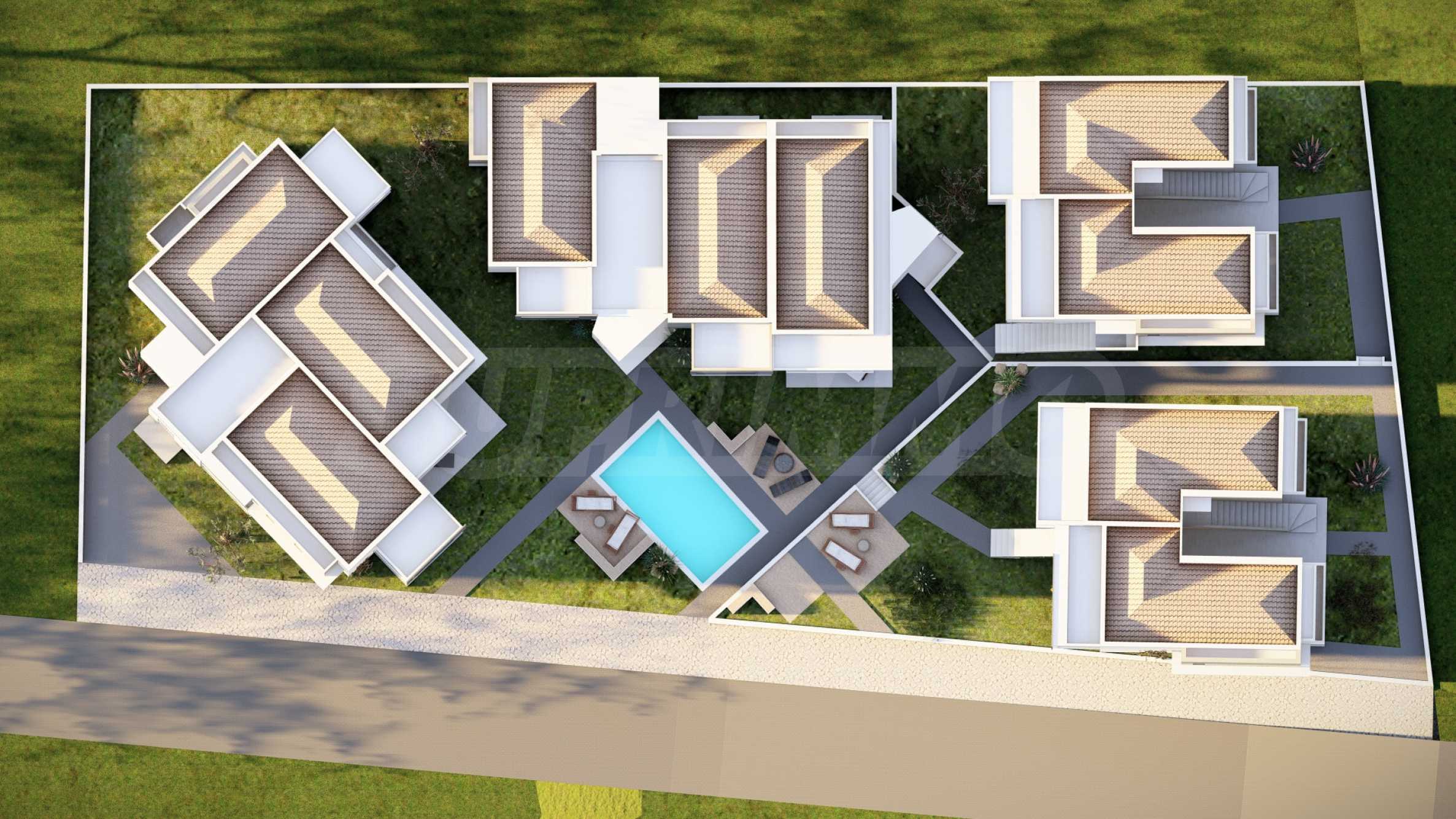 Aura — это бутик-комплекс, состоящий из четырех элегантных зданий, в которых расположены 18 квартир и одна двухуровневая квартира. Проект разработан с вниманием к каждой детали и с учетом гармонии архитектуры и природы. Фасад впечатляет чистой геометрией, прямыми линиями и тщательно подобранными декоративными элементами, которые придают ему неповторимый характер и выделяют его на фоне окружающего ландшафта.