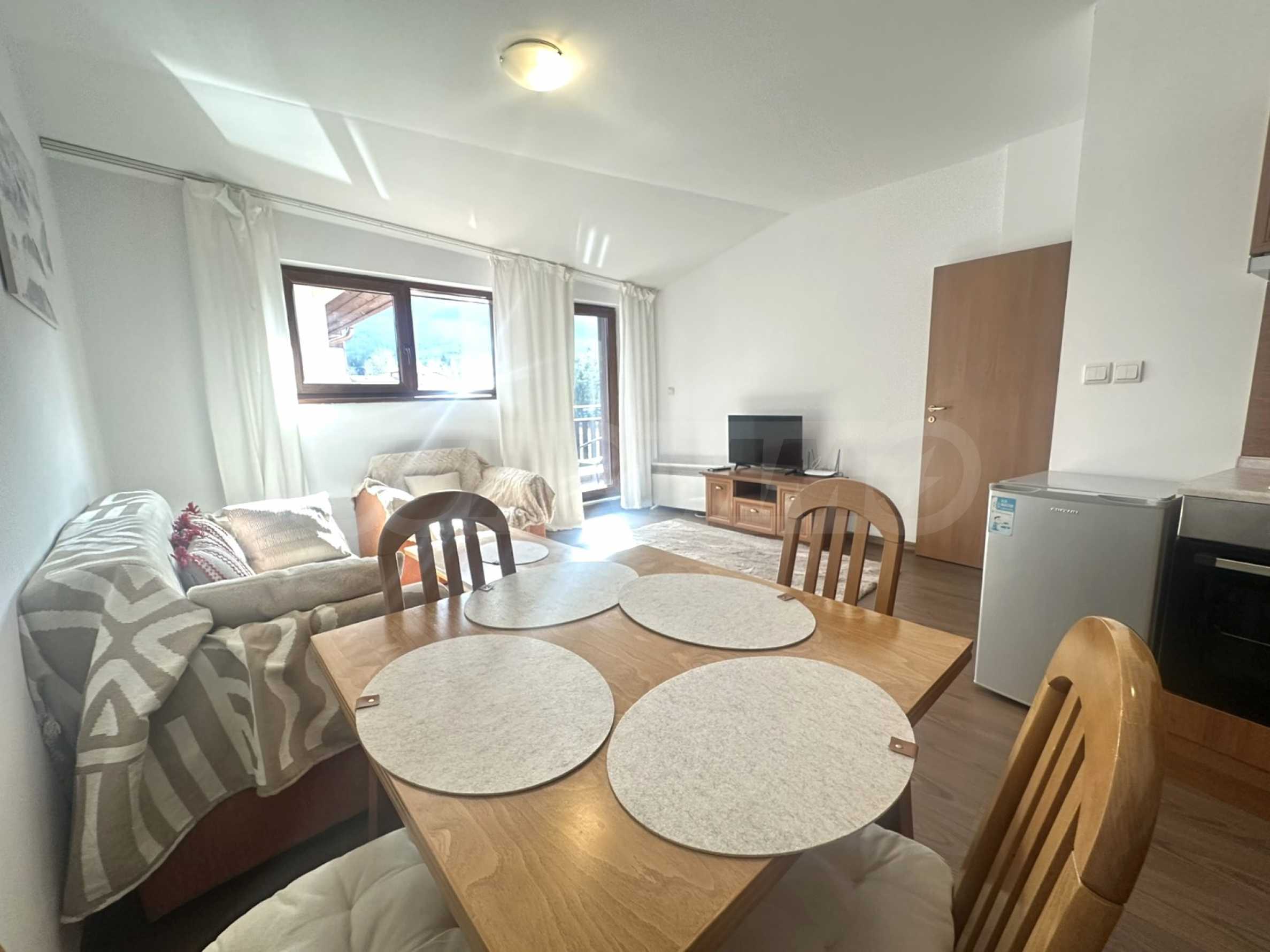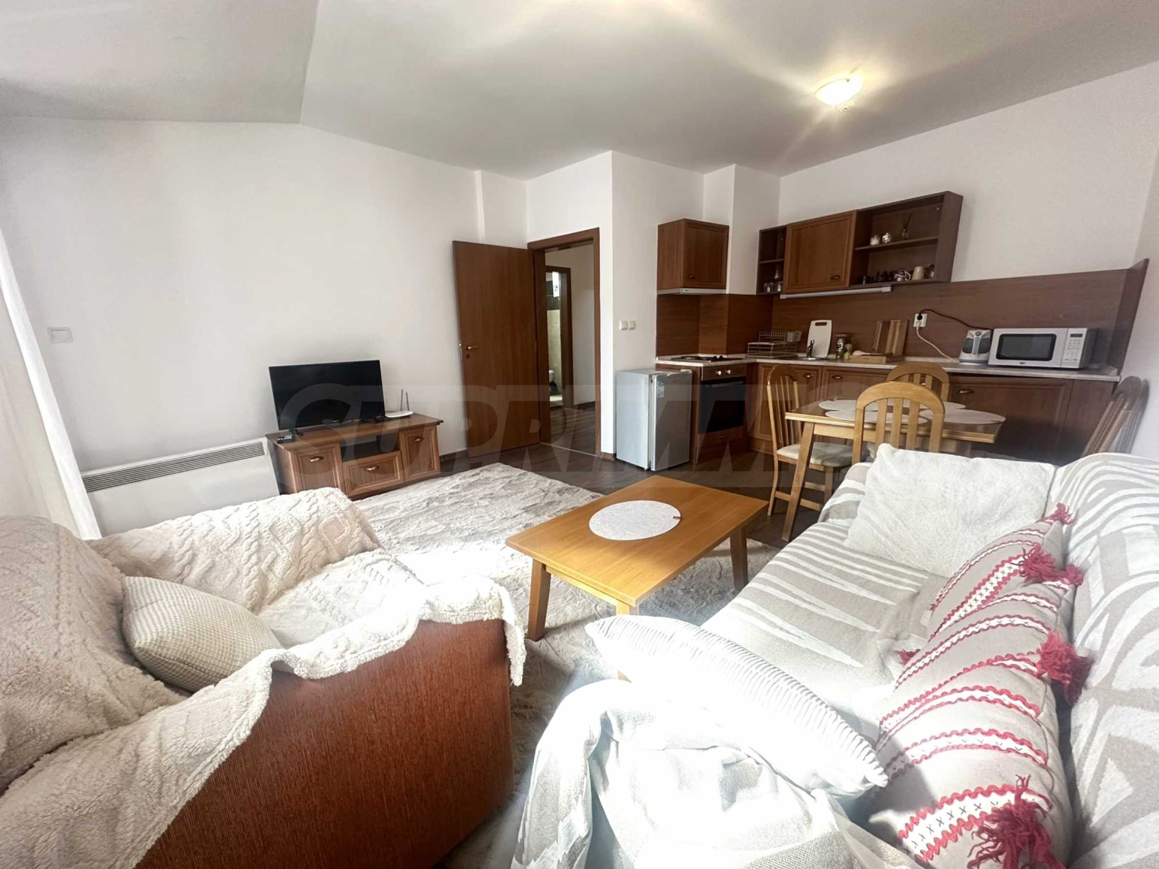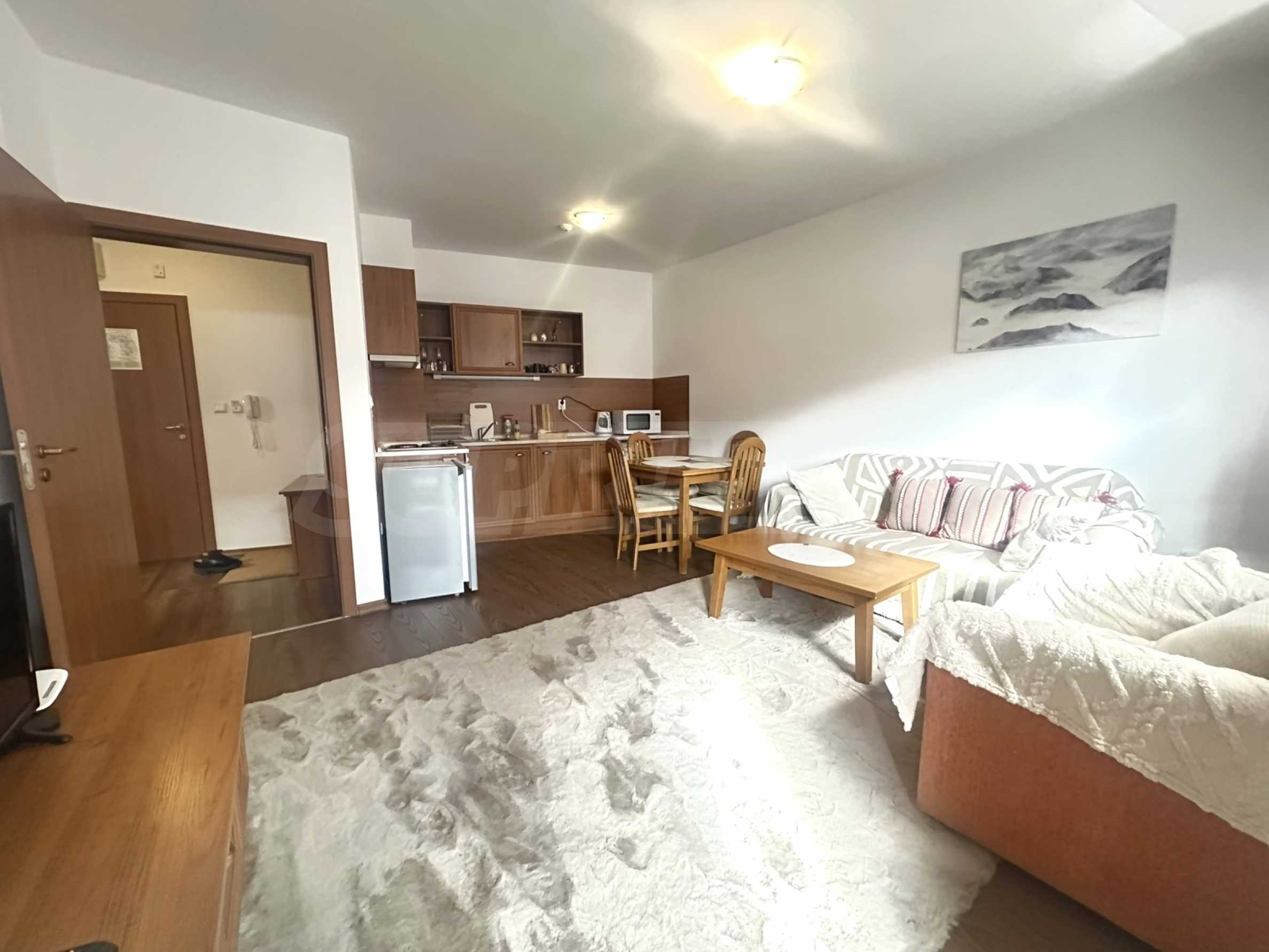 Представляем вашему вниманию светлую и функциональную двухкомнатную квартиру в жилом доме с видом на горы Пирин.