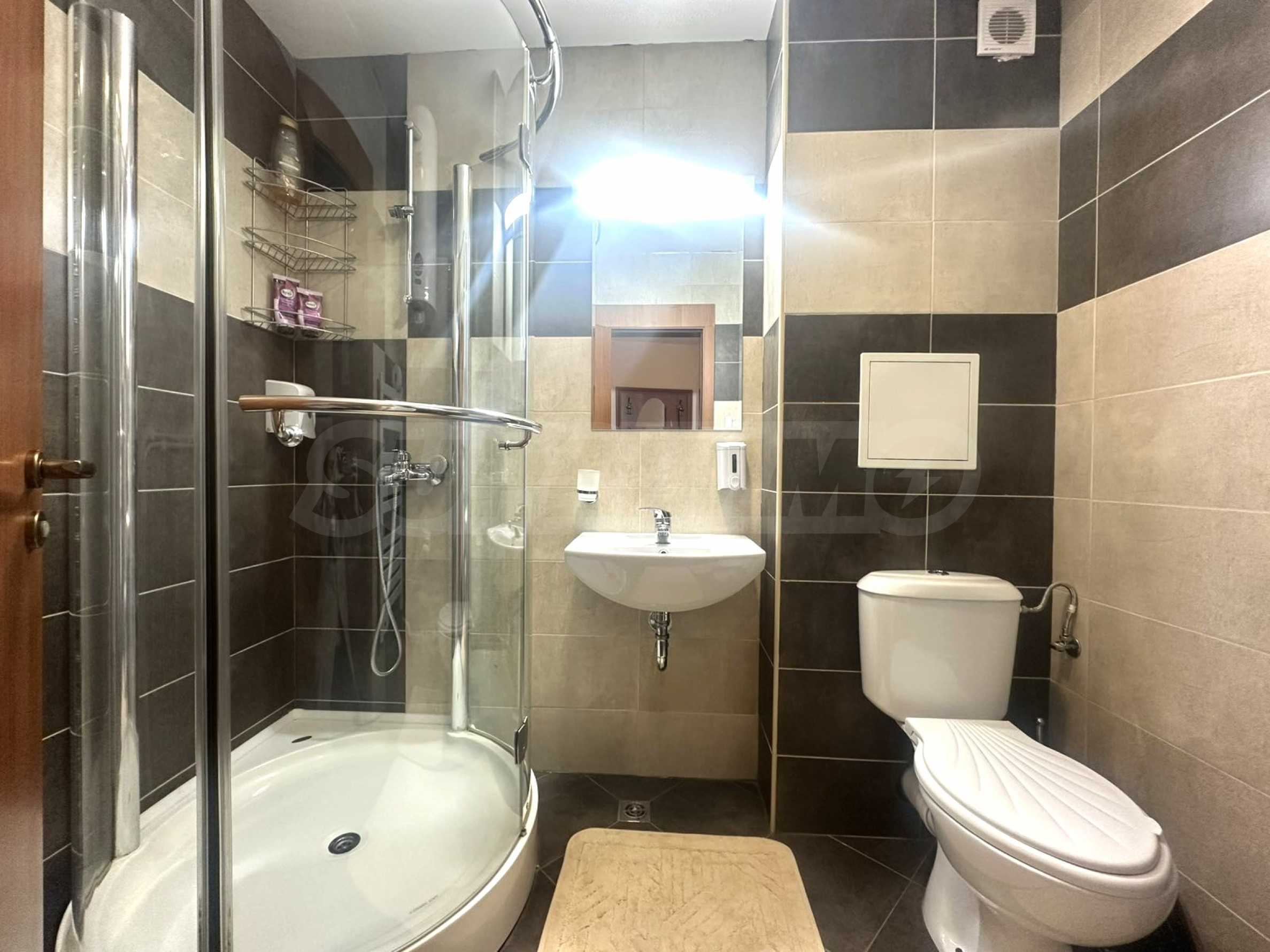• Ванная комната с душевой кабиной и туалетом.