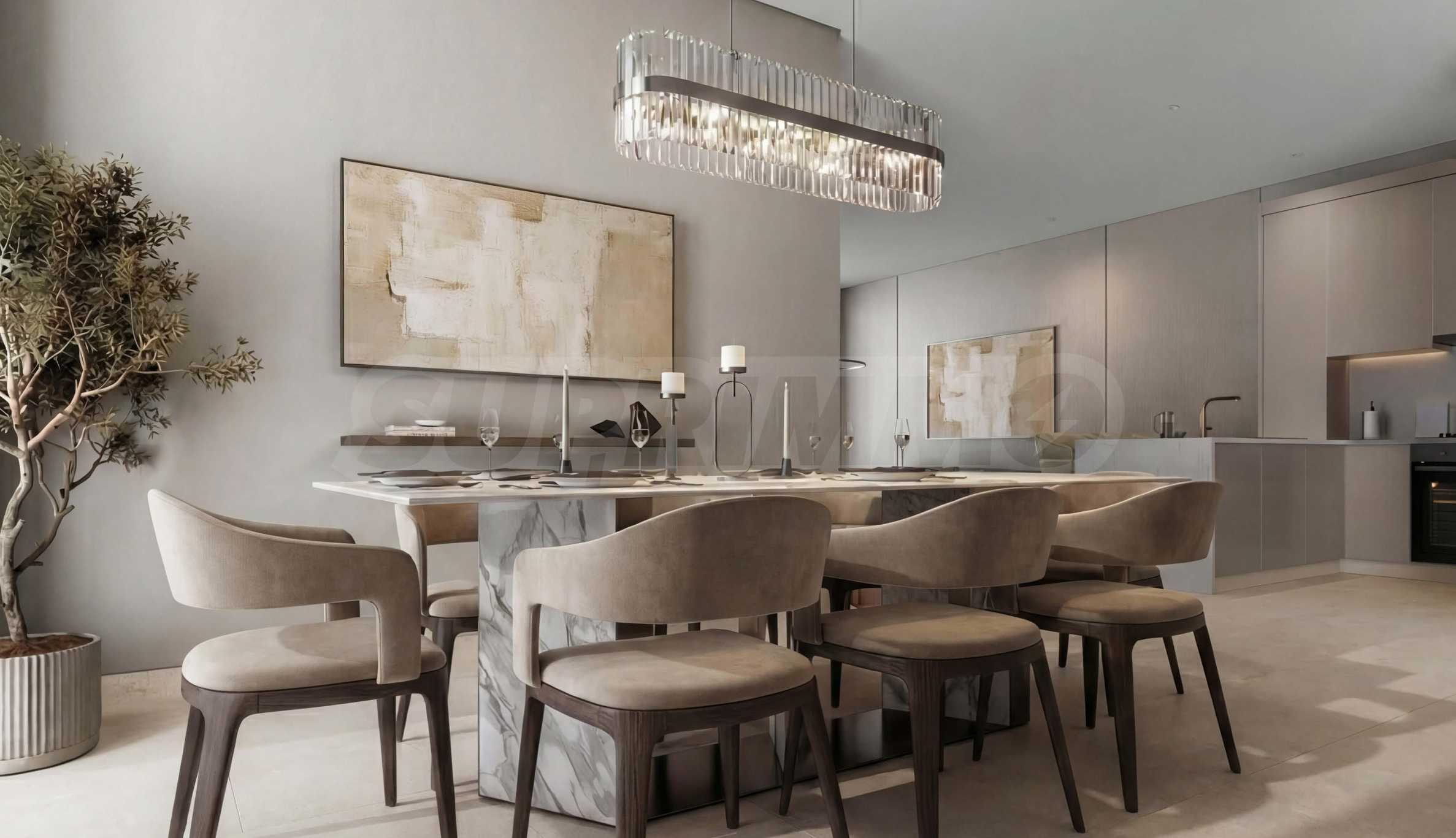 В апартаментах стильные и просторные гостиные, гармонично объединенные со столовыми, а кухни отделены от общих зон для большего комфорта и практичности. На первом этаже, помимо гостиной, находится дополнительная комната, которую можно использовать по своему усмотрению — как кабинет, библиотеку или игровую комнату.