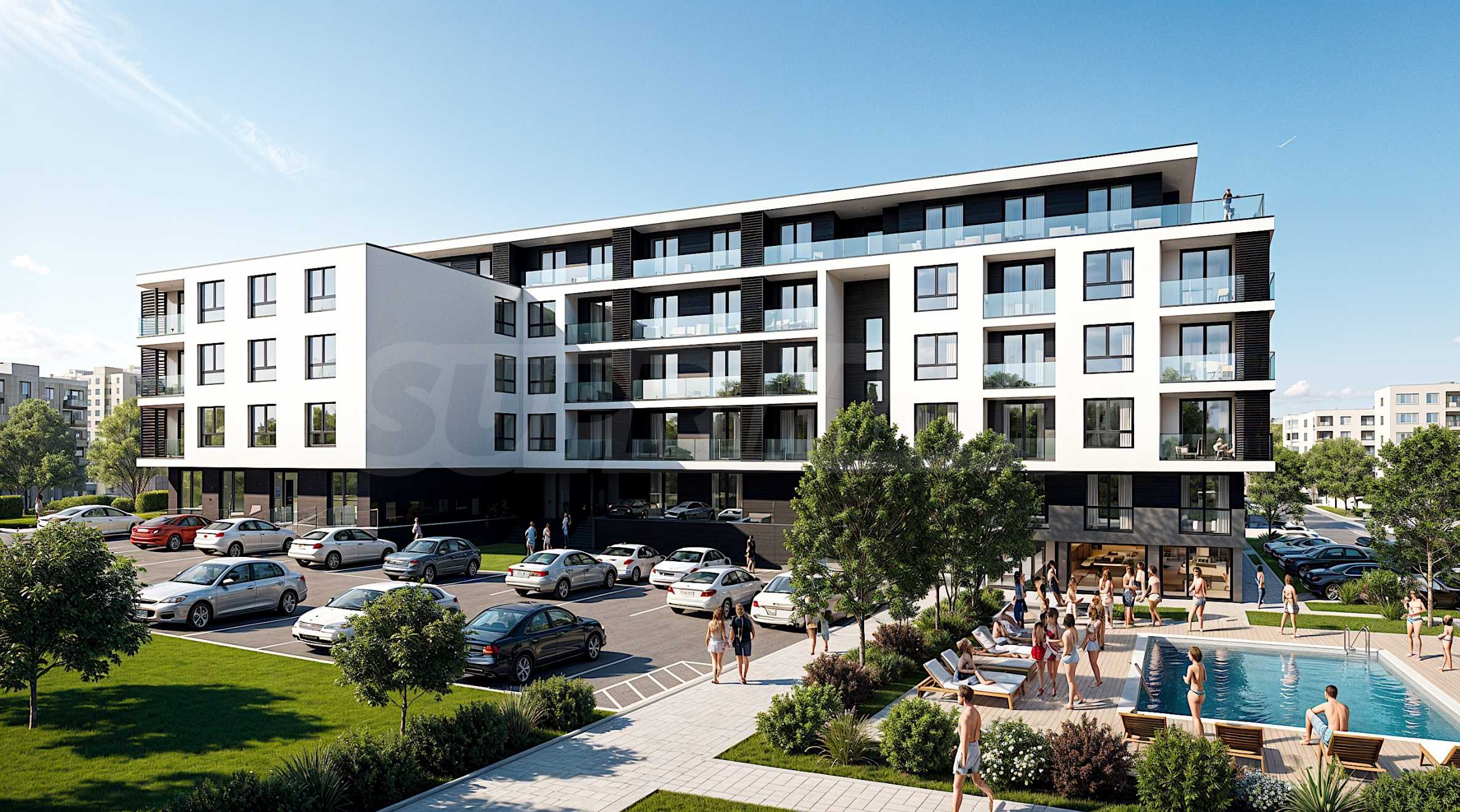 Представляем вашему вниманию квартиры в новом жилом комплексе с бассейном и инфраструктурой, расположенном в самом сердце Старого города Царево, в квартале «Василико». Комплекс находится в верхней части района, в непосредственной близости от пляжа Нестинарка, центра города, ресторанов, парков, продуктовых и торговых сетей.