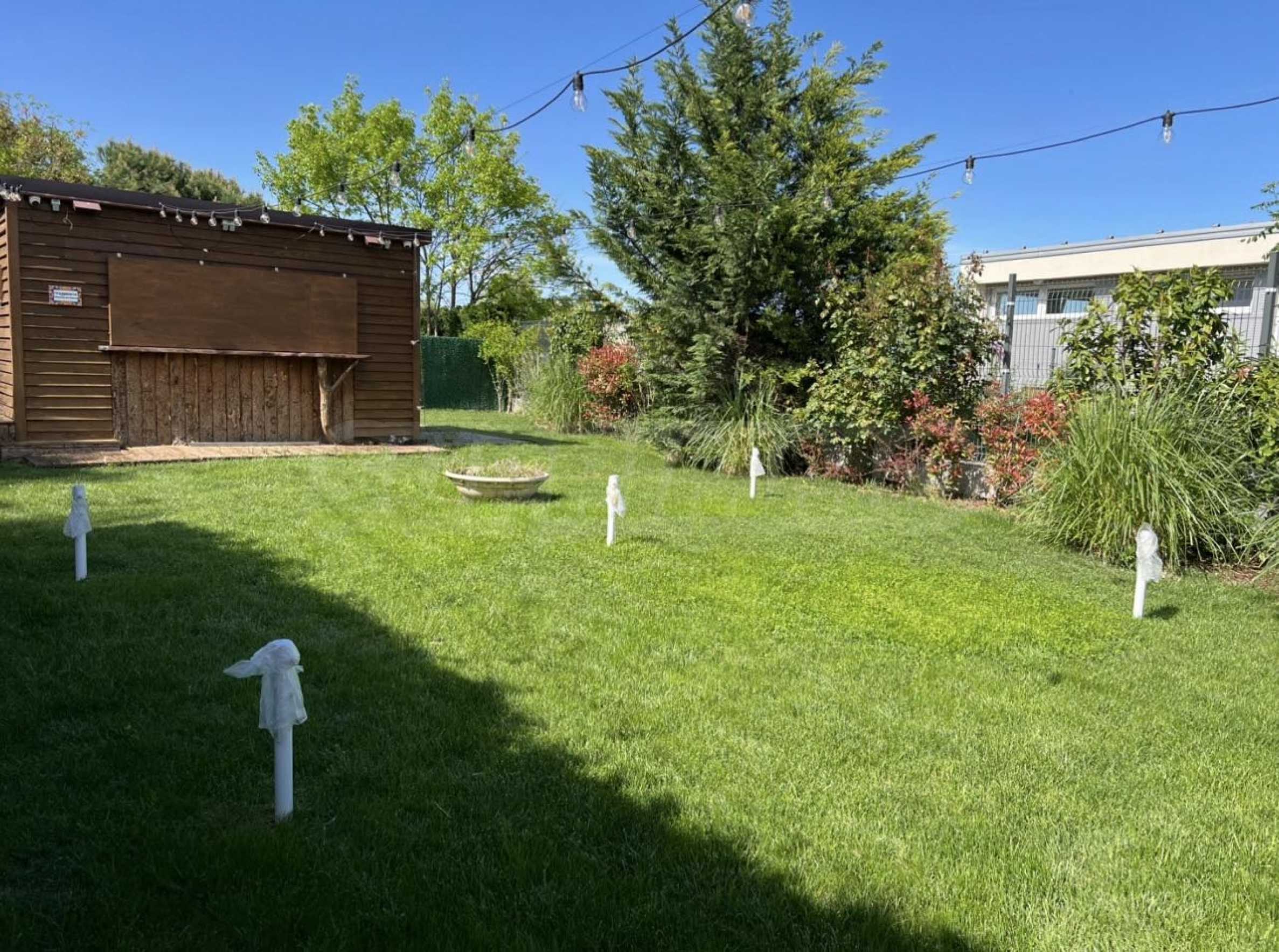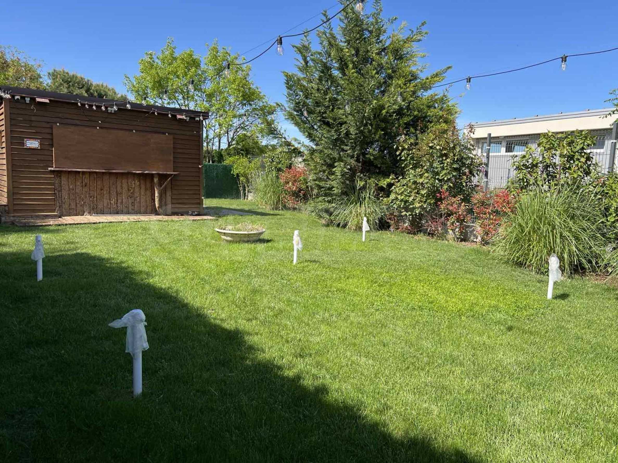 Двор благоустроен и ухожен, есть возможность обустроить садовую зону со скамейками, подходящую как для работы днем, так и вечером.