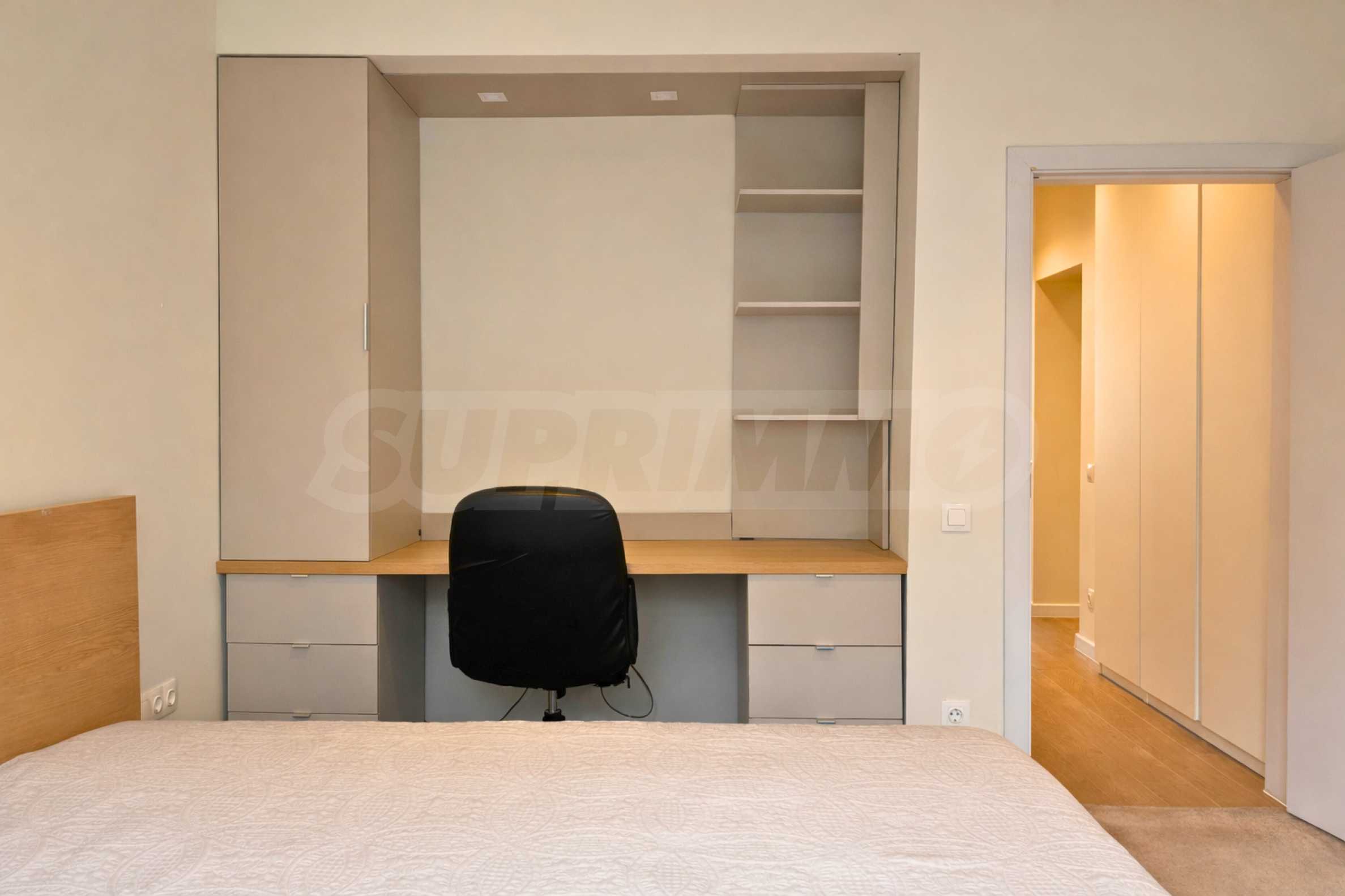 Спальни светлые и функциональные, с очень хорошо организованными шкафами и большим количеством места для хранения вещей в каждой комнате. В прихожей также предусмотрены практичные встроенные шкафы.