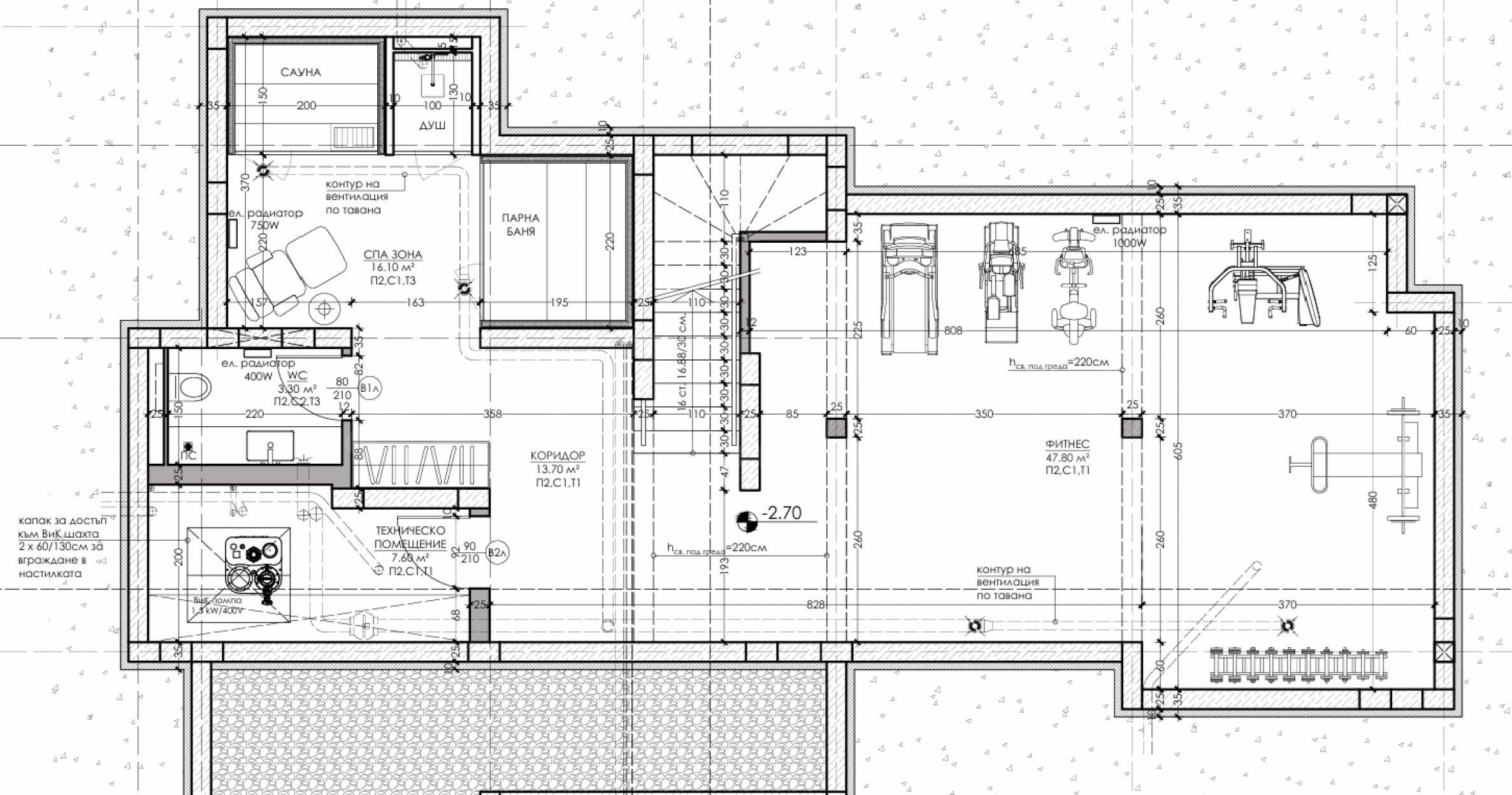 • Подземный уровень (115 кв. м, высота 3,20 м) – СПА-зона, фитнес-центр, винный погреб, ванная комната и возможность индивидуальной отделки;