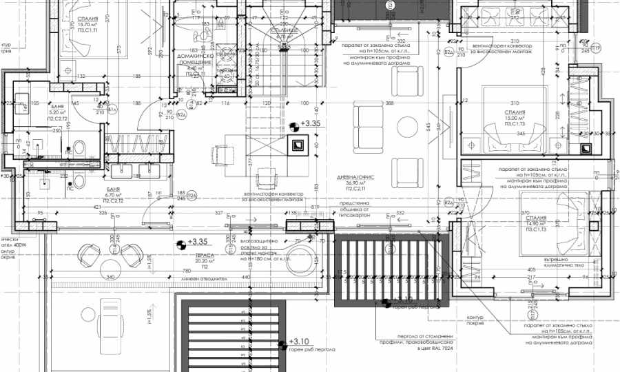• Второй этаж (164 кв. м) – 3 спальни, одна с собственной ванной комнатой, гардеробная, вторая гостиная, большая терраса с садом и панорамным видом;
