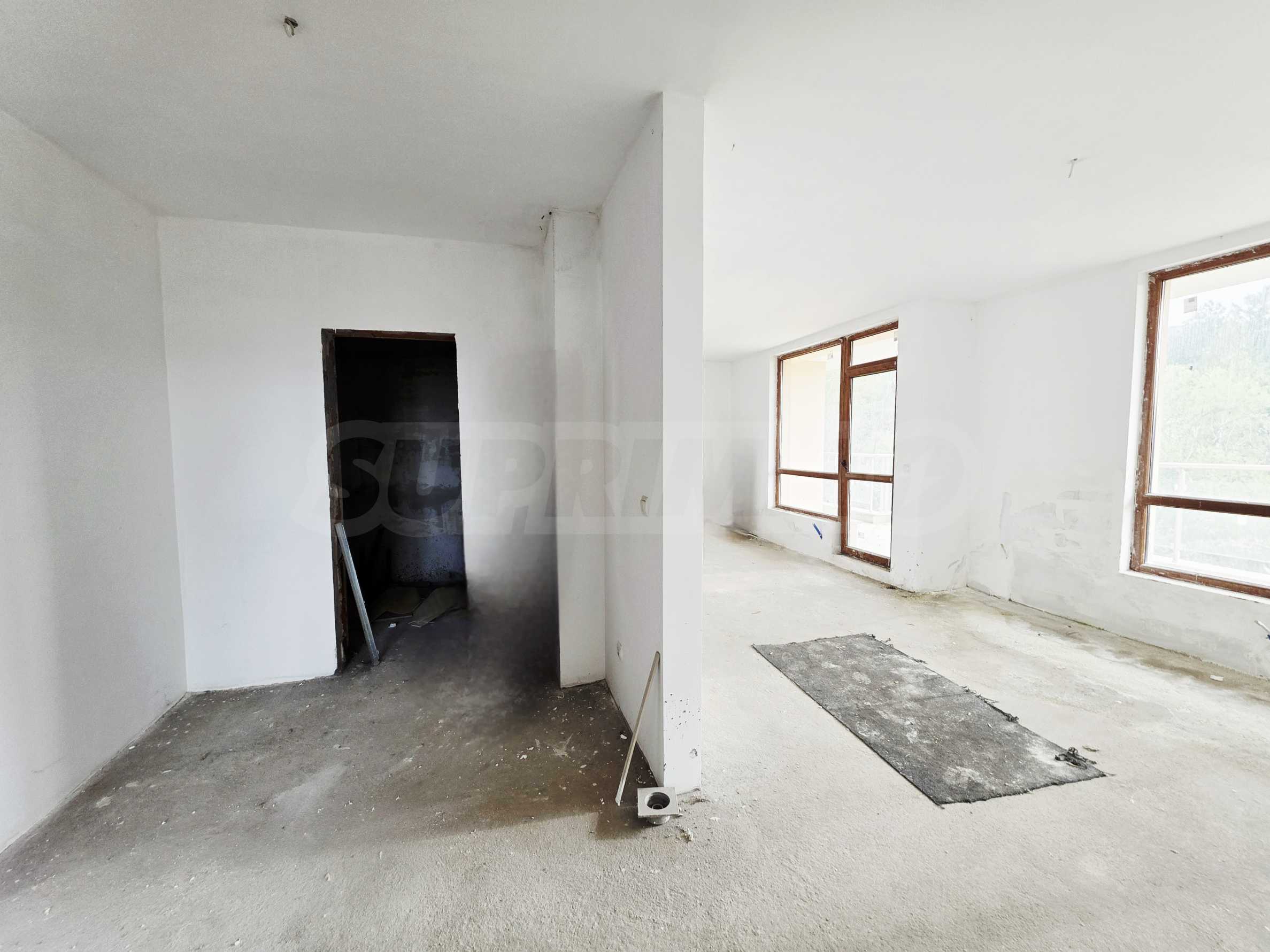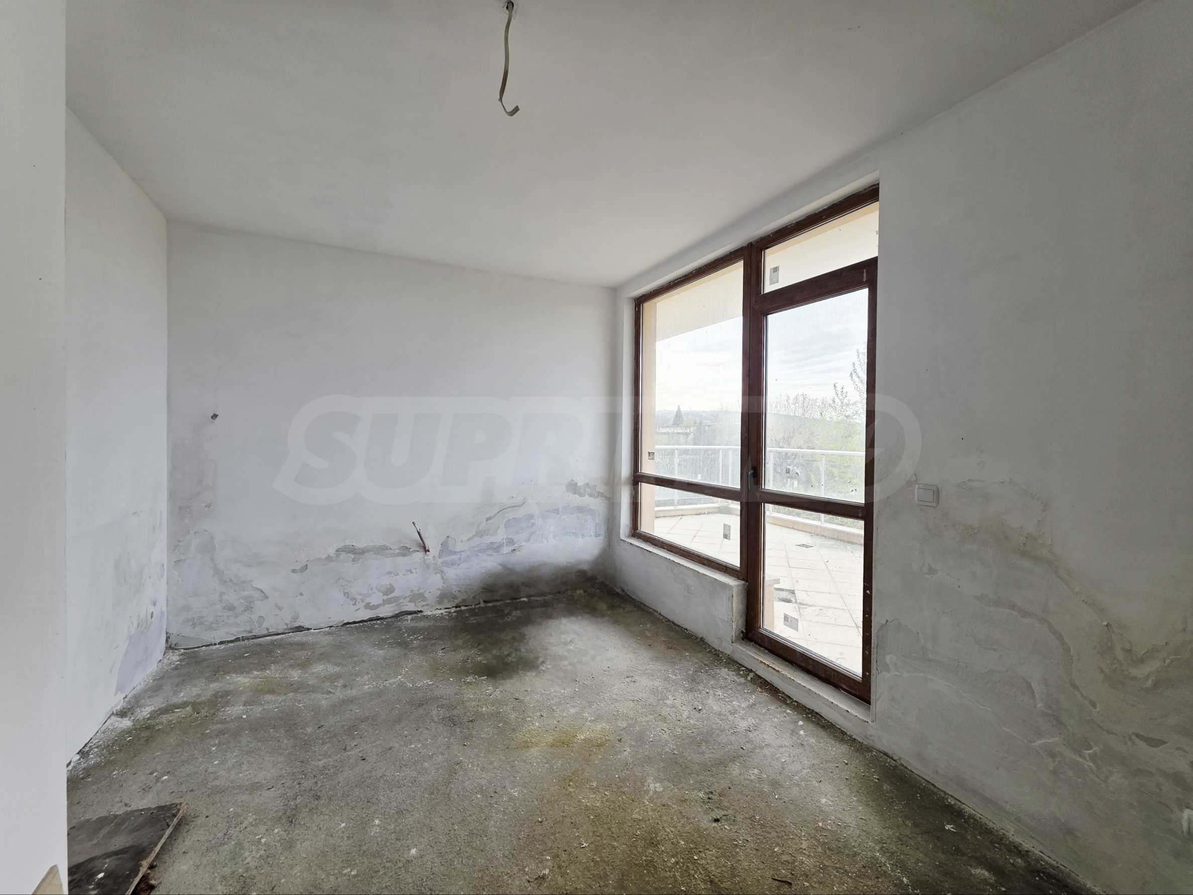 Квартира расположена на четвертом этаже из пяти в здании. Ориентация – запад/север. Общая площадь квартиры составляет 121 кв. метров, из которых полезная площадь застройки – 71,06 кв. метров. Квартира также имеет большую террасу, включенную в указанную площадь. Квартира предлагается в состоянии «штукатурка и стяжка» с установленными немецкими ПВХ-панелями.