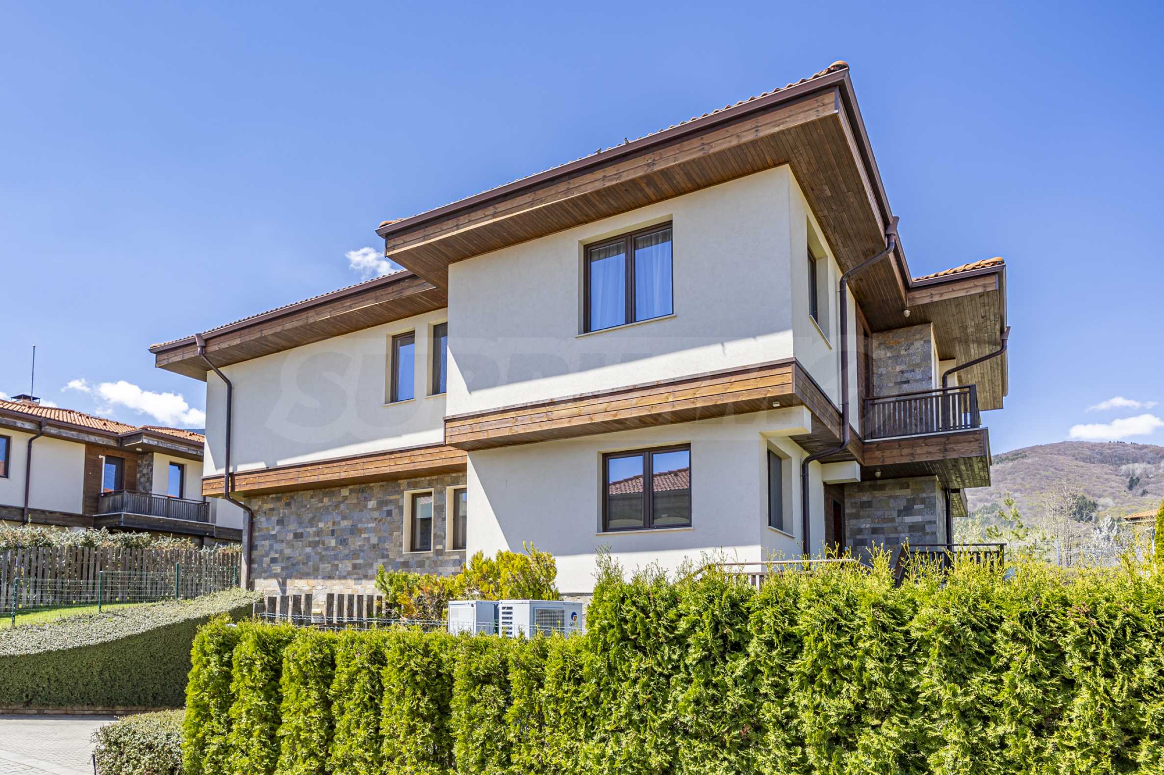 Комплекс состоит из 17 отдельных домов, расположенных в самой высокой части Бистрицы, прямо у начала парка Витоша — это место создает ощущение горного уединения и обеспечивает высокий уровень жизни. Архитектурная концепция вдохновлена болгарским стилем Возрождения, интерпретированным в современном ключе — с эркерами, натуральным камнем и деревом, которые добавляют характер и уют.