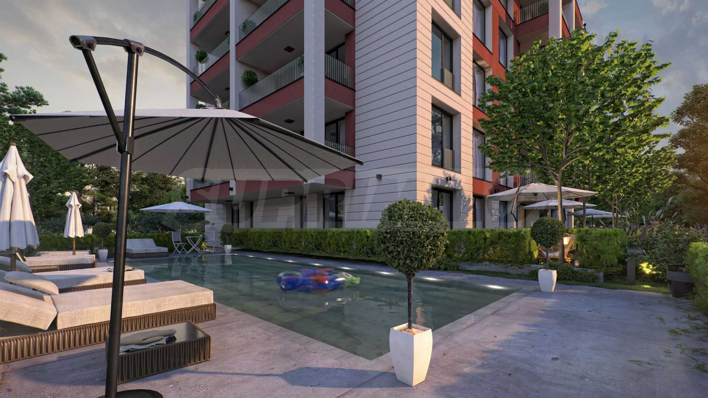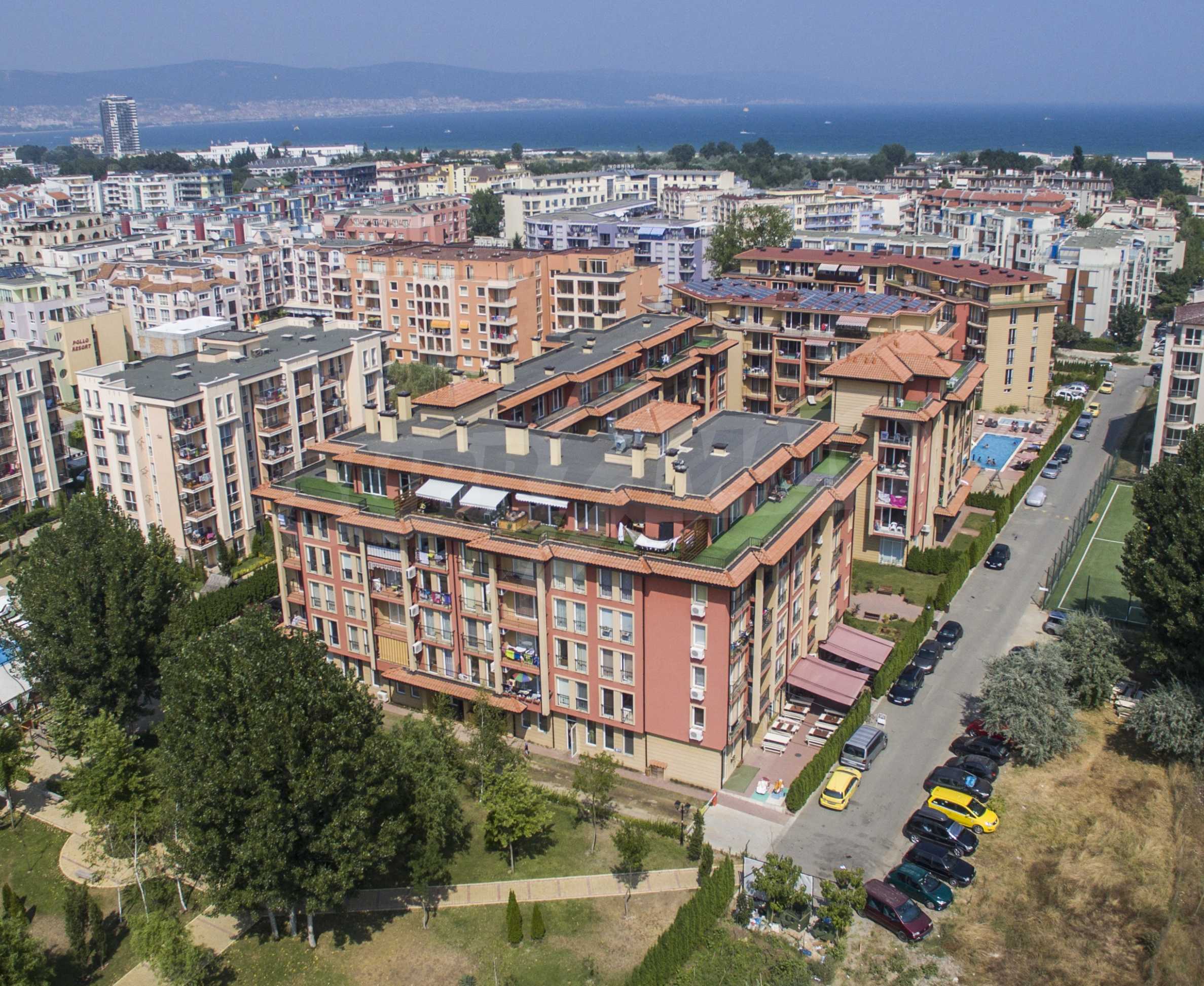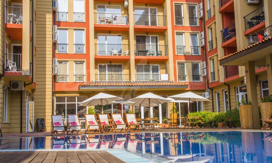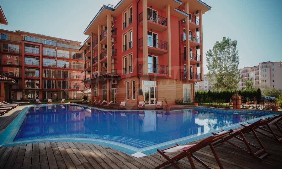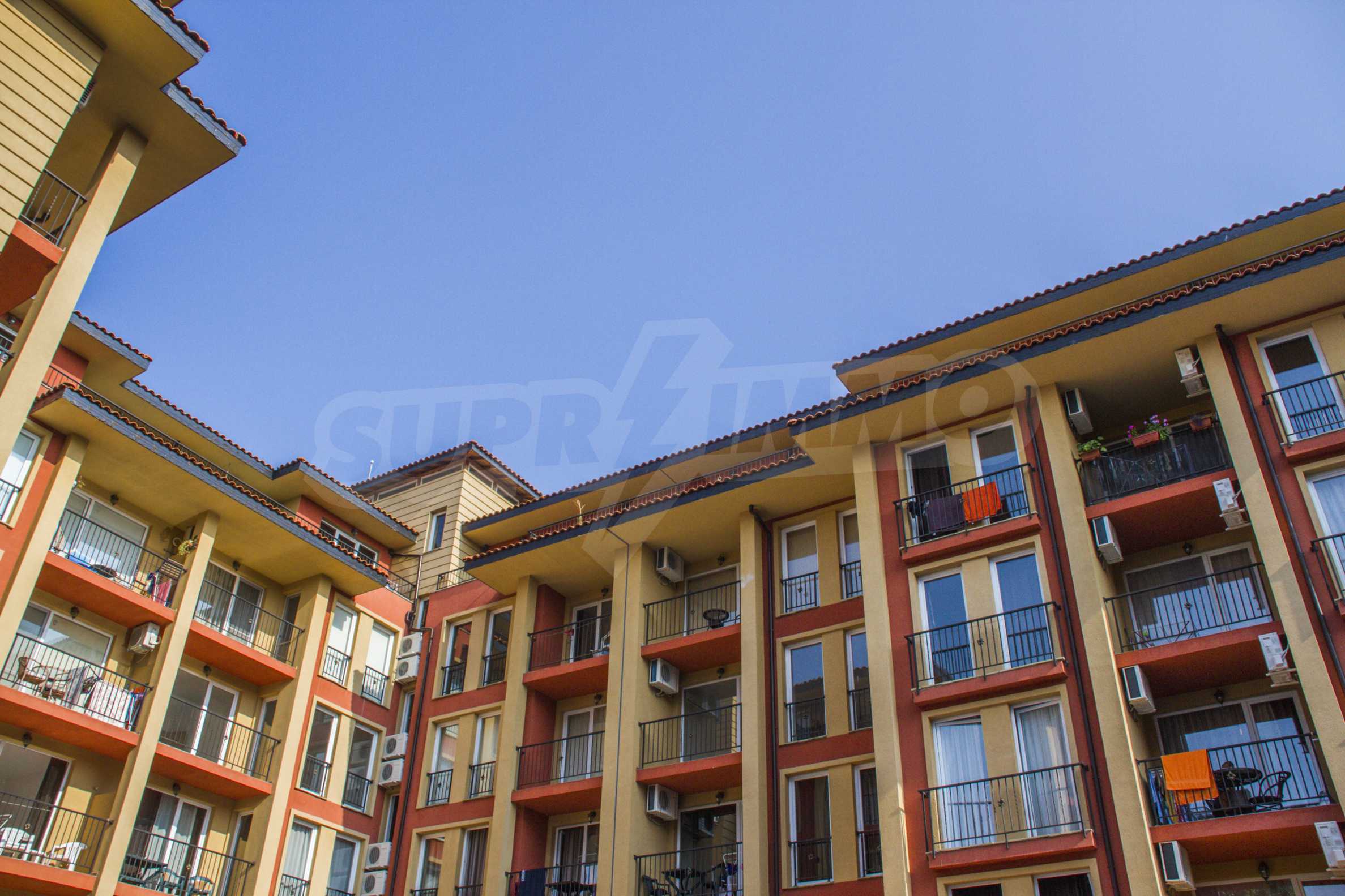 Ориентация комплекса на юг, при этом вид из окон на бассейн и спортивную площадку. В комплексе есть много дополнительных удобств, которые сделают ваше пребывание здесь приятным.
