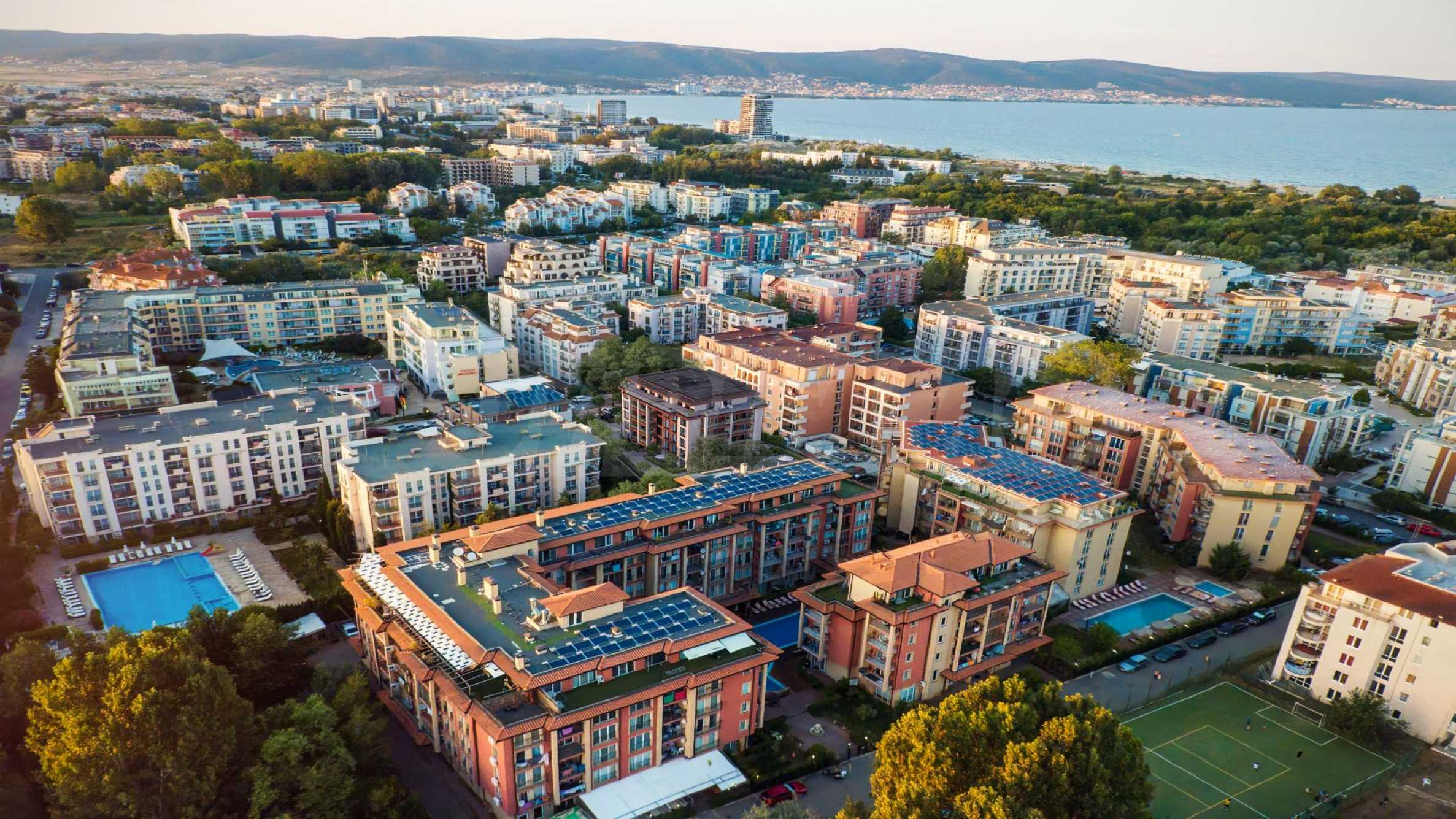 Солнечный Берег — самый популярный морской курорт на южном побережье Черного моря, который находится в 35 км от аэропорта в Бургасе. Пляж здесь длиной восемь километров и достигает ширину до 60 метров, песок мелкий и золотистый, а море - спокойное и чистое. Летний сезон в районе длится с начала мая до конца сентября.