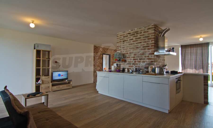 • Кухня и столовая: встроенные кухонные шкафы, духовой шкаф или микроволновая печь, 2-х конфорки, холодильник и раковина, выходы для воды, каналицации и электропроводка на кухне.