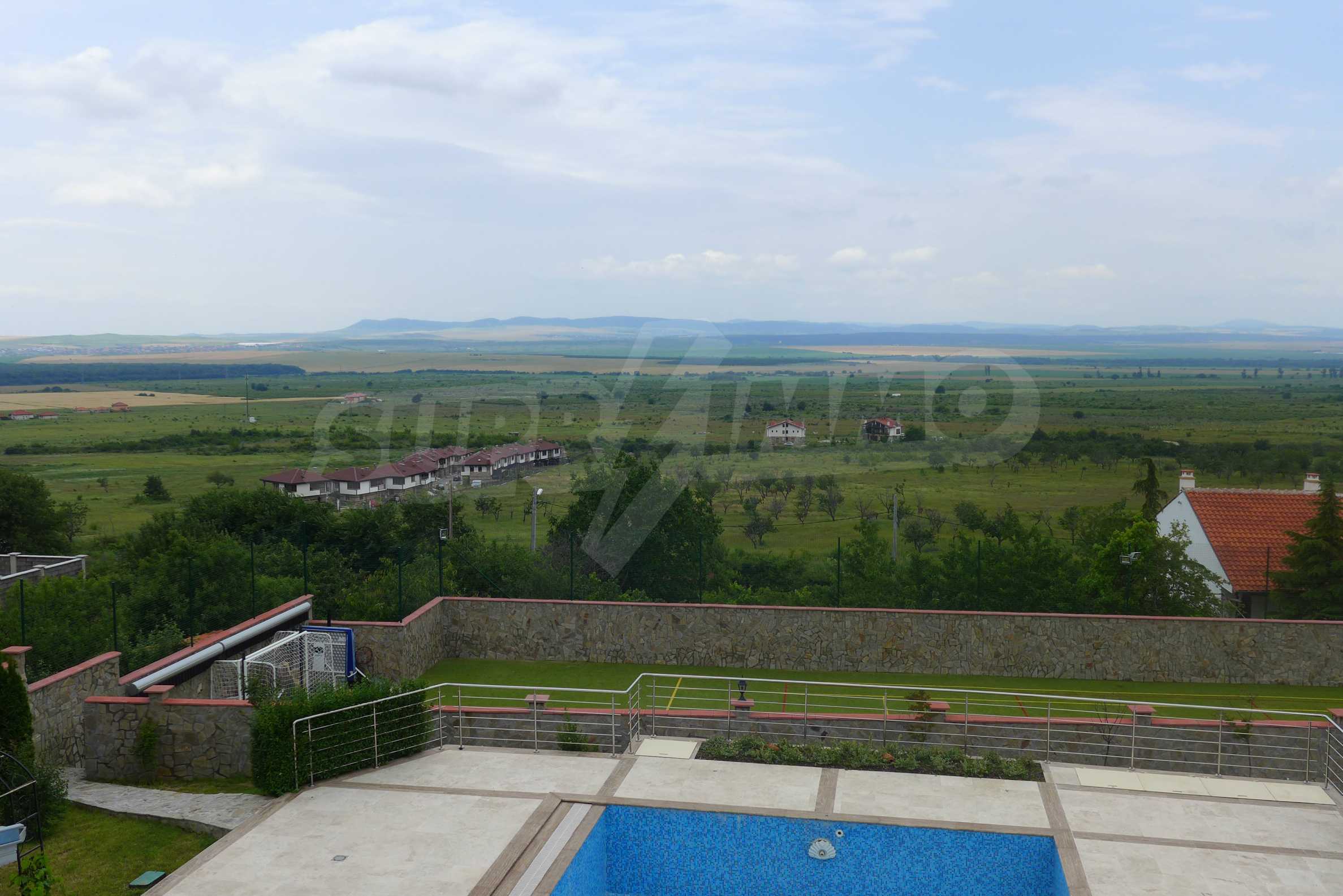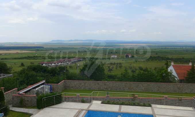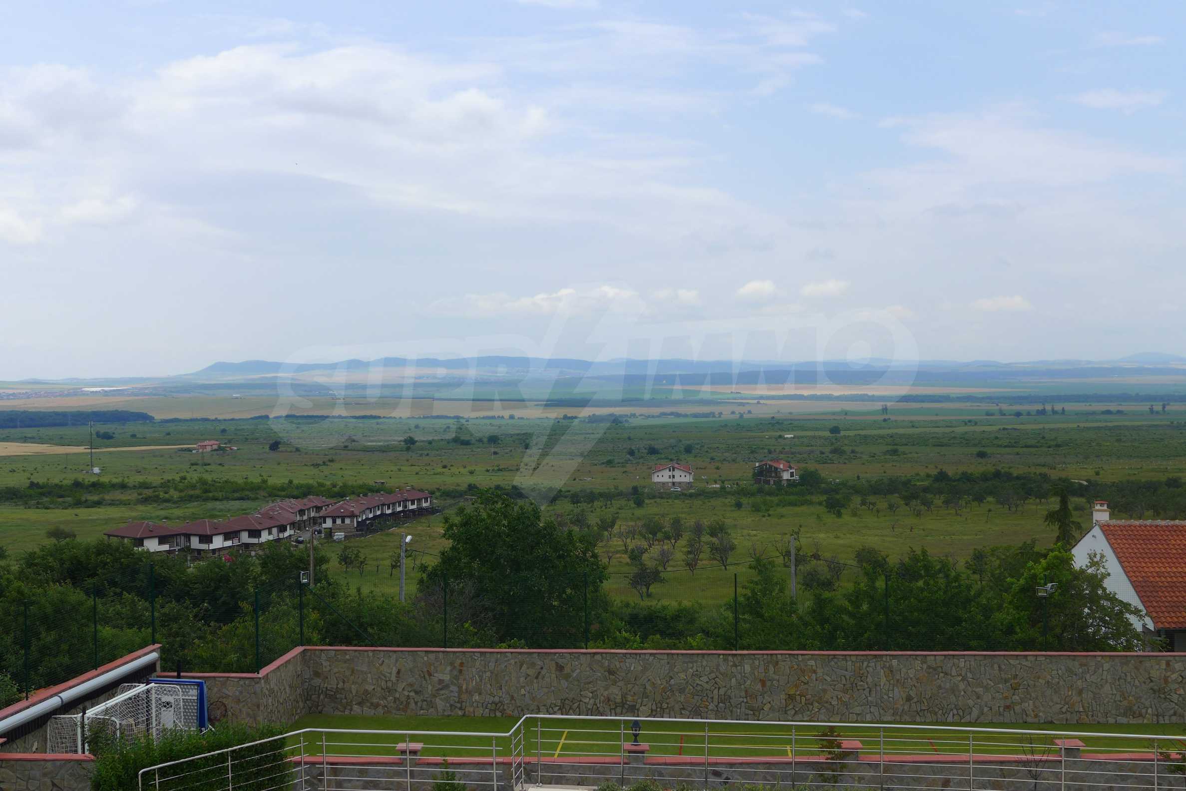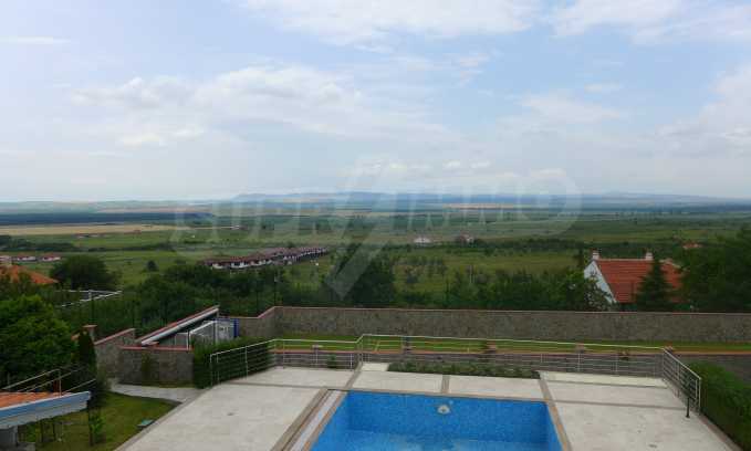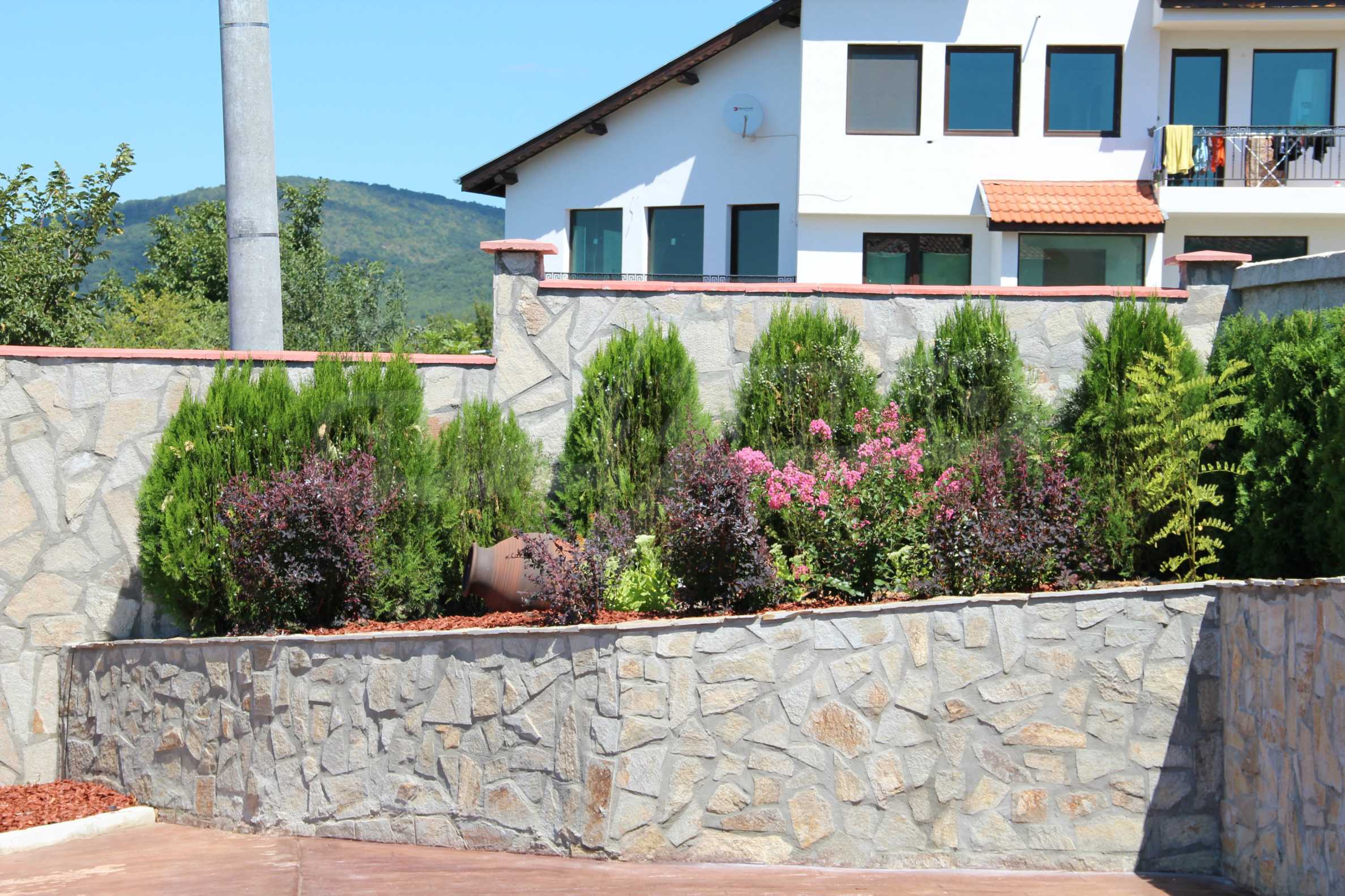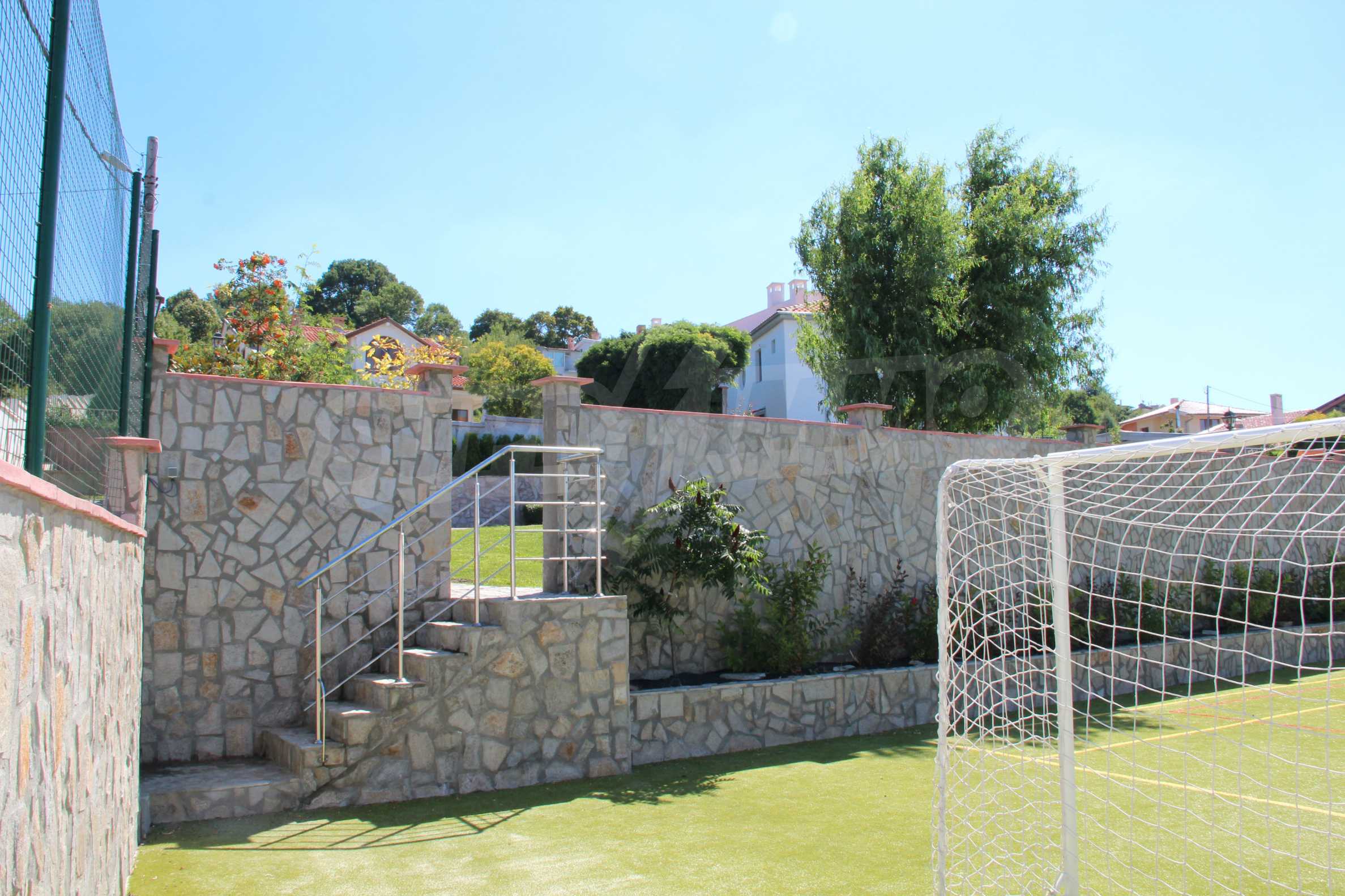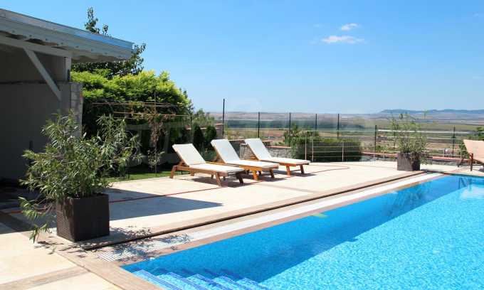Дом состоит из кухни с гостиной, коридора, ванной комнаты с туалетом, веранды (на первом этаже), четырех спален, двух ванных комнат с туалетом и балконов ( на втором этаже). Недвижимость располагает двором (1000 кв.м.), где находятся: парковка на 5 машин, летняя кухня с барбекю, бассейн с подогревом и джакузи, теннисный корт и футбольное поле, много зелени и цветов в ухоженном саду. Отопление кондиционером. Ламинированный пол, межкомнатные двери, окна пвх, паркетный пол и терракотовый пол имеются в предлагаемой недвижимости. Недвижимость включает следующую мебель и оборудование: ванна, встроенная кухня, вытяжка, духовка, кондиционер, мебель, оборудованная ванная комната, телевизор, телефон и холодильник. Из основных коммуникаций обеспечены электричество, вода и центральная канализация. Заасфальтированная дорога, интернет Wi-Fi, кабельное телевидение, система охранной сигнализации и телефон имеются в наличии среди прочих указанных характеристик предлагаемого объекта, что обеспечит дополнительные удобства для пользования. Виды на бассейн, виды на внутренний двор и виды на горы открываются с недвижимости, раскрывая часть красот живописной Болгарии.